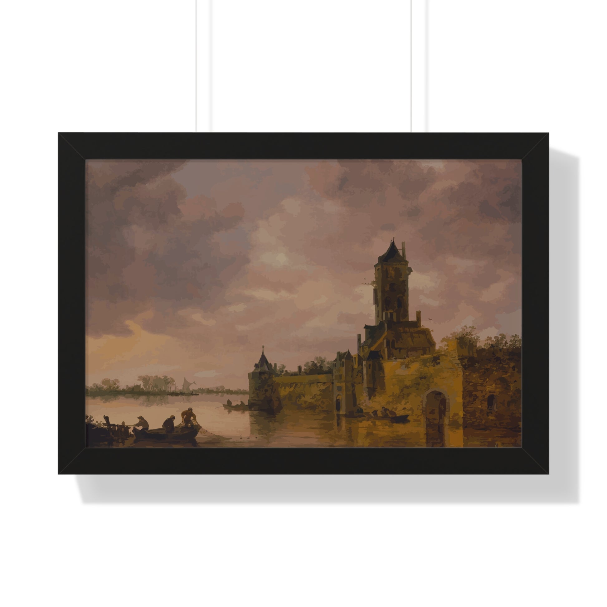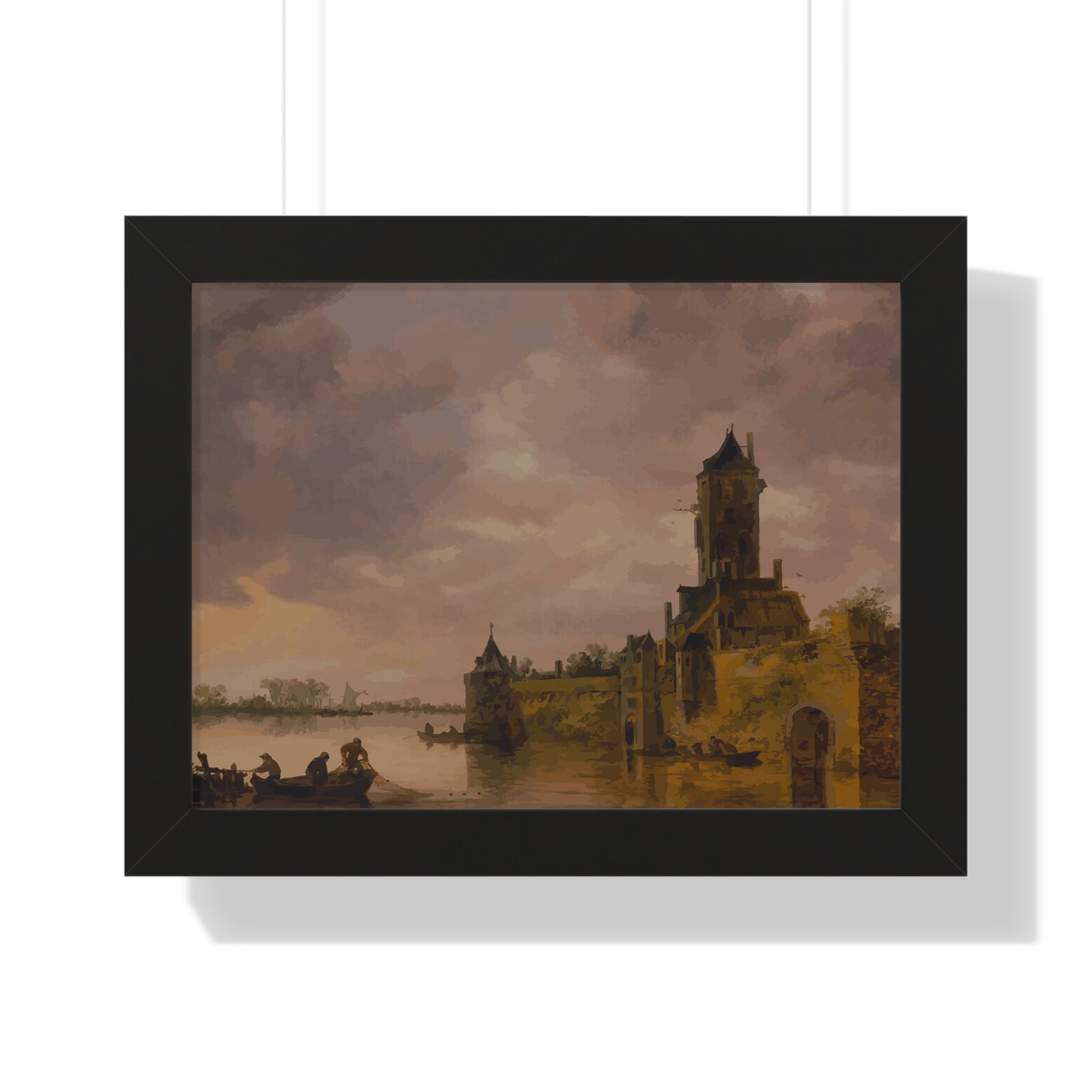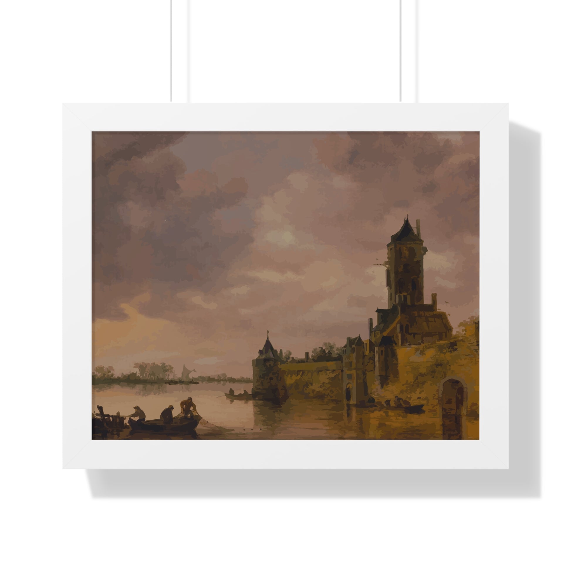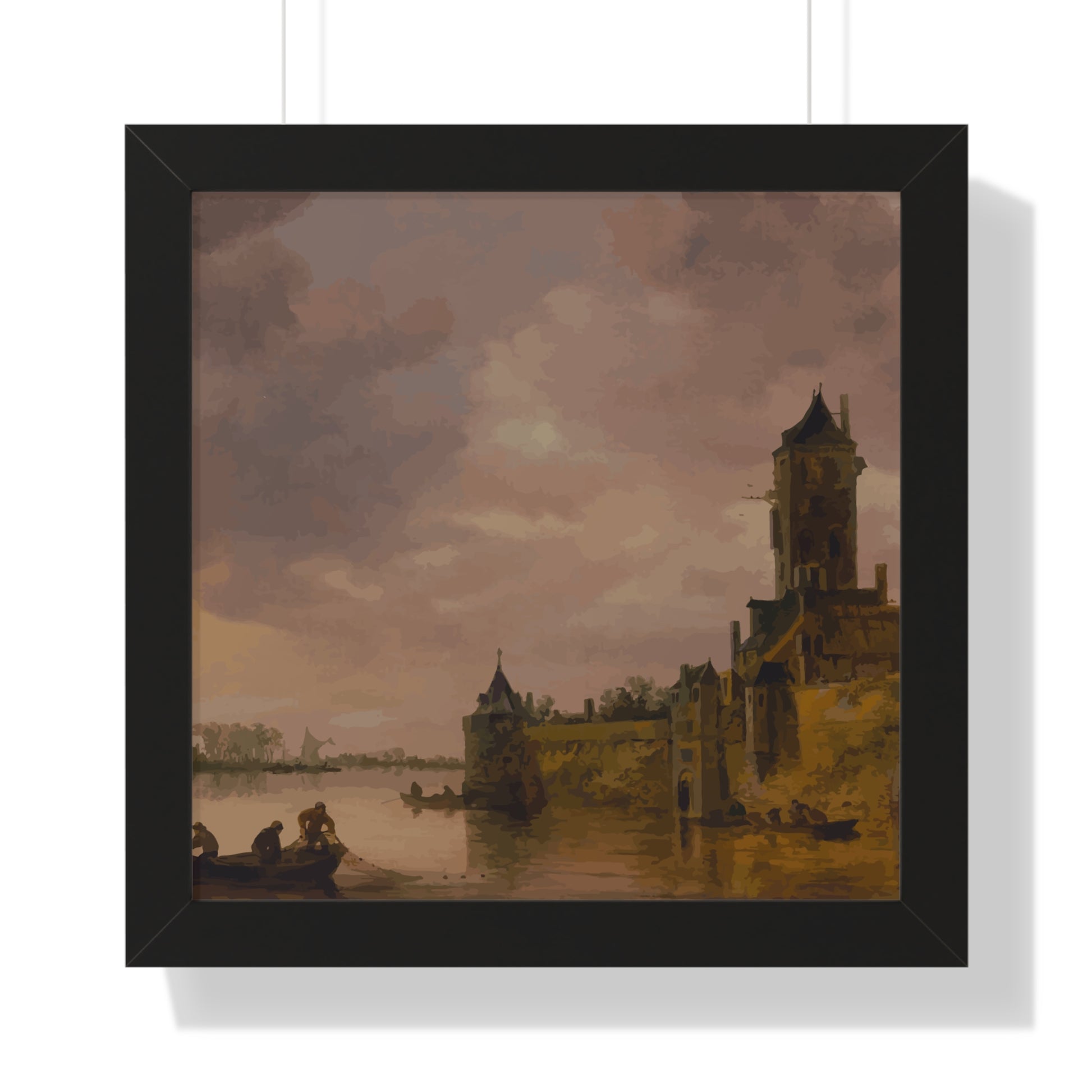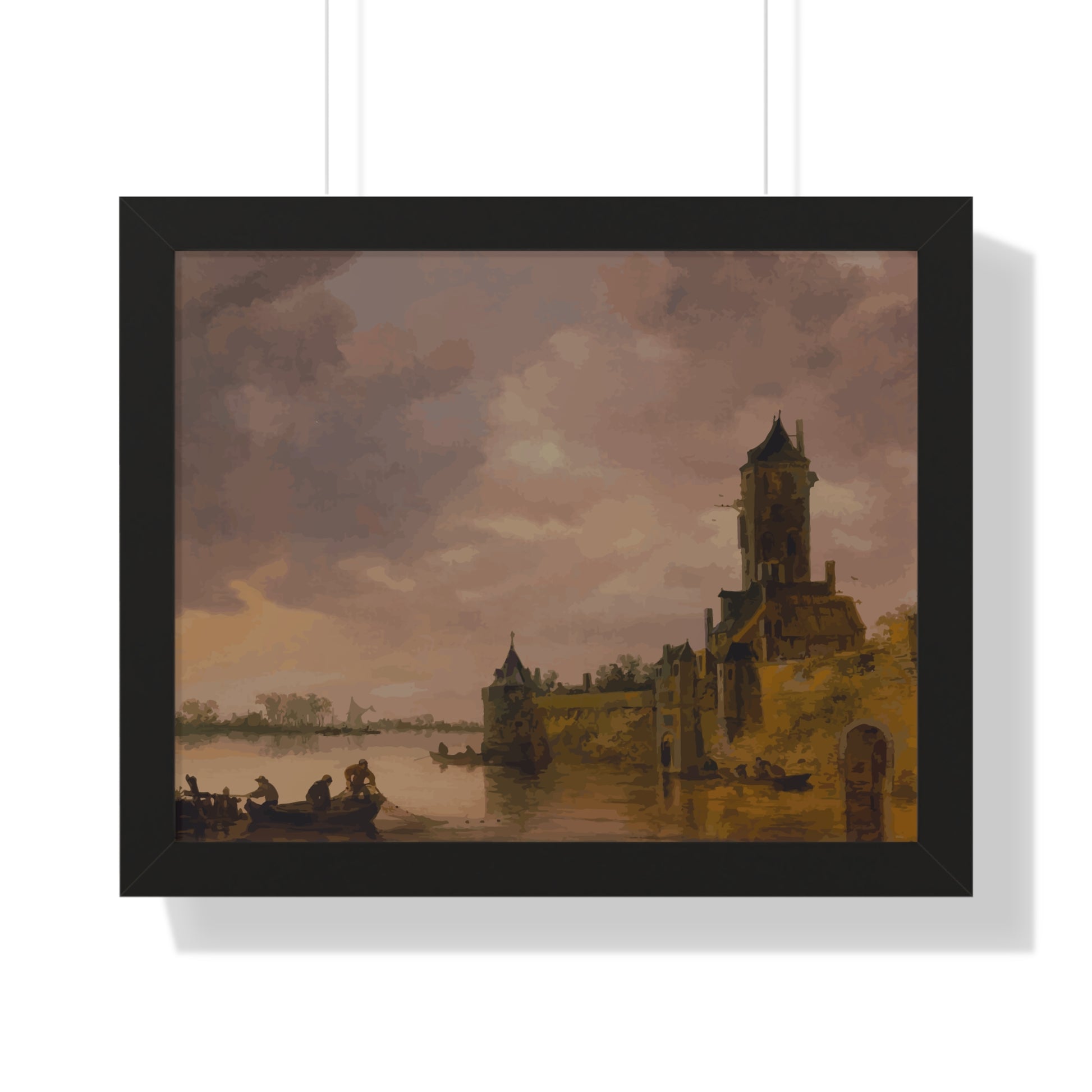 Elevate your wall decor with our Premium Framed Historical Painting of a Castle by the Lake, available in three sophisticated colors: black, white, and walnut.