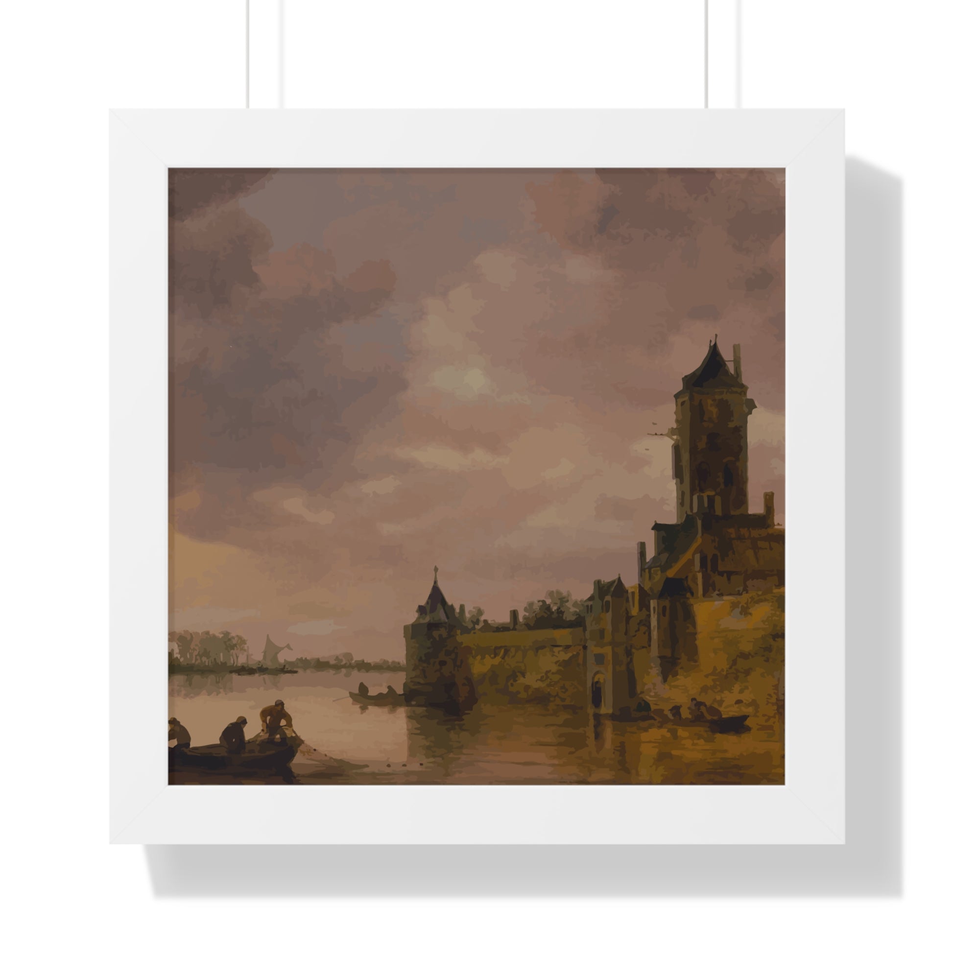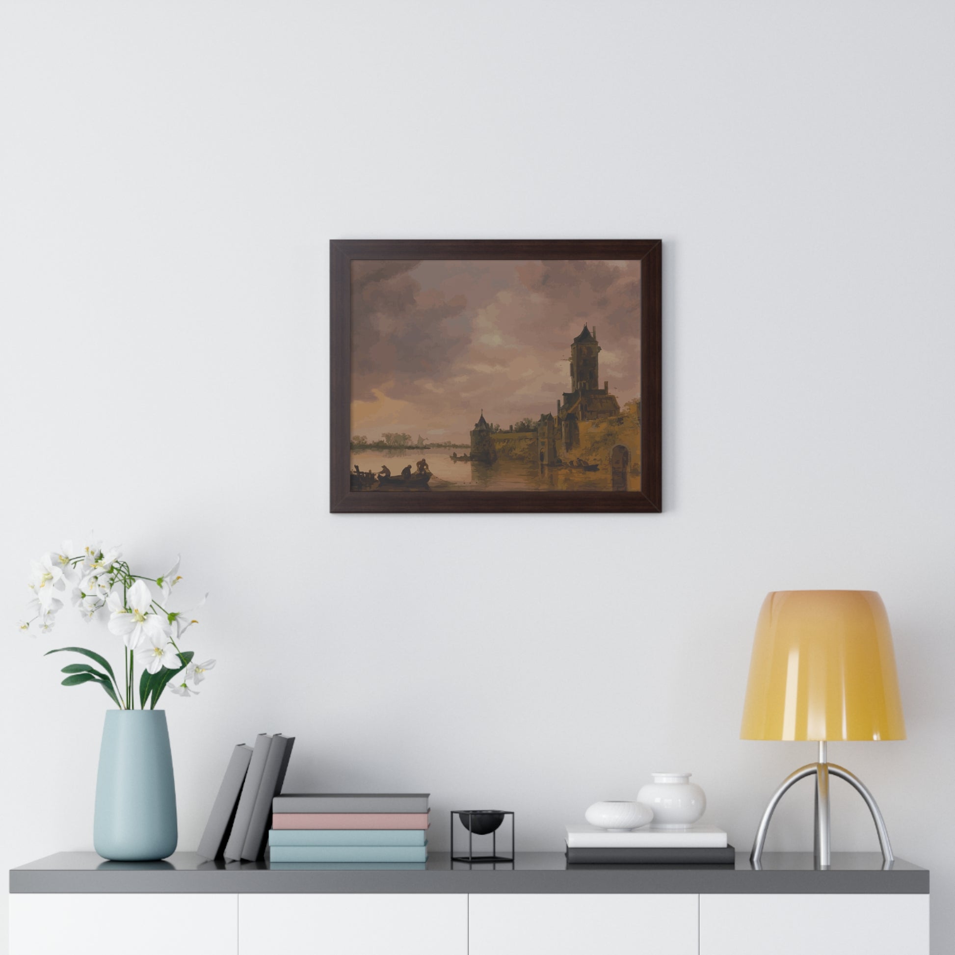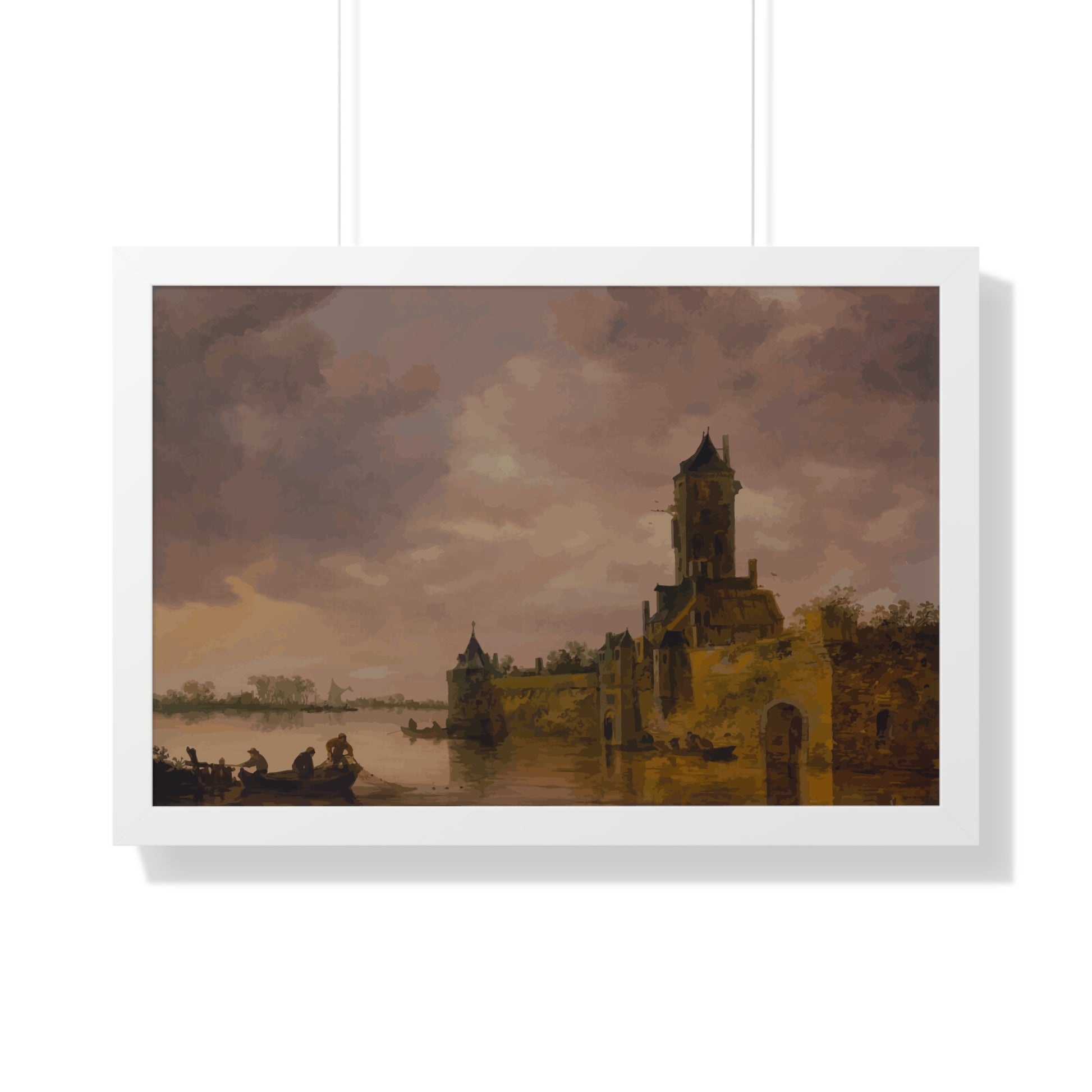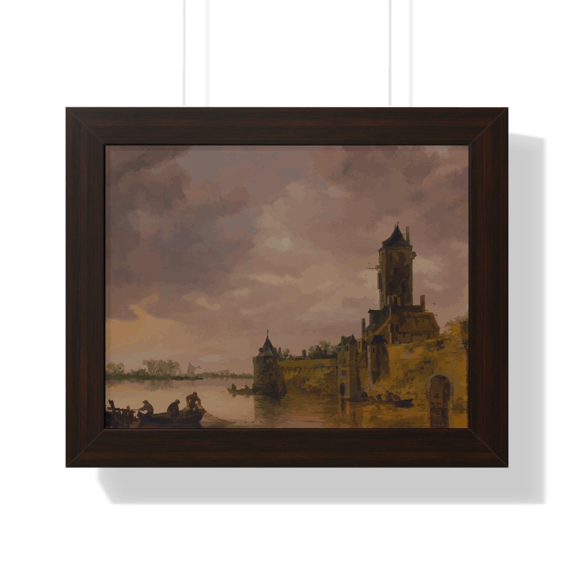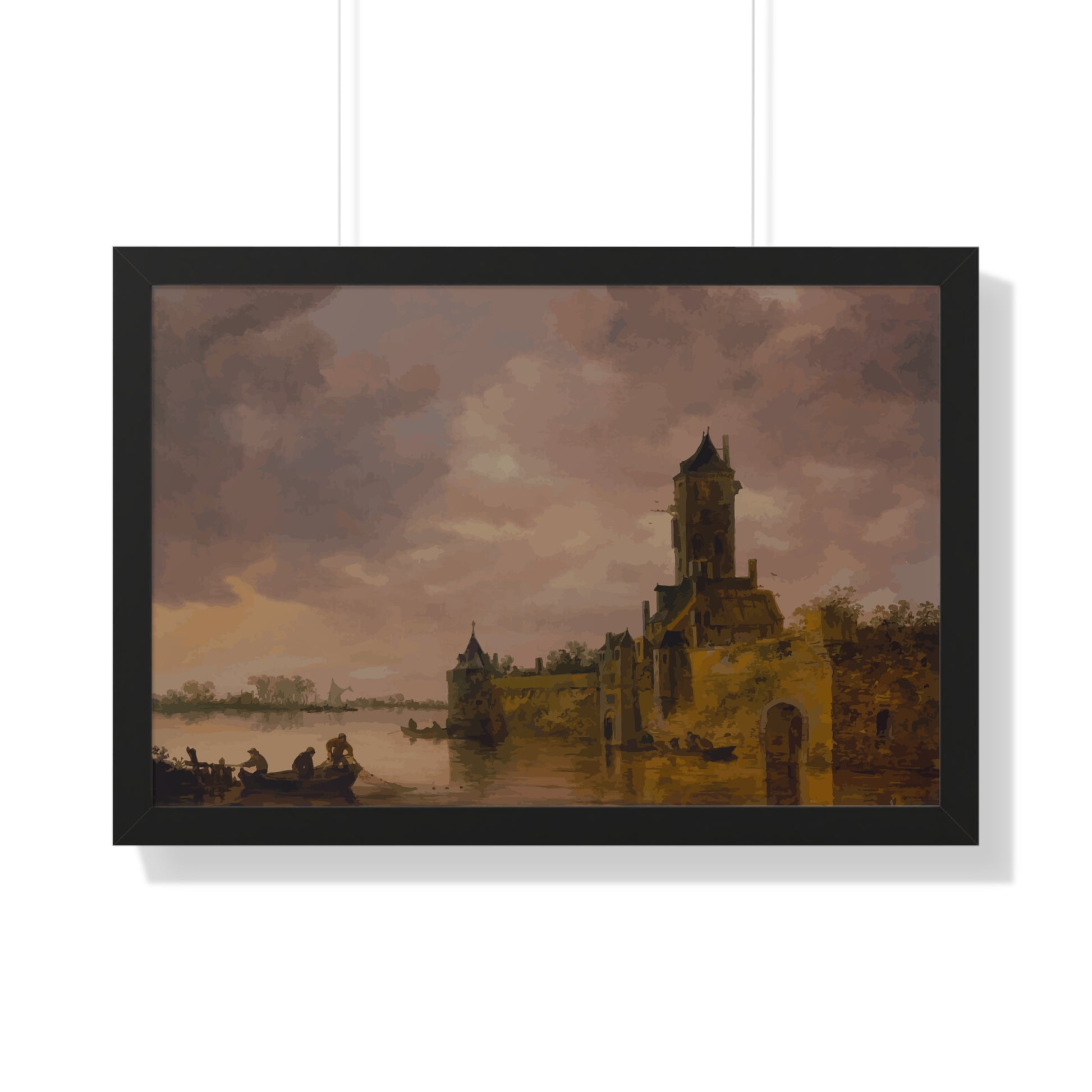 Elevate your wall decor with our Premium Framed Historical Painting of a Castle by the Lake, available in three sophisticated colors: black, white, and walnut.
