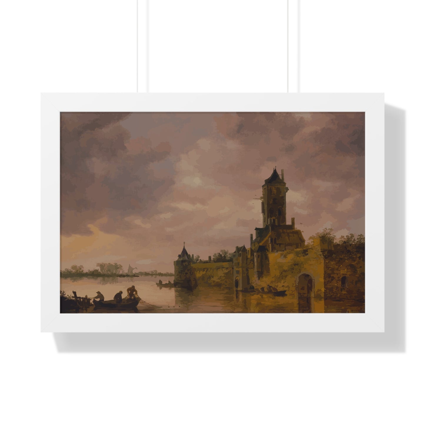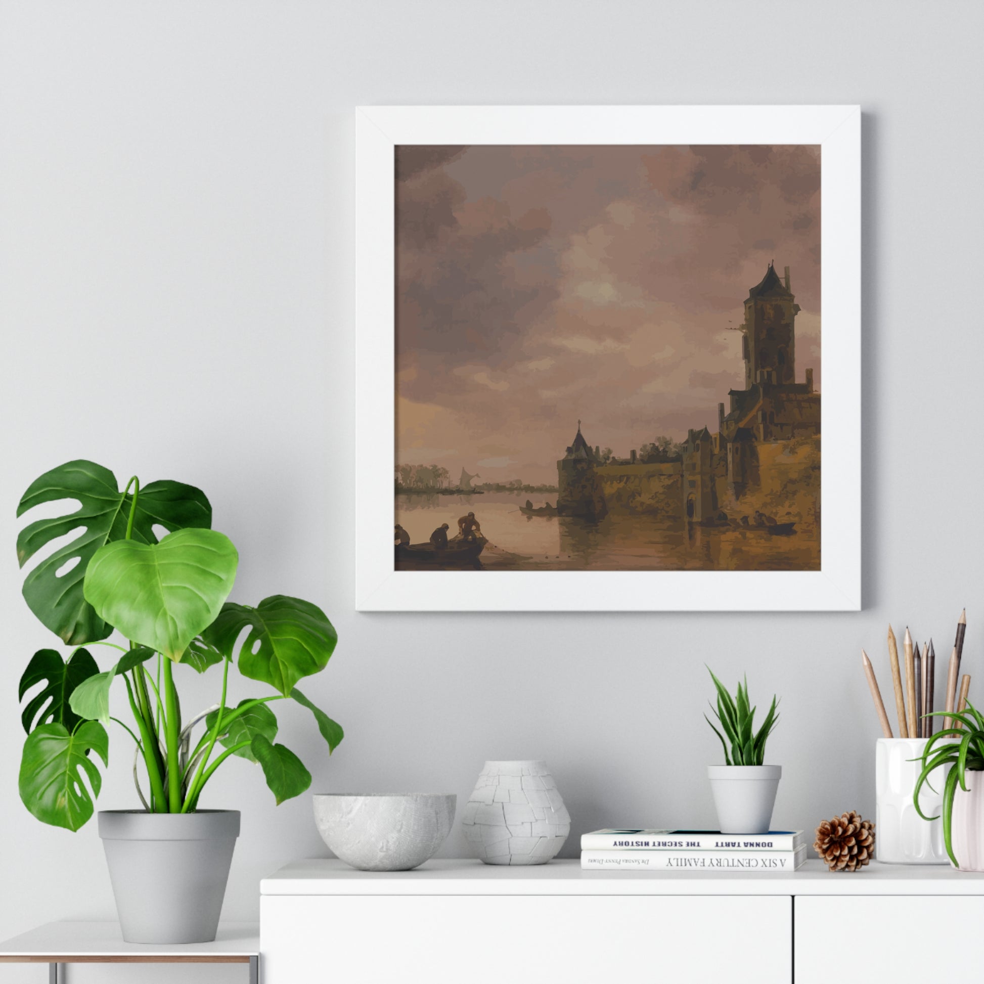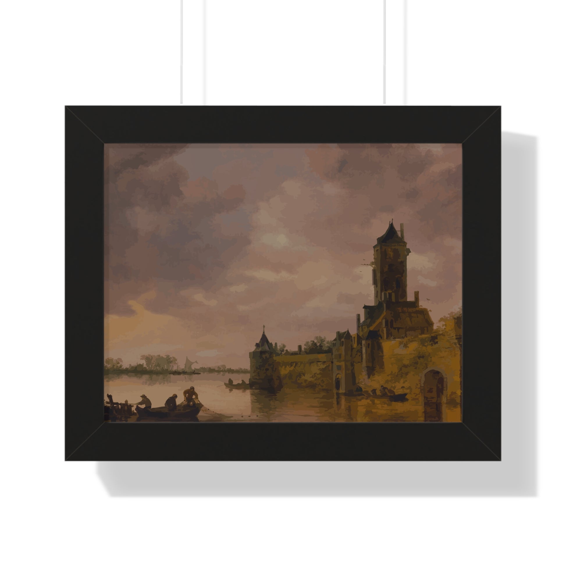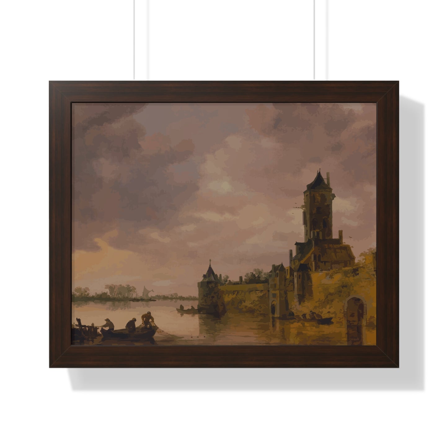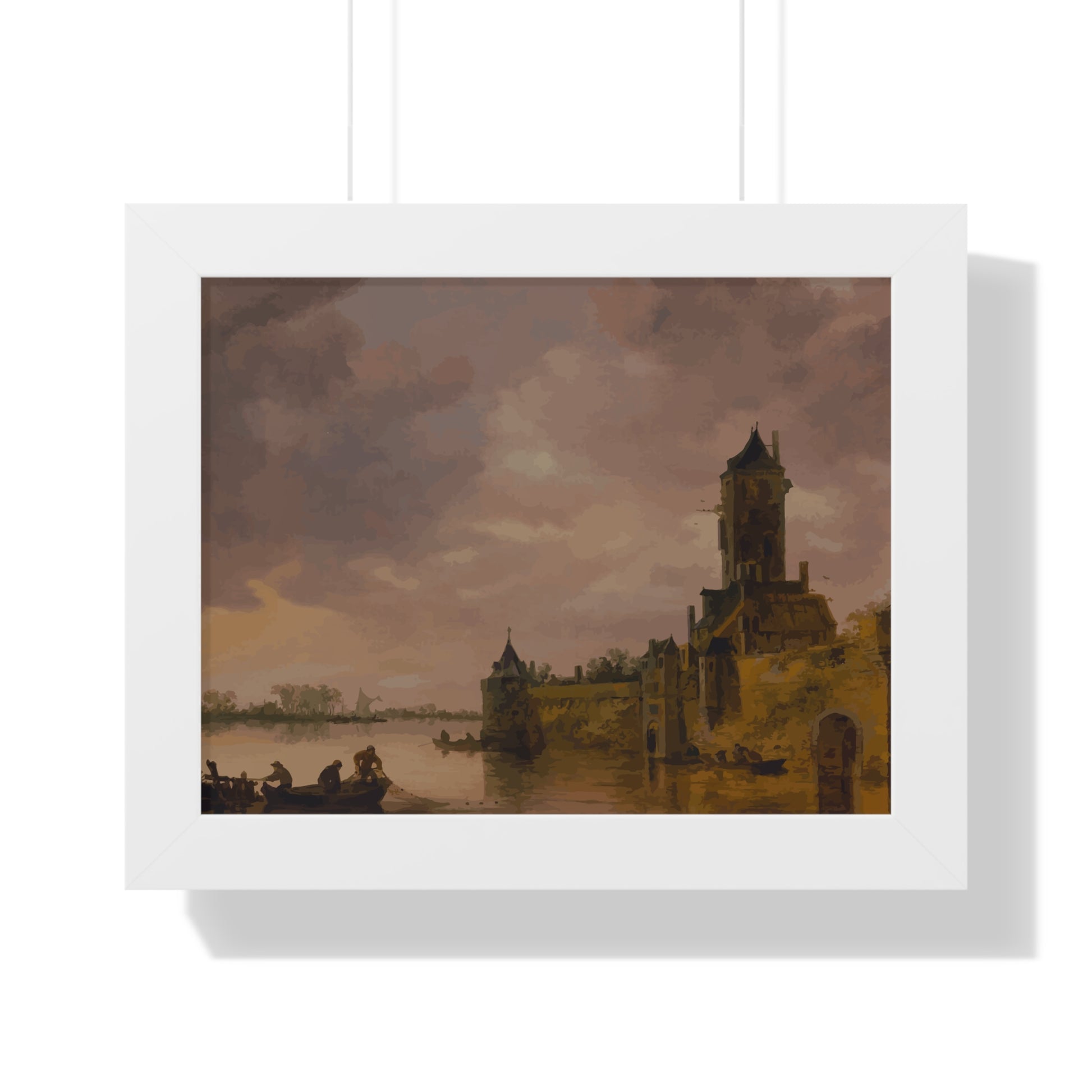Elevate your wall decor with our Premium Framed Historical Painting of a Castle by the Lake, available in three sophisticated colors: black, white, and walnut.