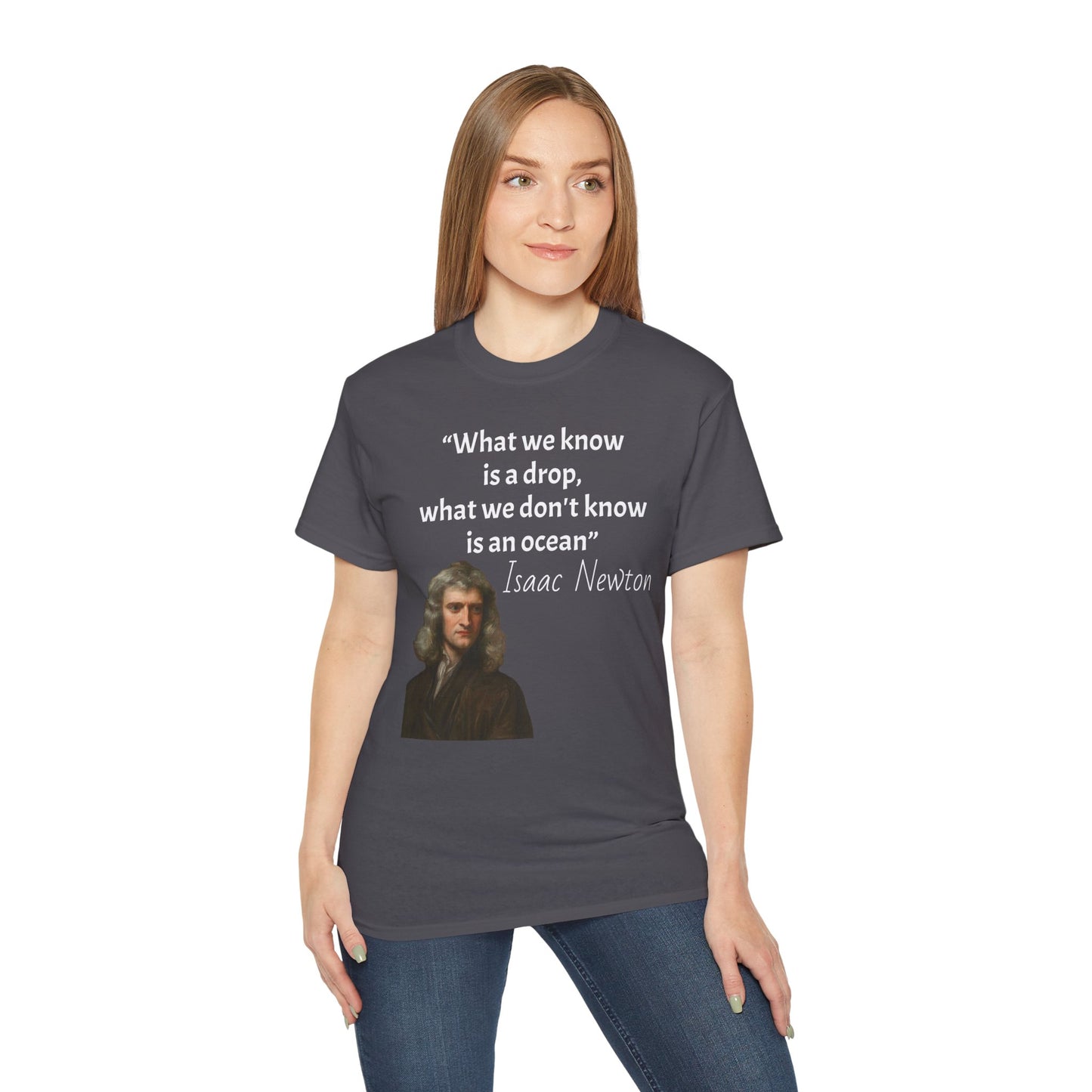 Show off your historical knowledge and enthusiasm with this Historic Isaac Newton Quote Unisex Ultra Cotton T-Shirt. The perfect blend of comfort, durability, and sustainability.