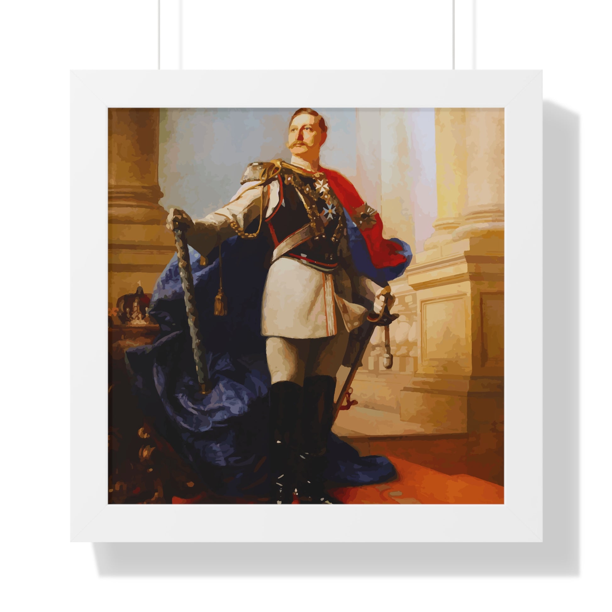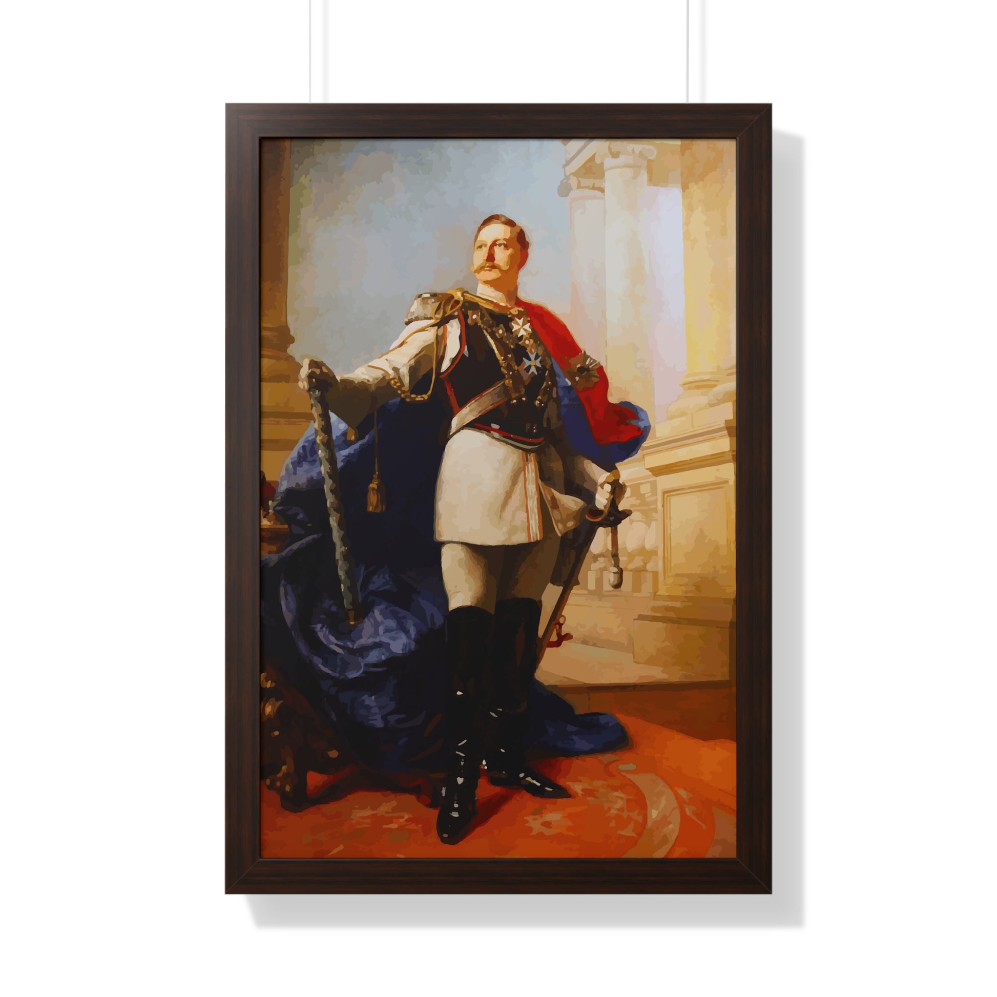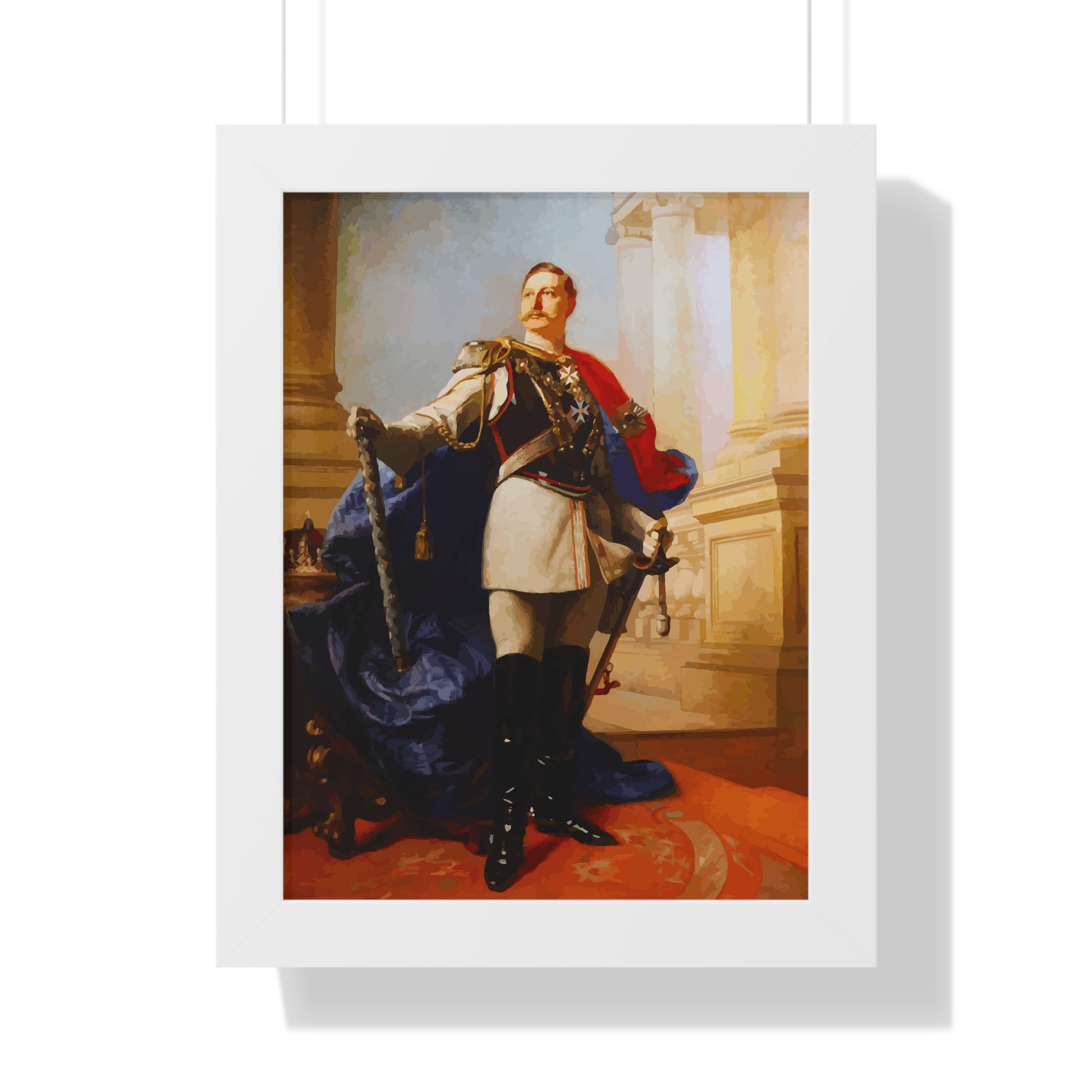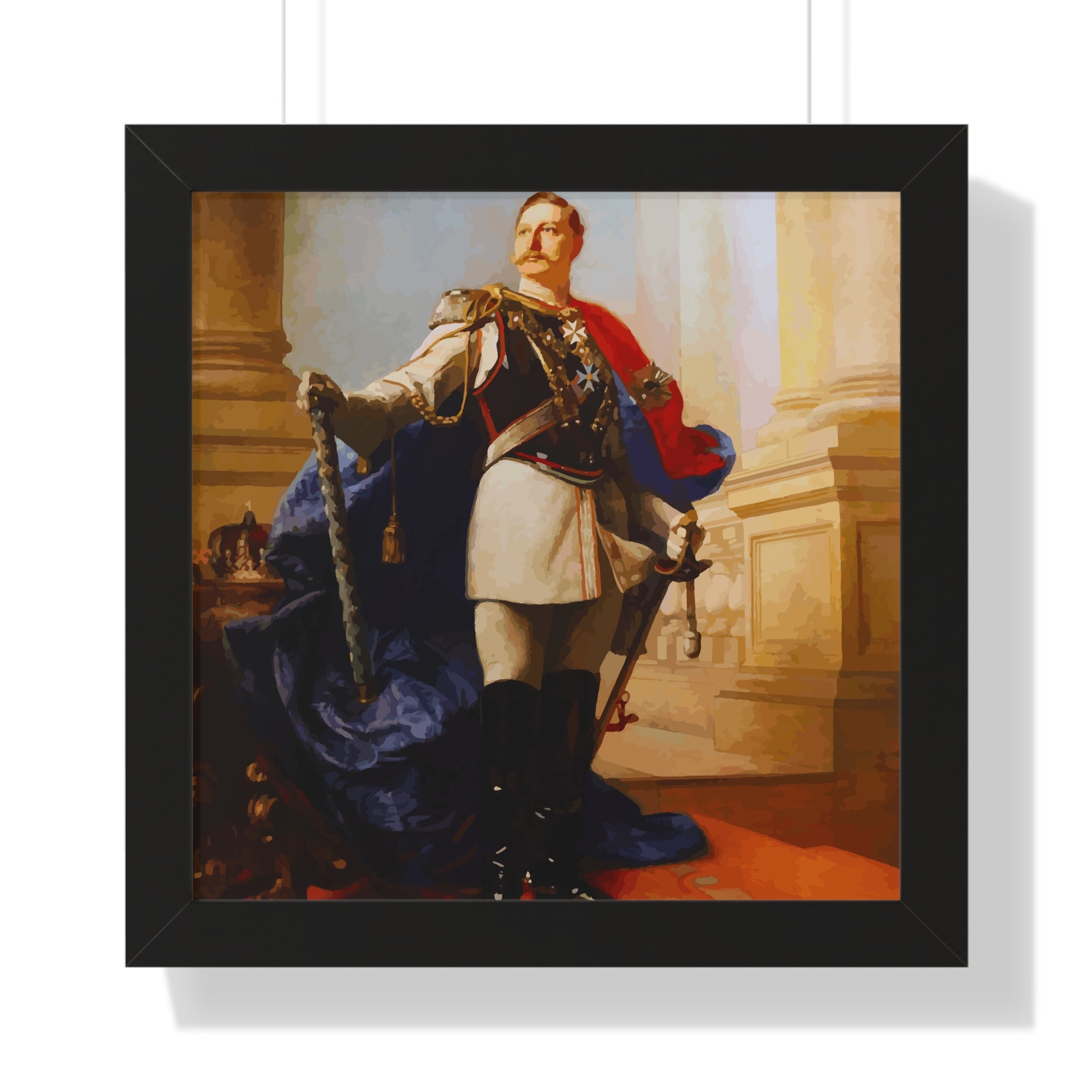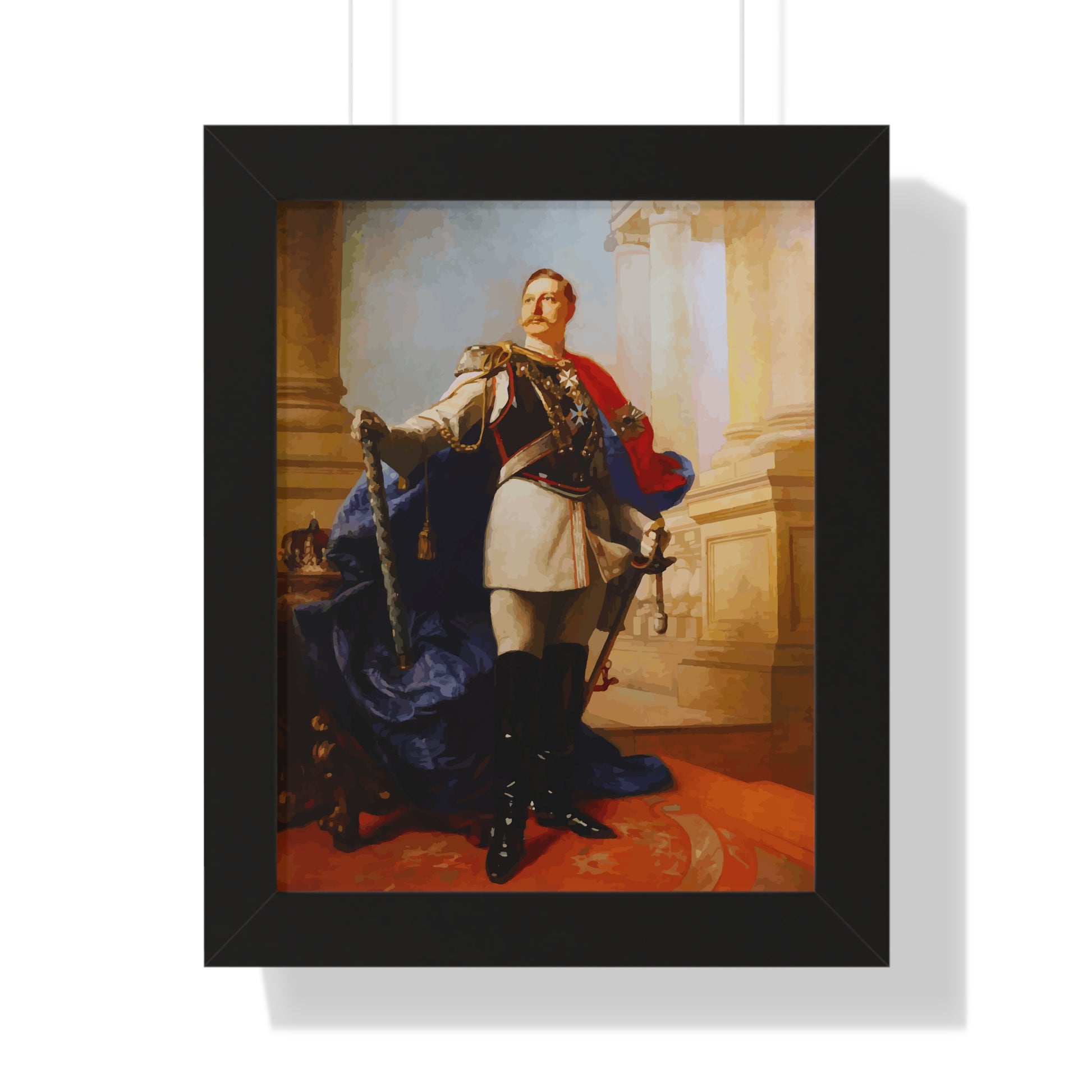 Elevate your wall decor with our Premium Framed Historical Painting of German Kaiser Wilhelm II by Max Koner in 1890. Available in three sophisticated colors: black, white, and walnut.
