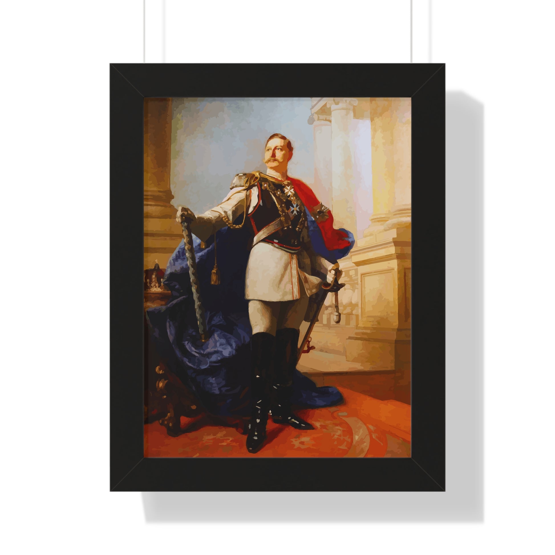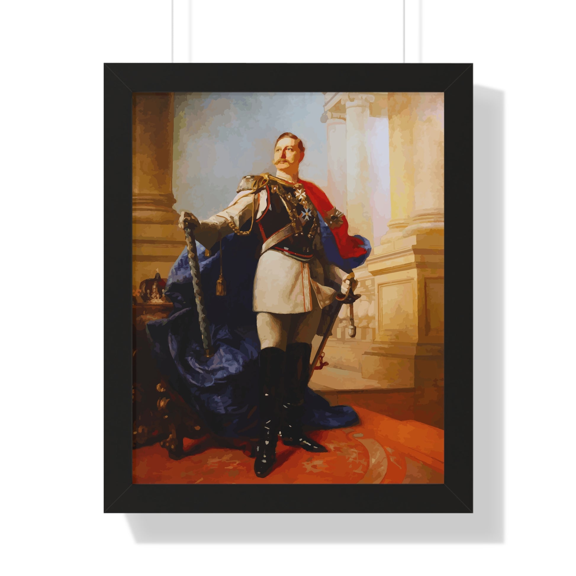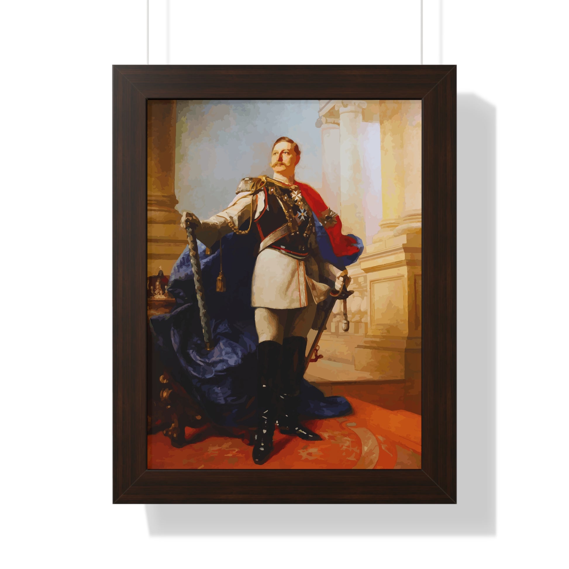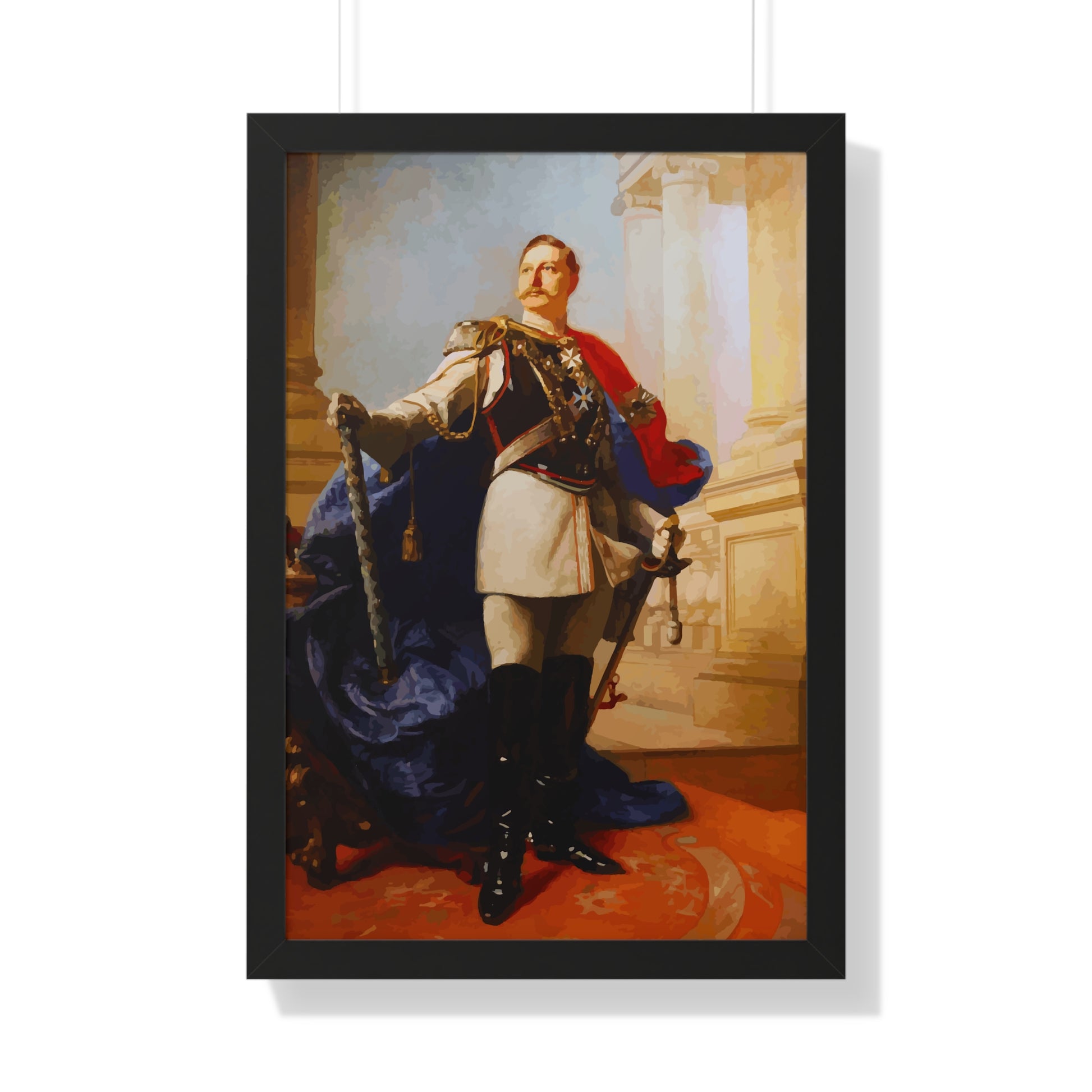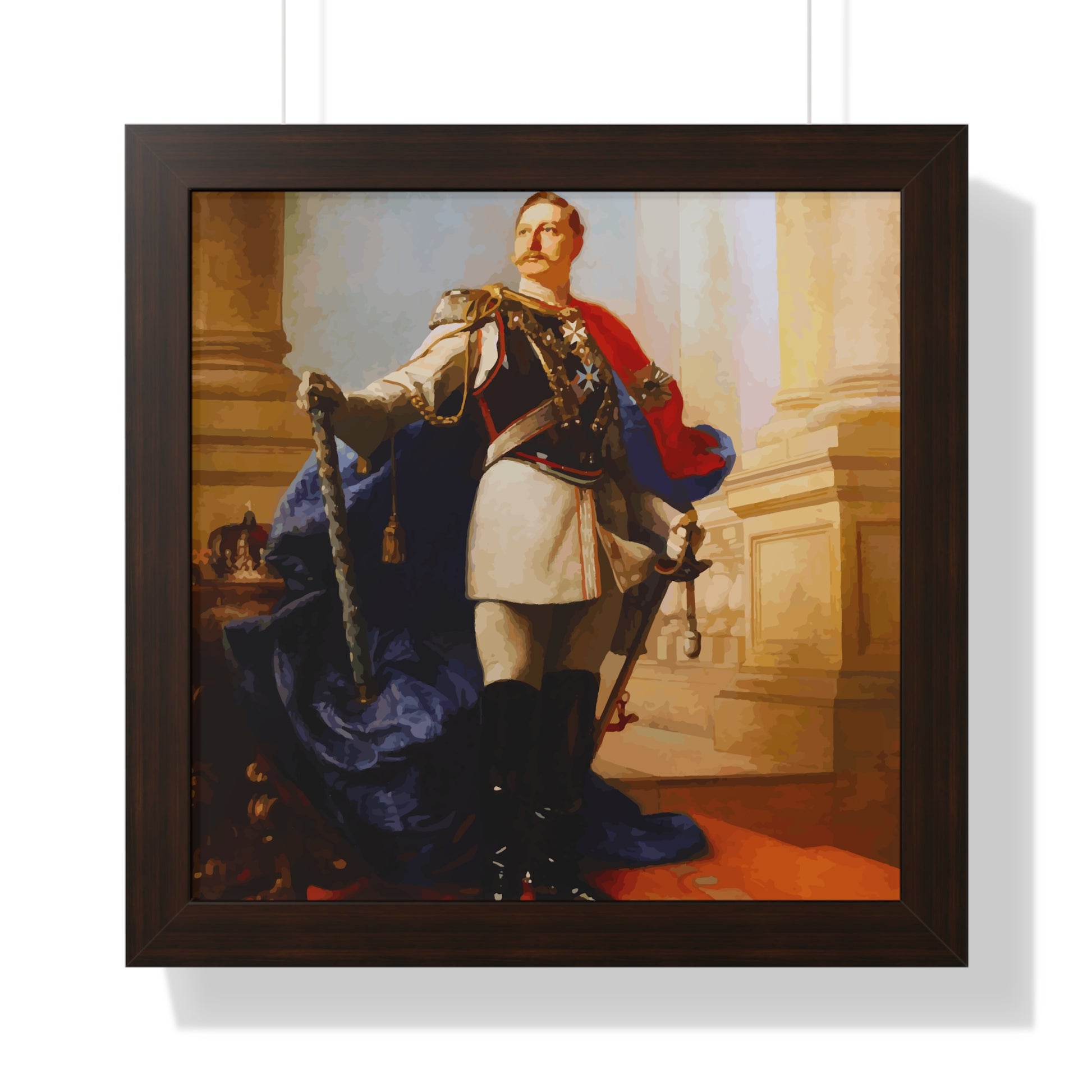 Elevate your wall decor with our Premium Framed Historical Painting of German Kaiser Wilhelm II by Max Koner in 1890. Available in three sophisticated colors: black, white, and walnut.