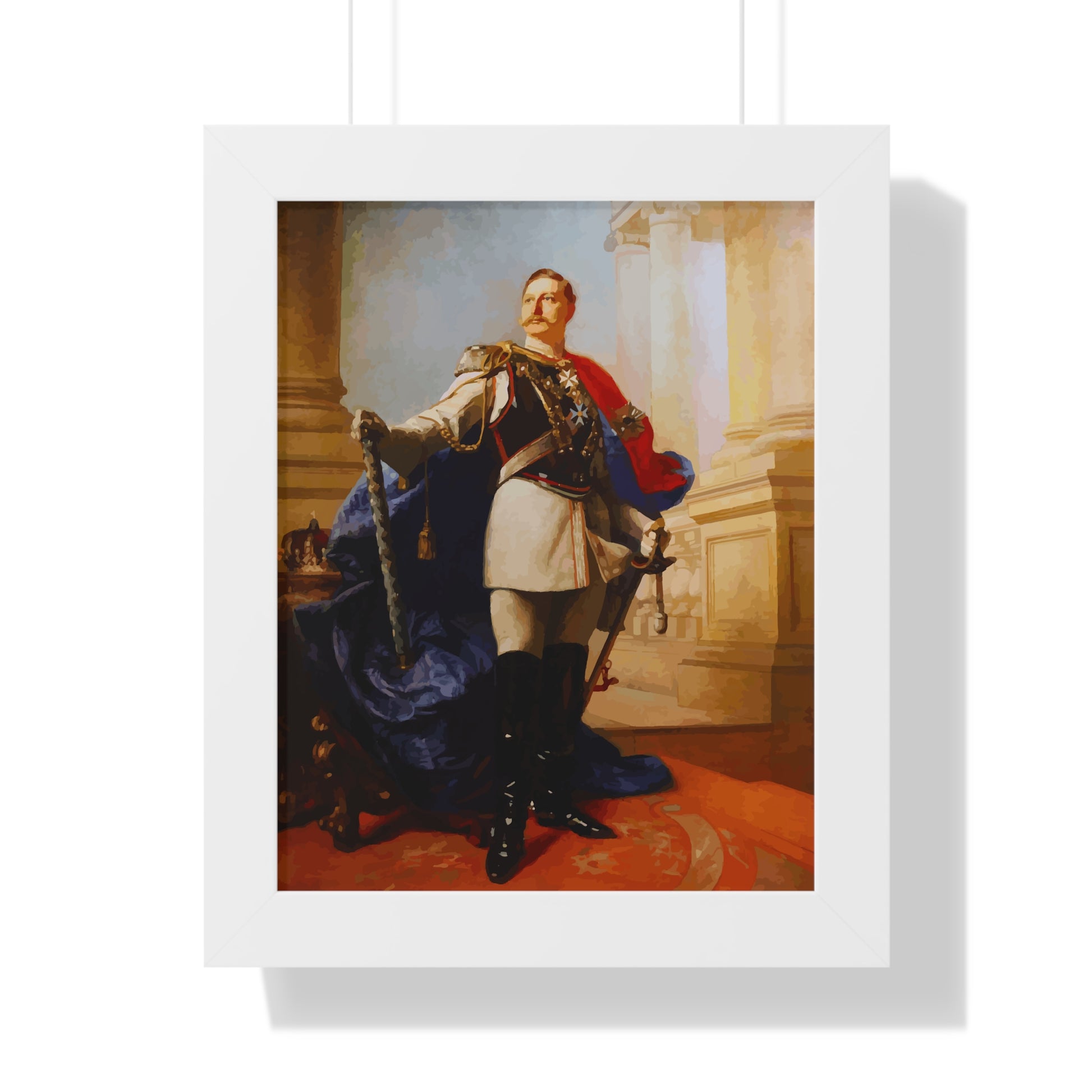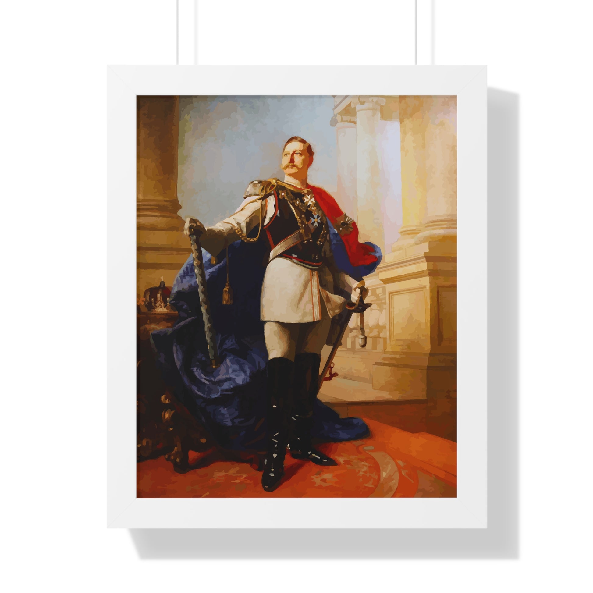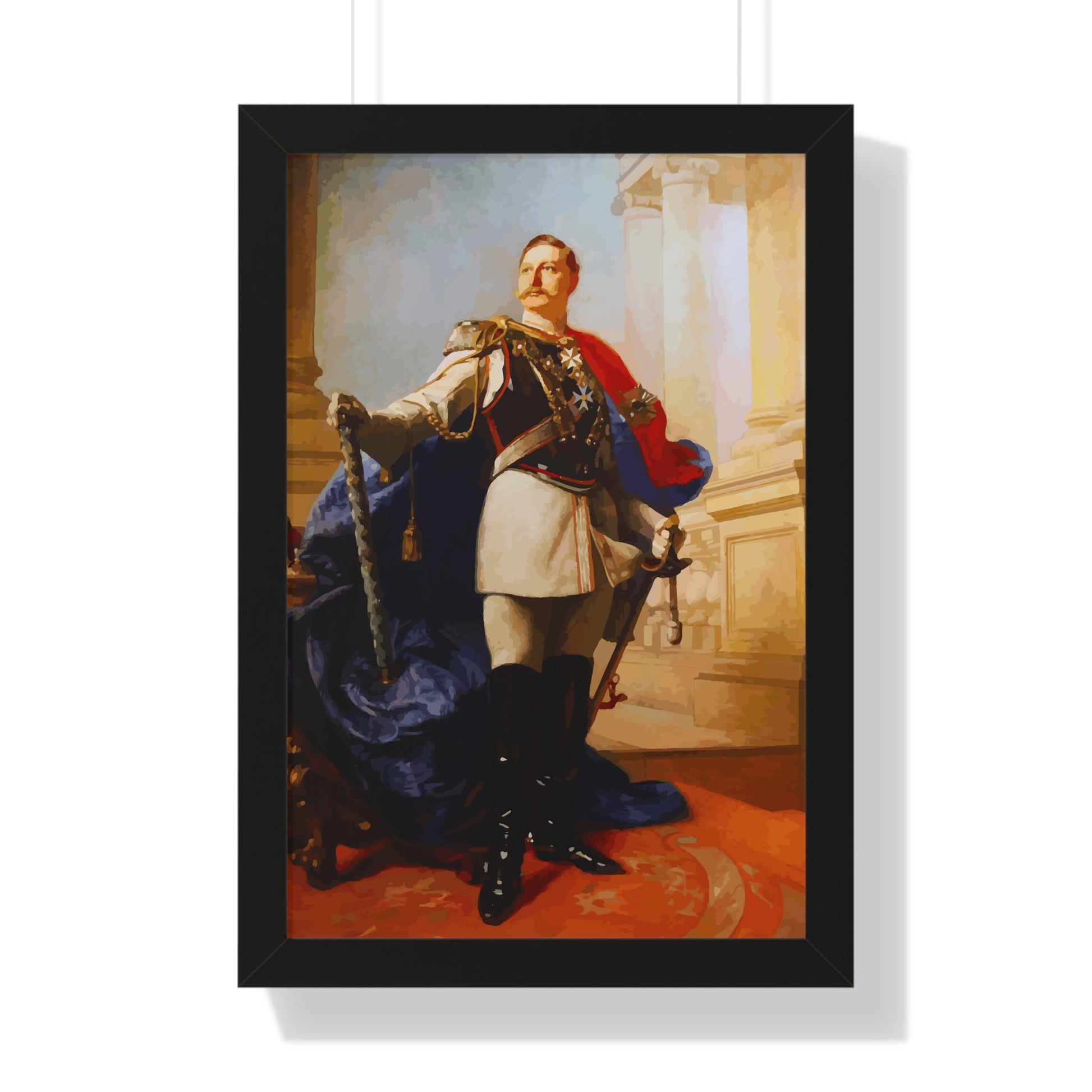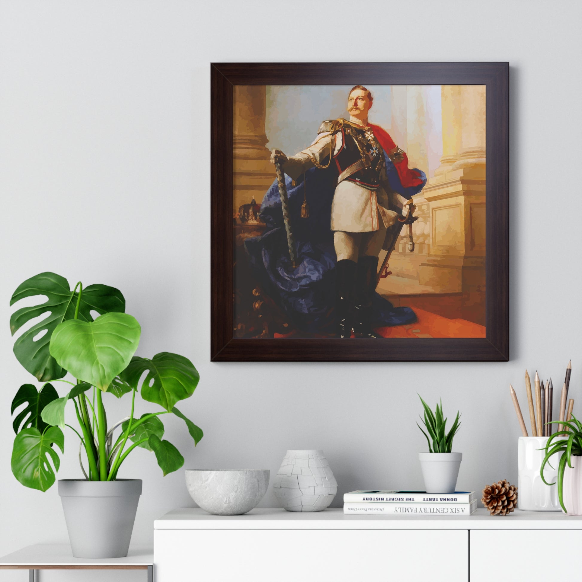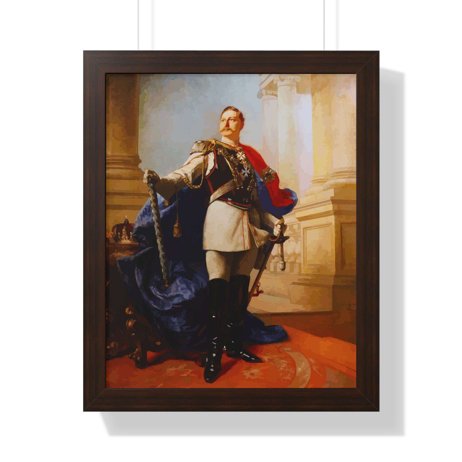 Elevate your wall decor with our Premium Framed Historical Painting of German Kaiser Wilhelm II by Max Koner in 1890. Available in three sophisticated colors: black, white, and walnut.