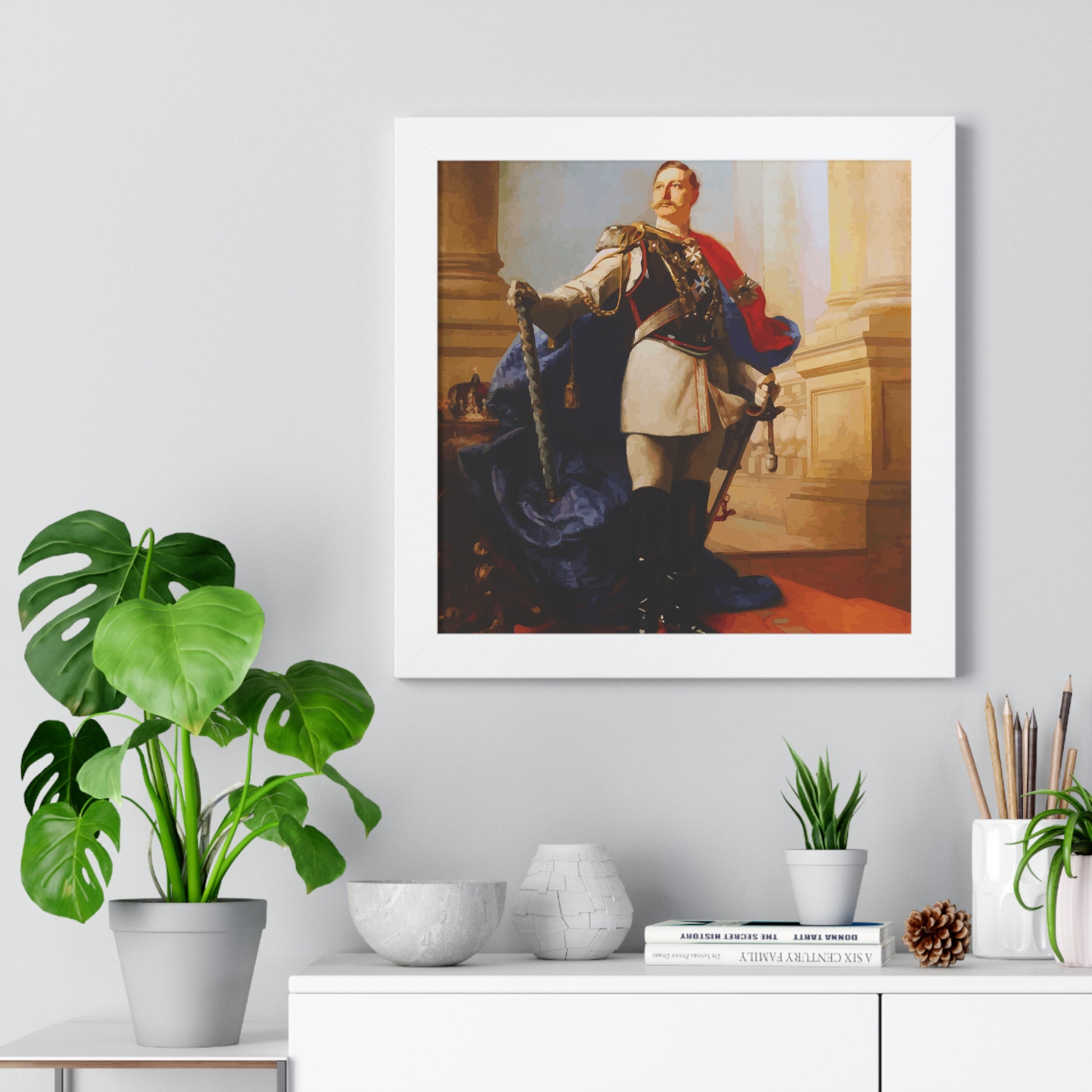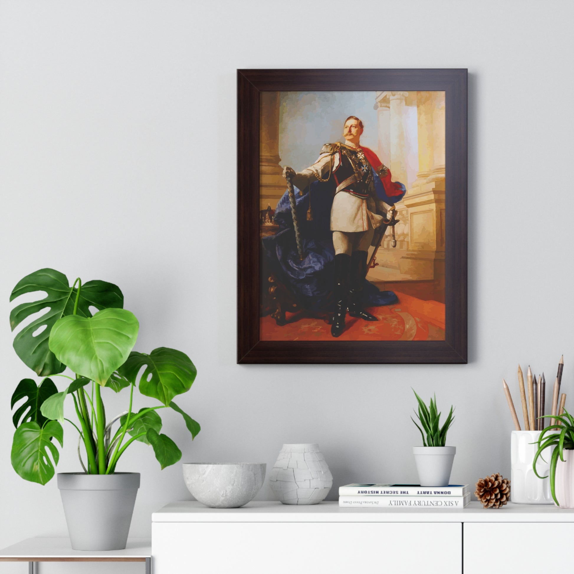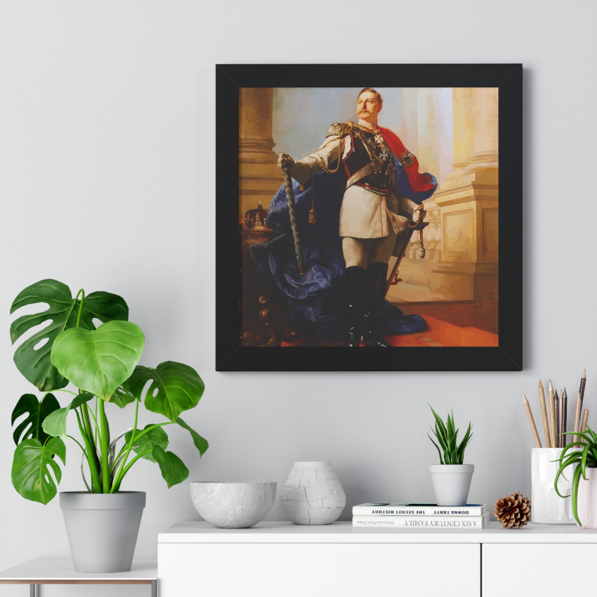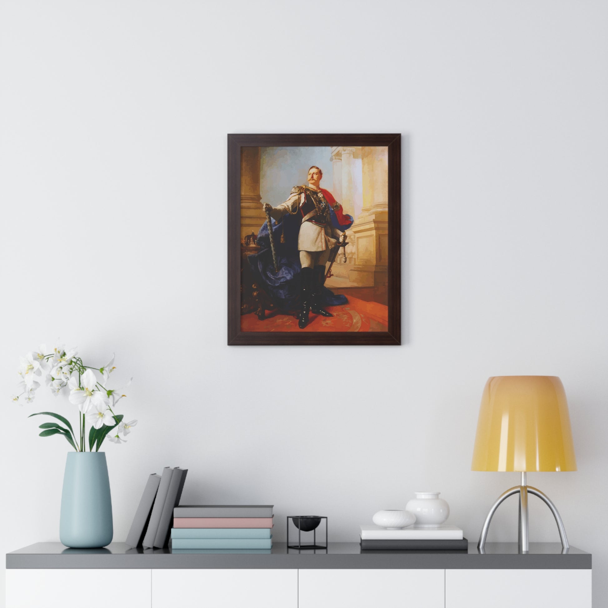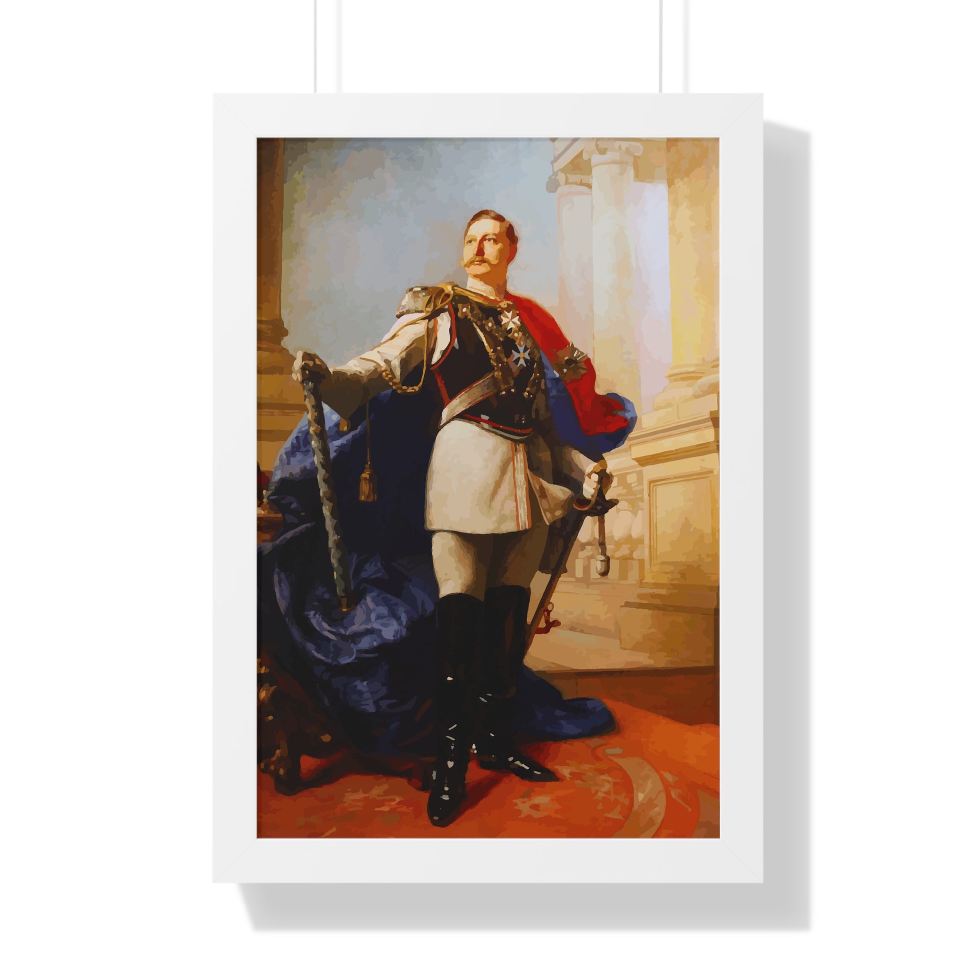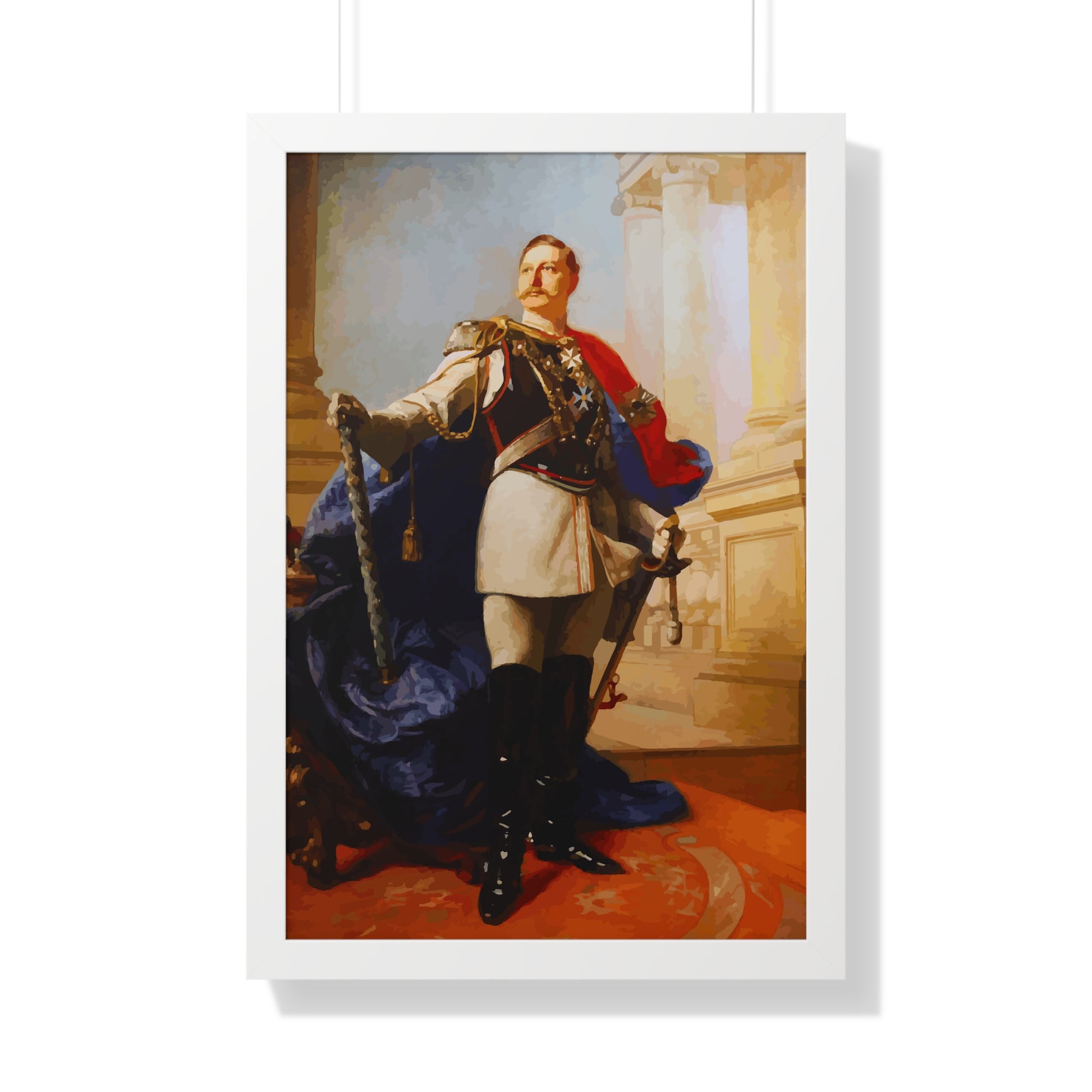 Elevate your wall decor with our Premium Framed Historical Painting of German Kaiser Wilhelm II by Max Koner in 1890. Available in three sophisticated colors: black, white, and walnut.