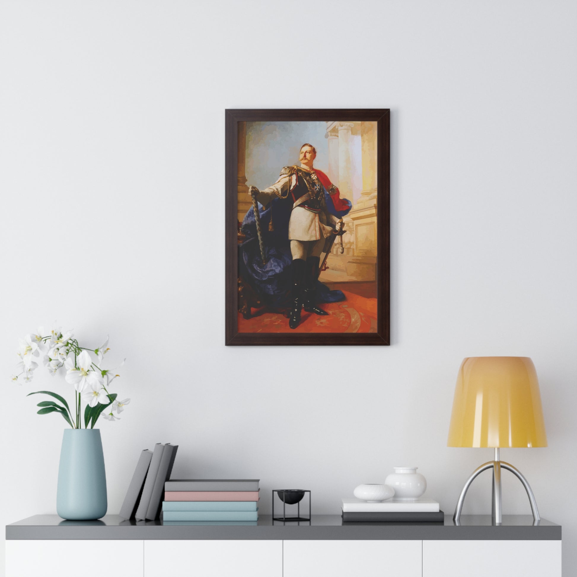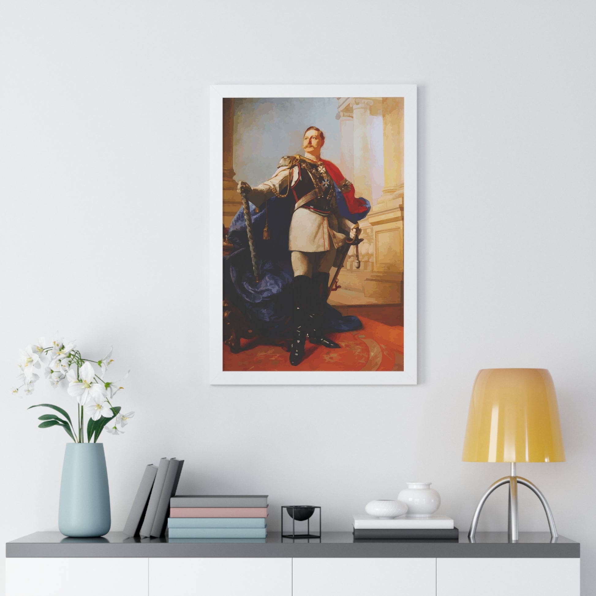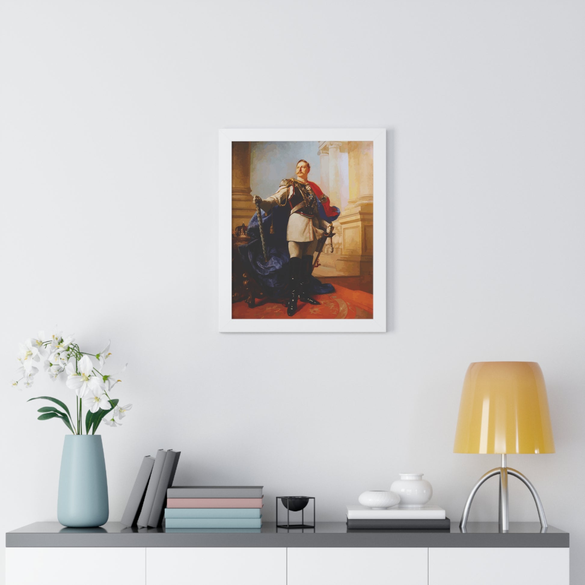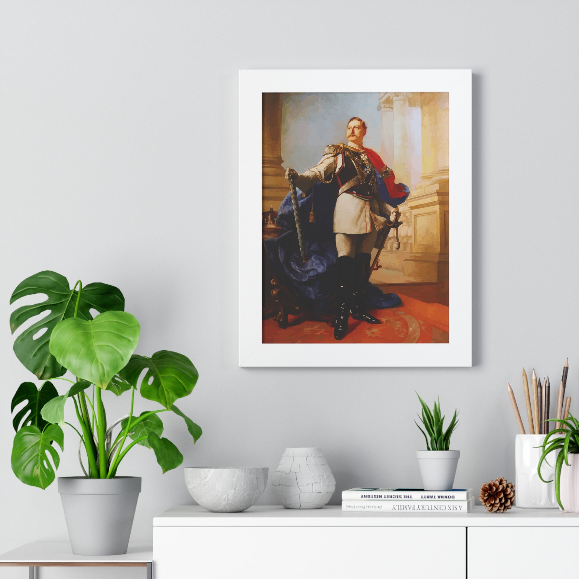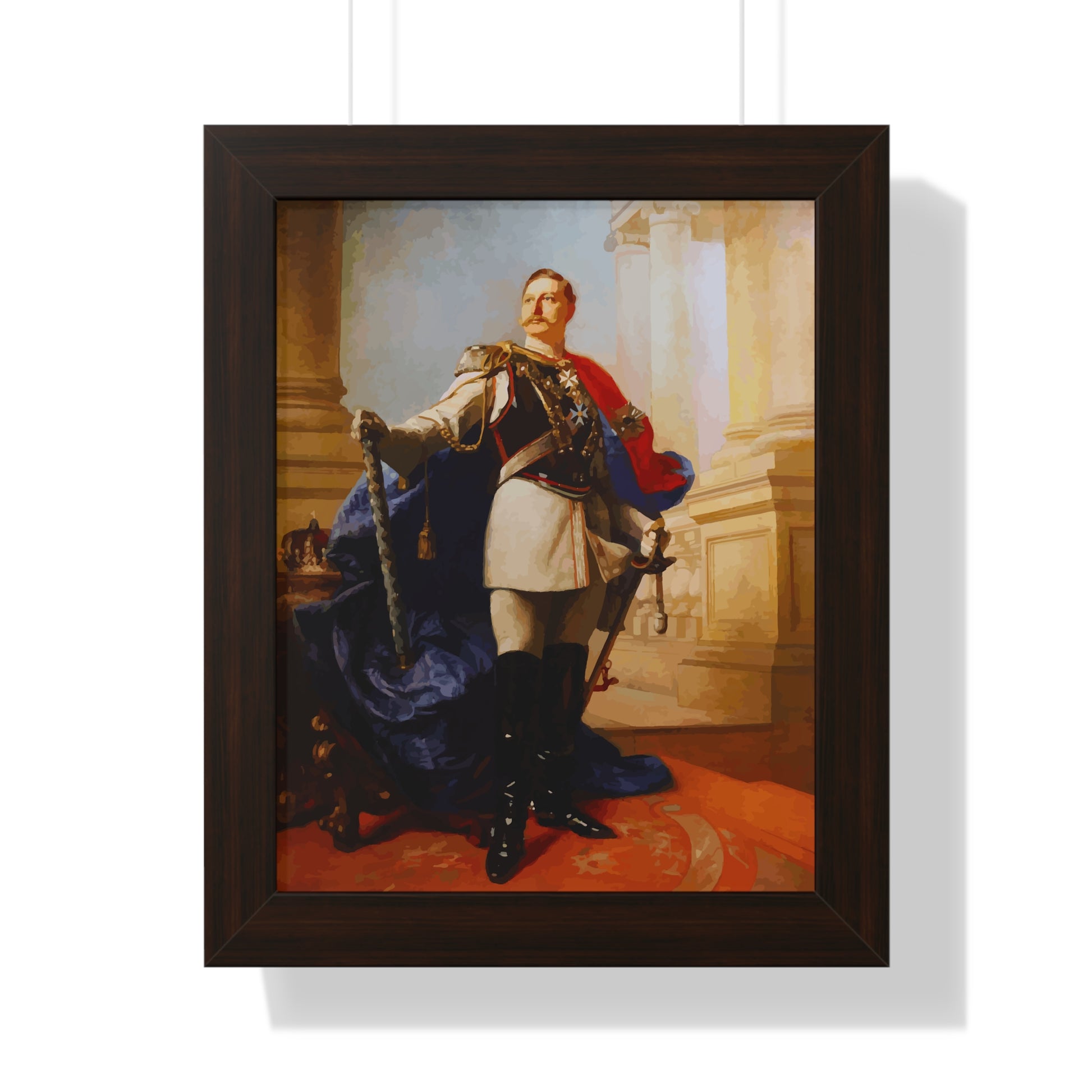 Elevate your wall decor with our Premium Framed Historical Painting of German Kaiser Wilhelm II by Max Koner in 1890. Available in three sophisticated colors: black, white, and walnut.