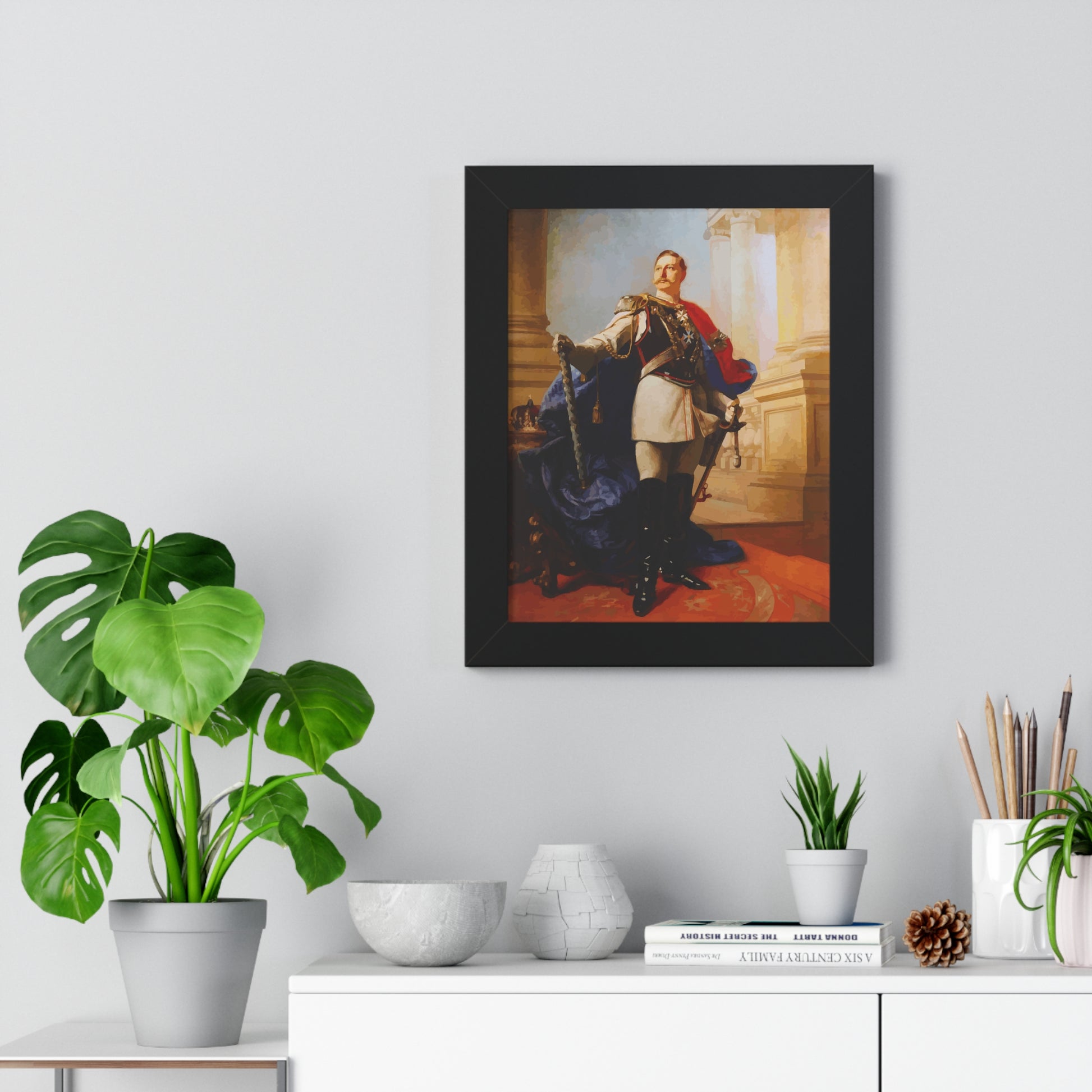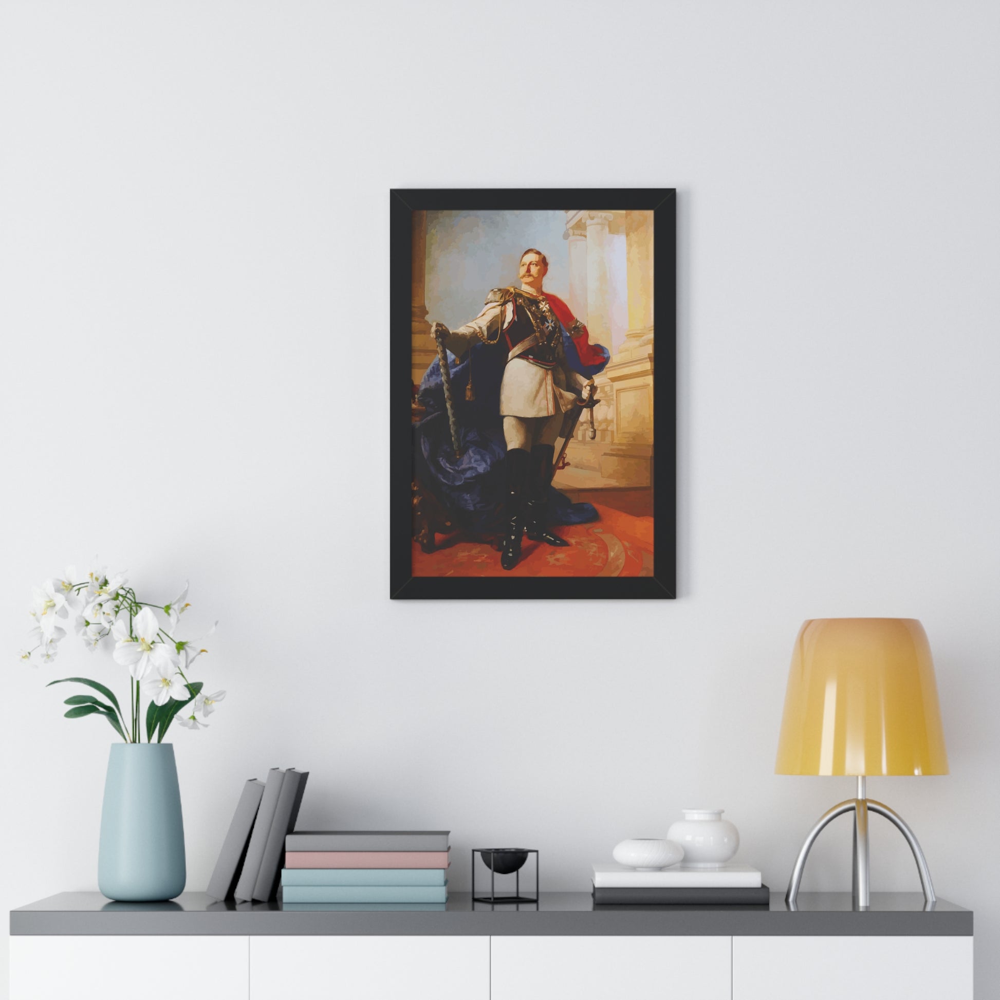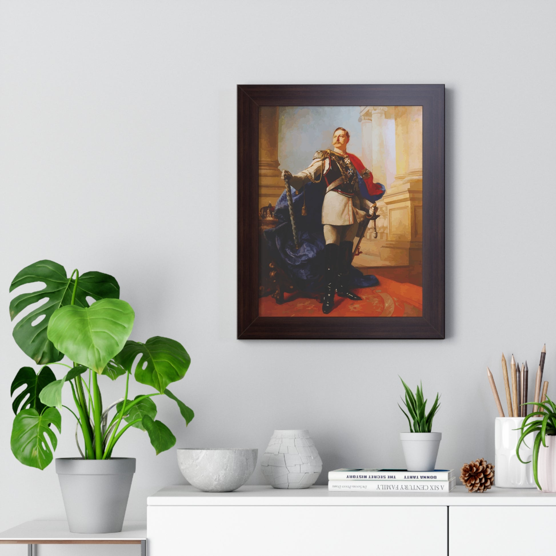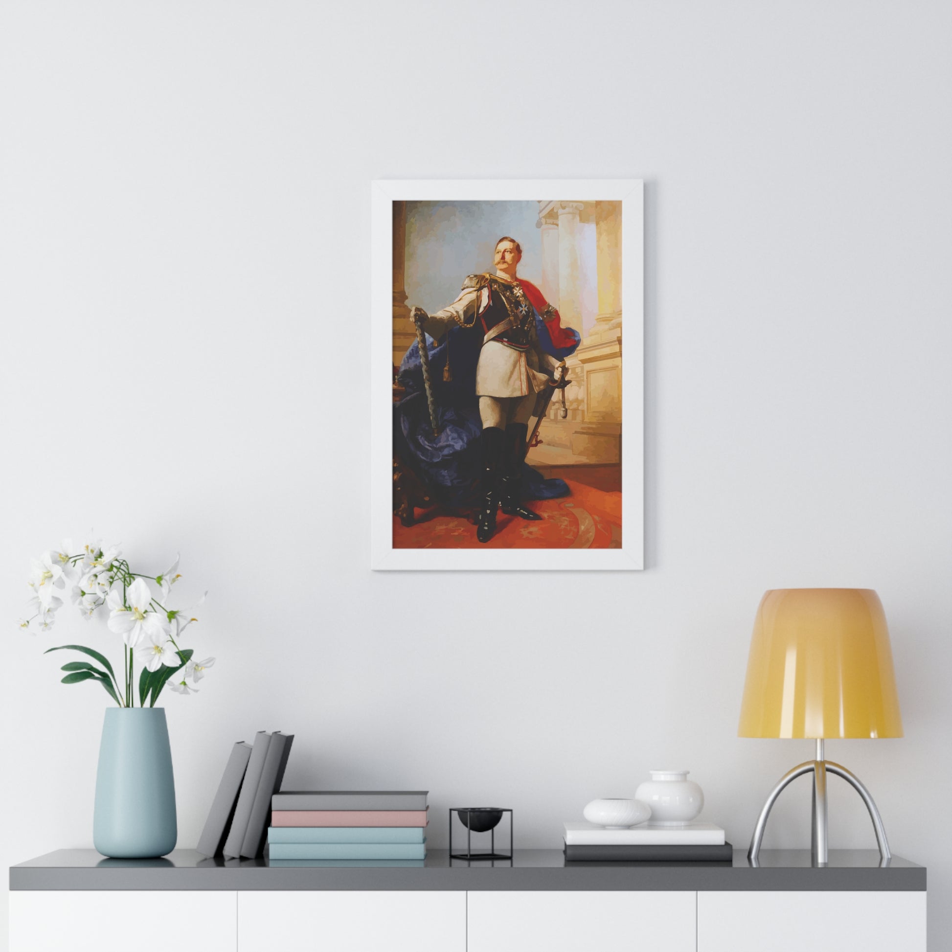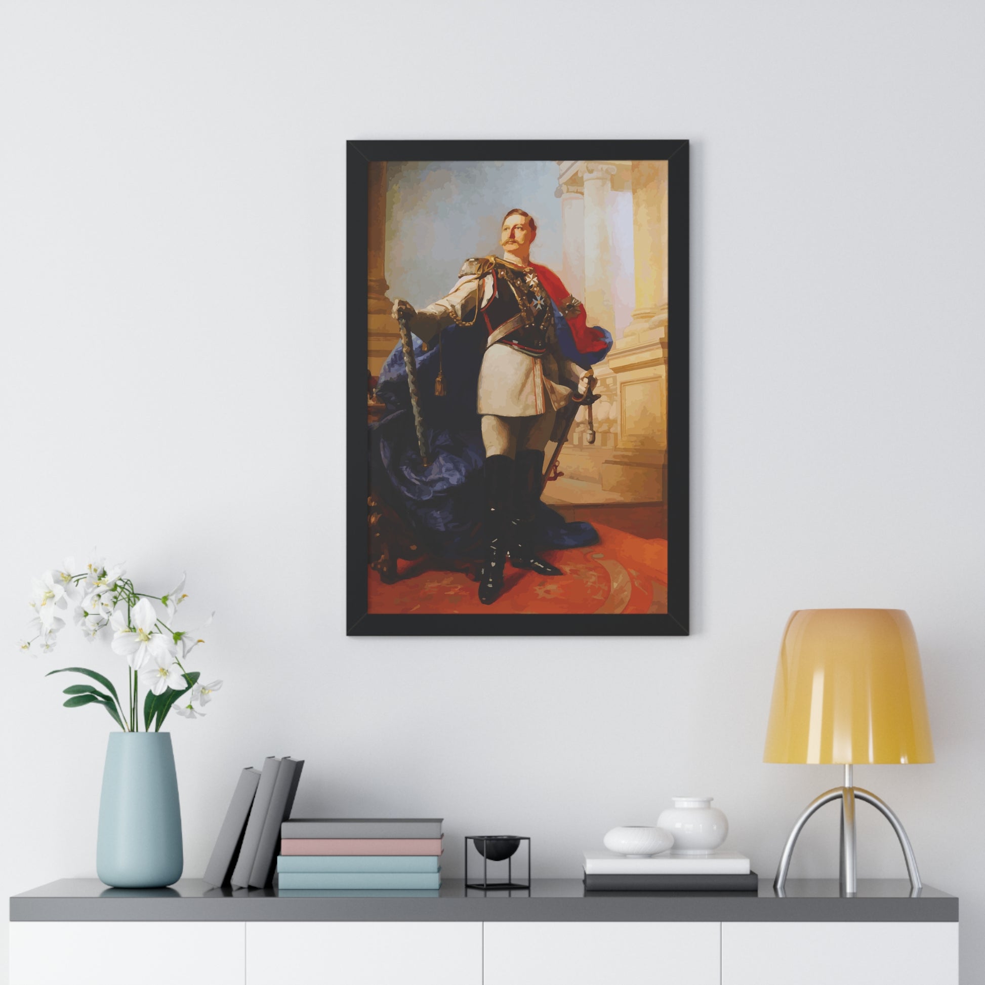 Elevate your wall decor with our Premium Framed Historical Painting of German Kaiser Wilhelm II by Max Koner in 1890. Available in three sophisticated colors: black, white, and walnut.