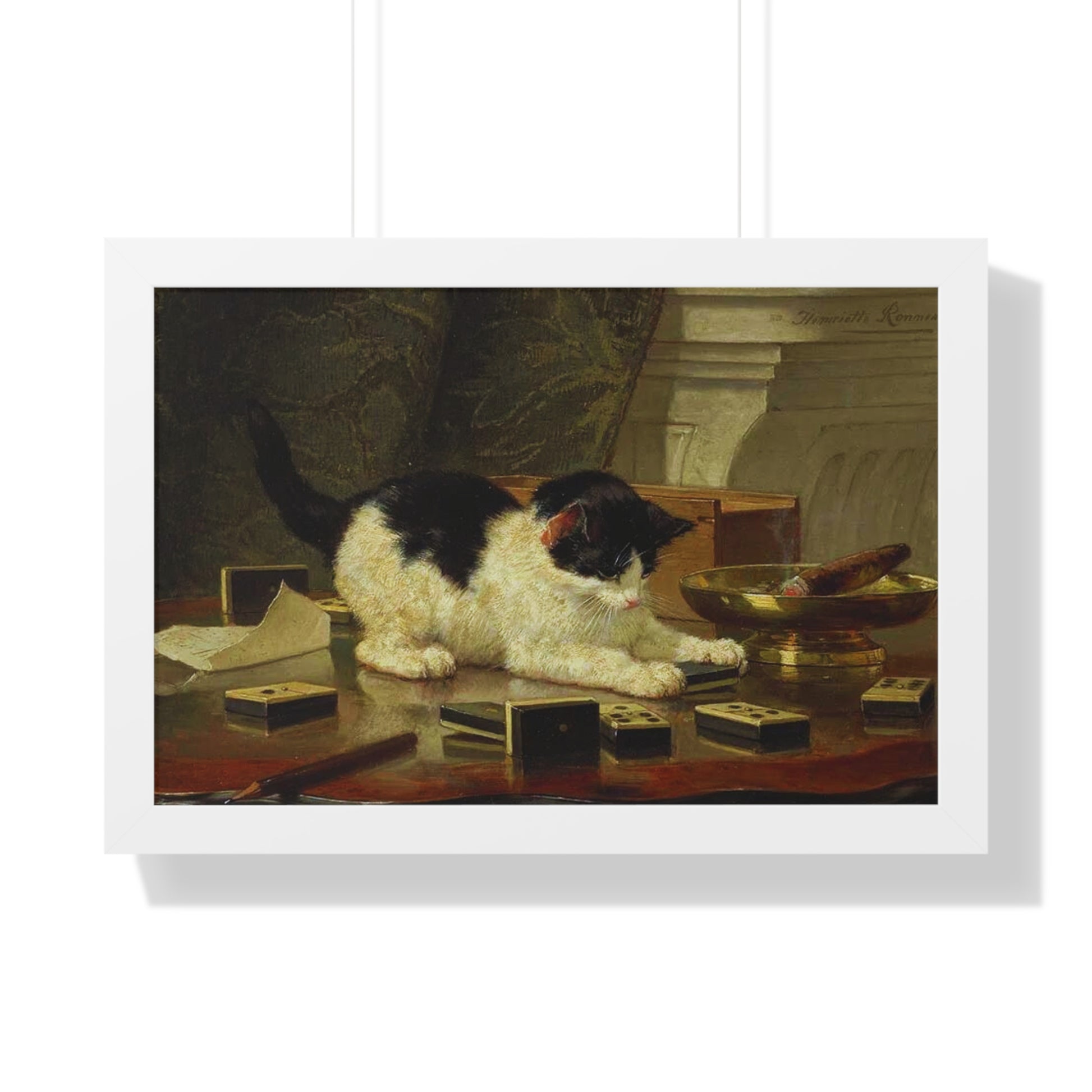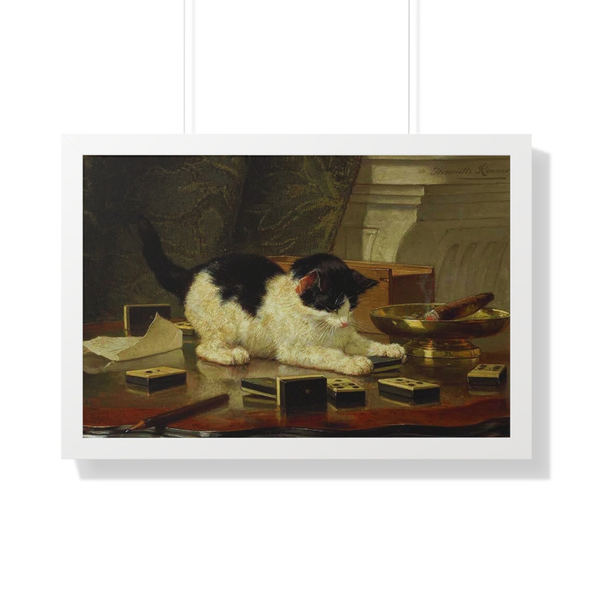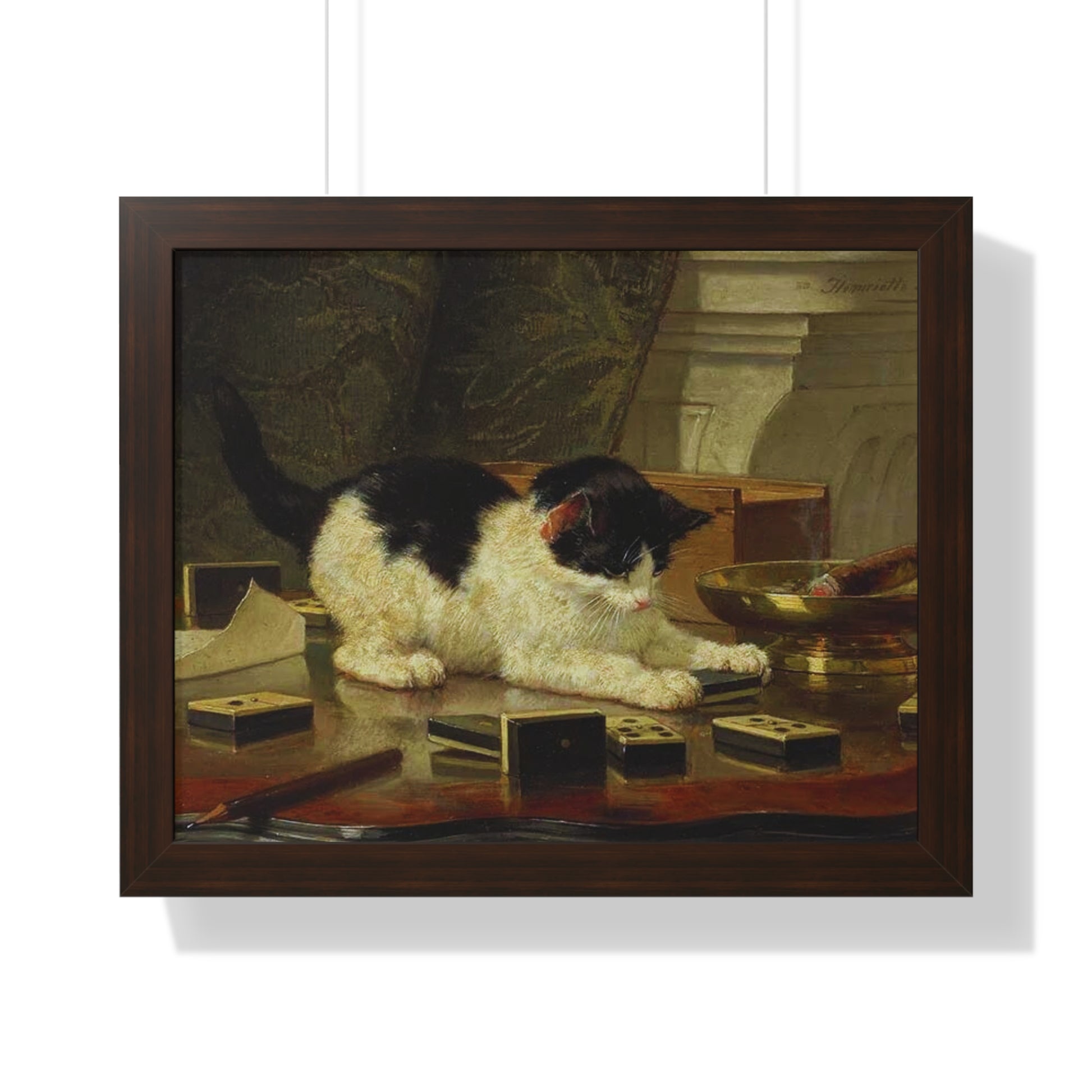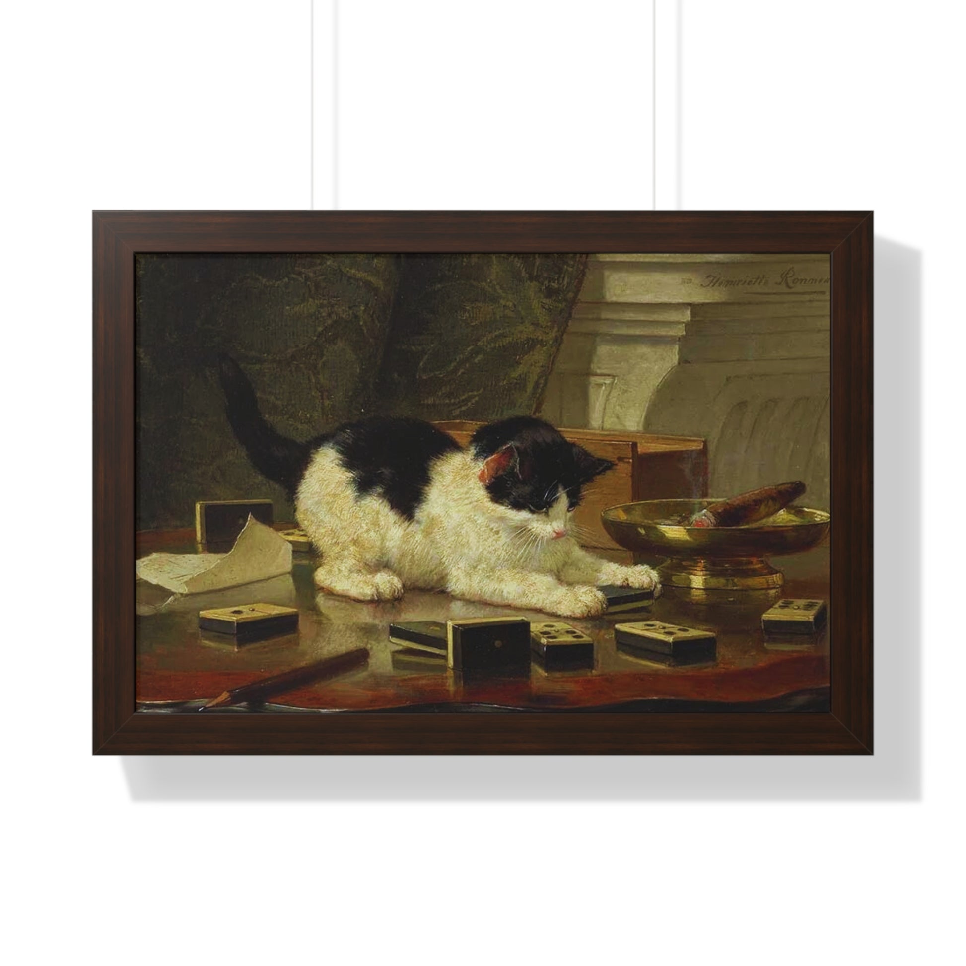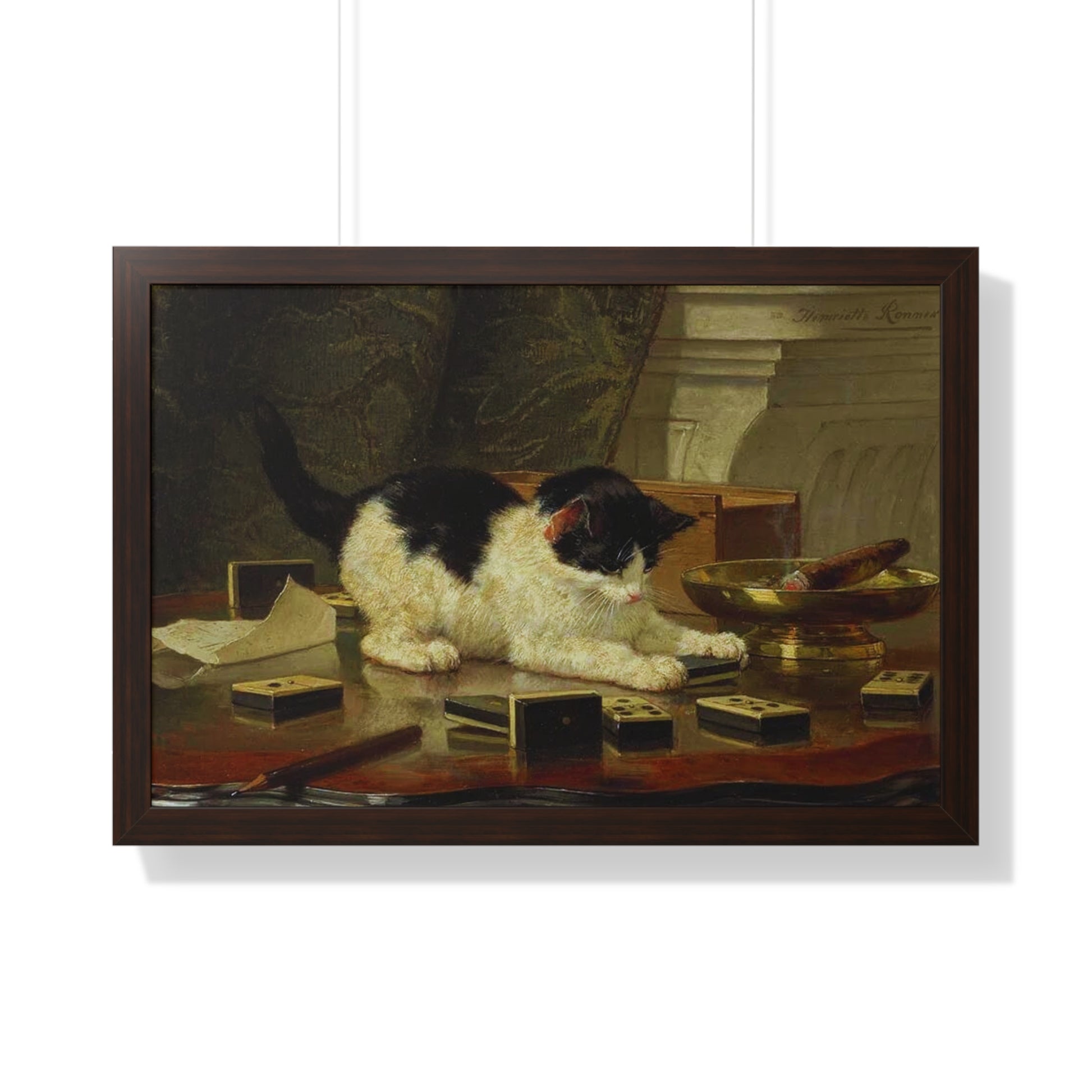 Elevate your wall decor with our Premium Framed Historical Painting titled Kitten's Game by artist Henriëtte Ronner-Knip. Available in three sophisticated colors: black, white, and walnut.