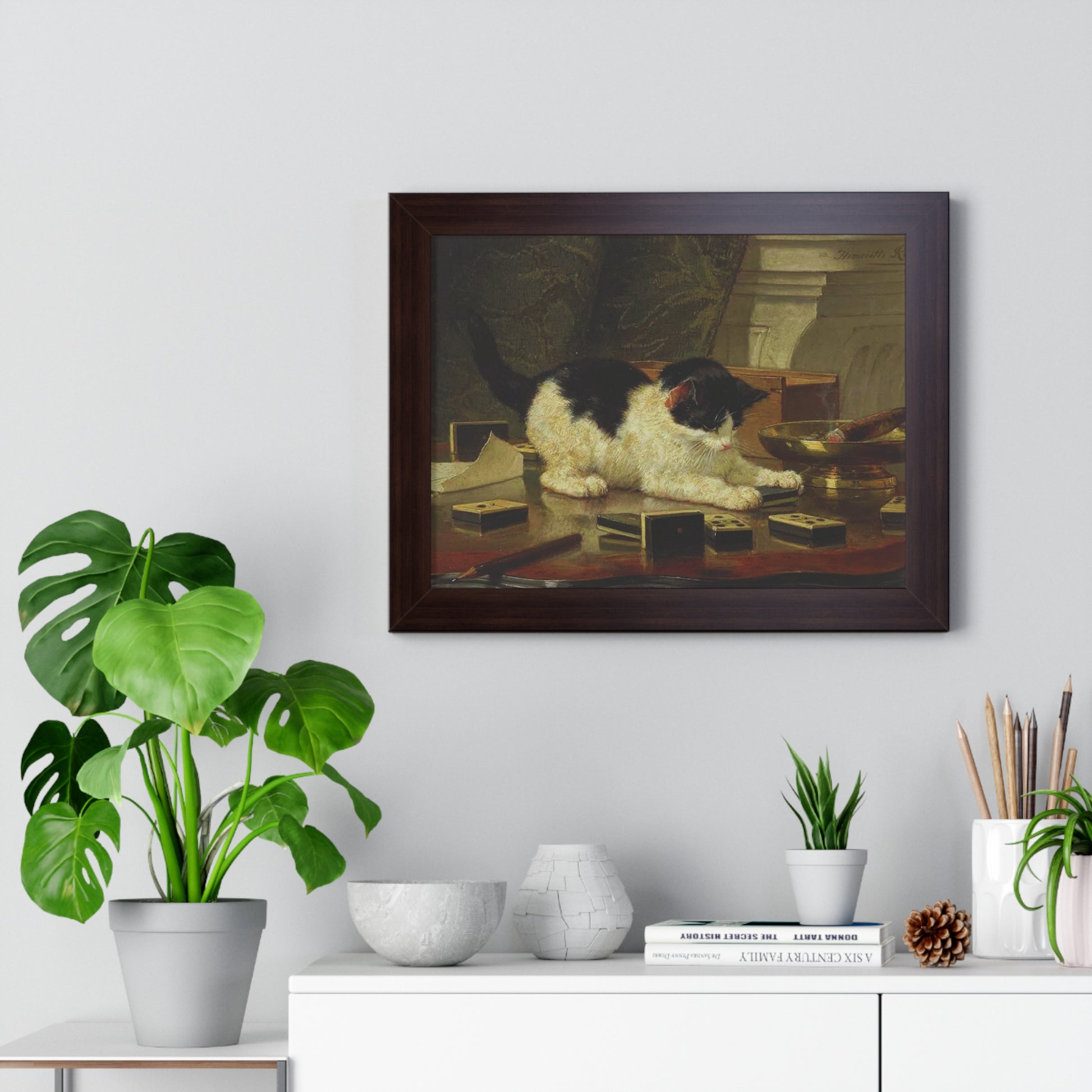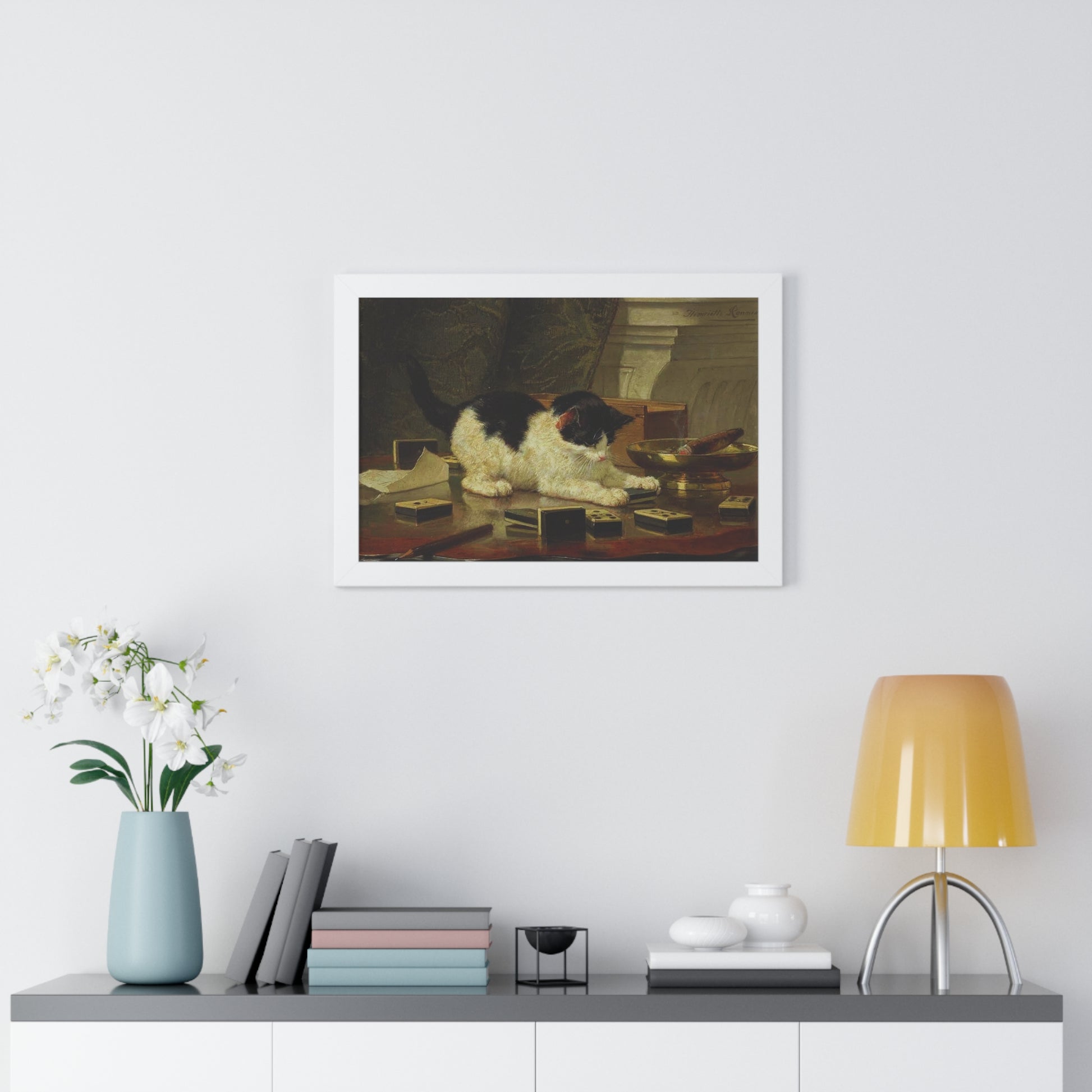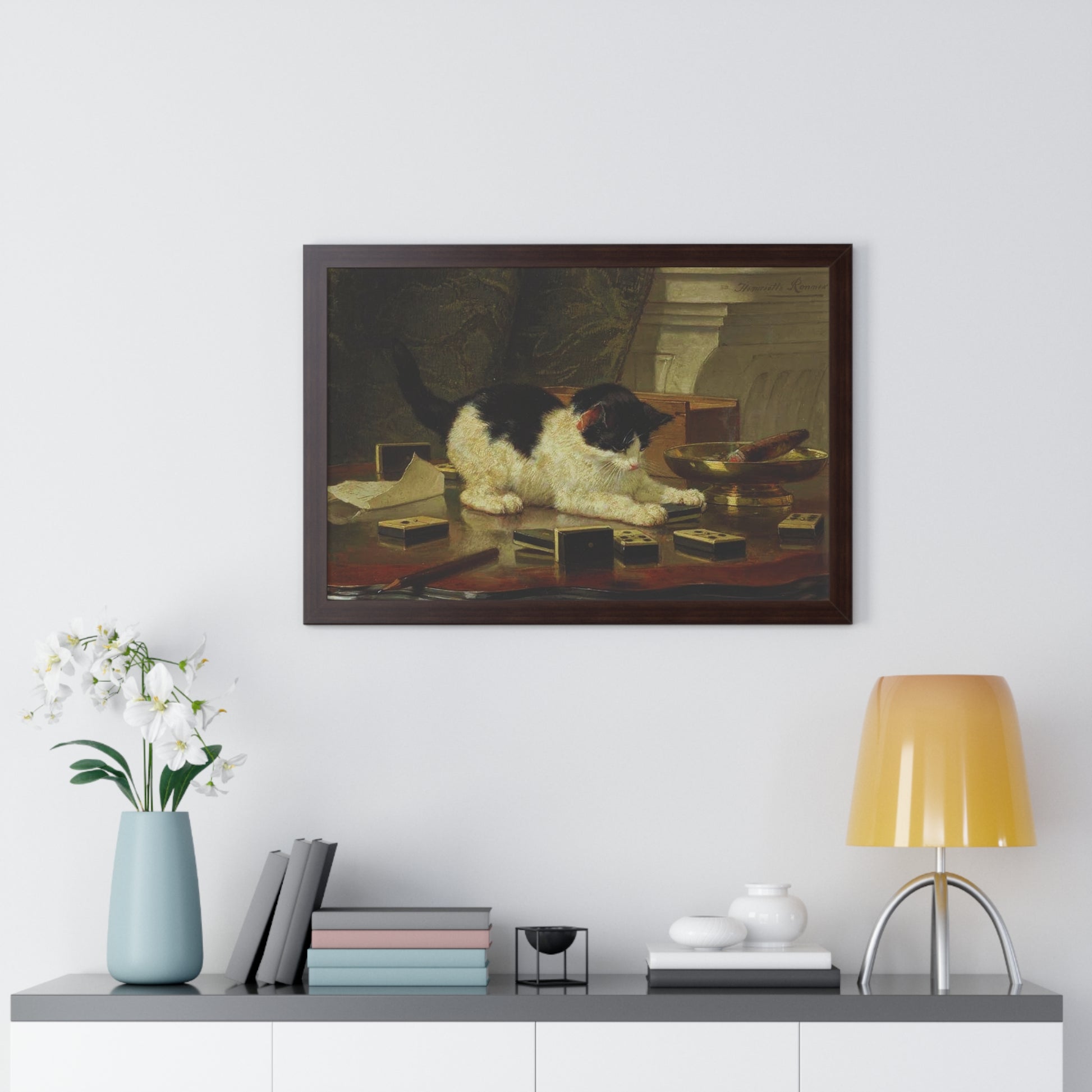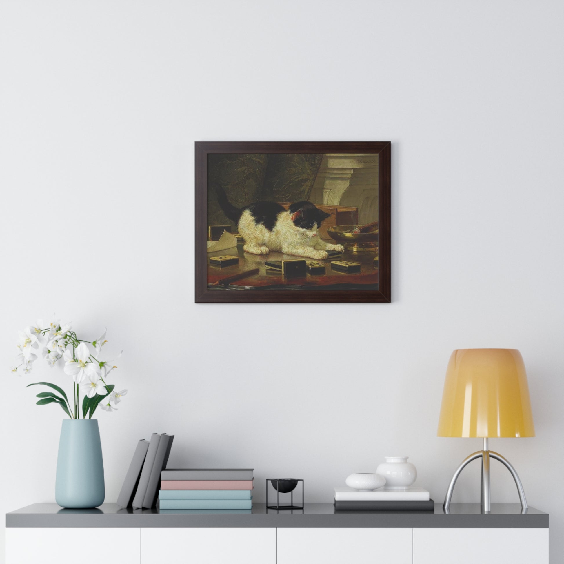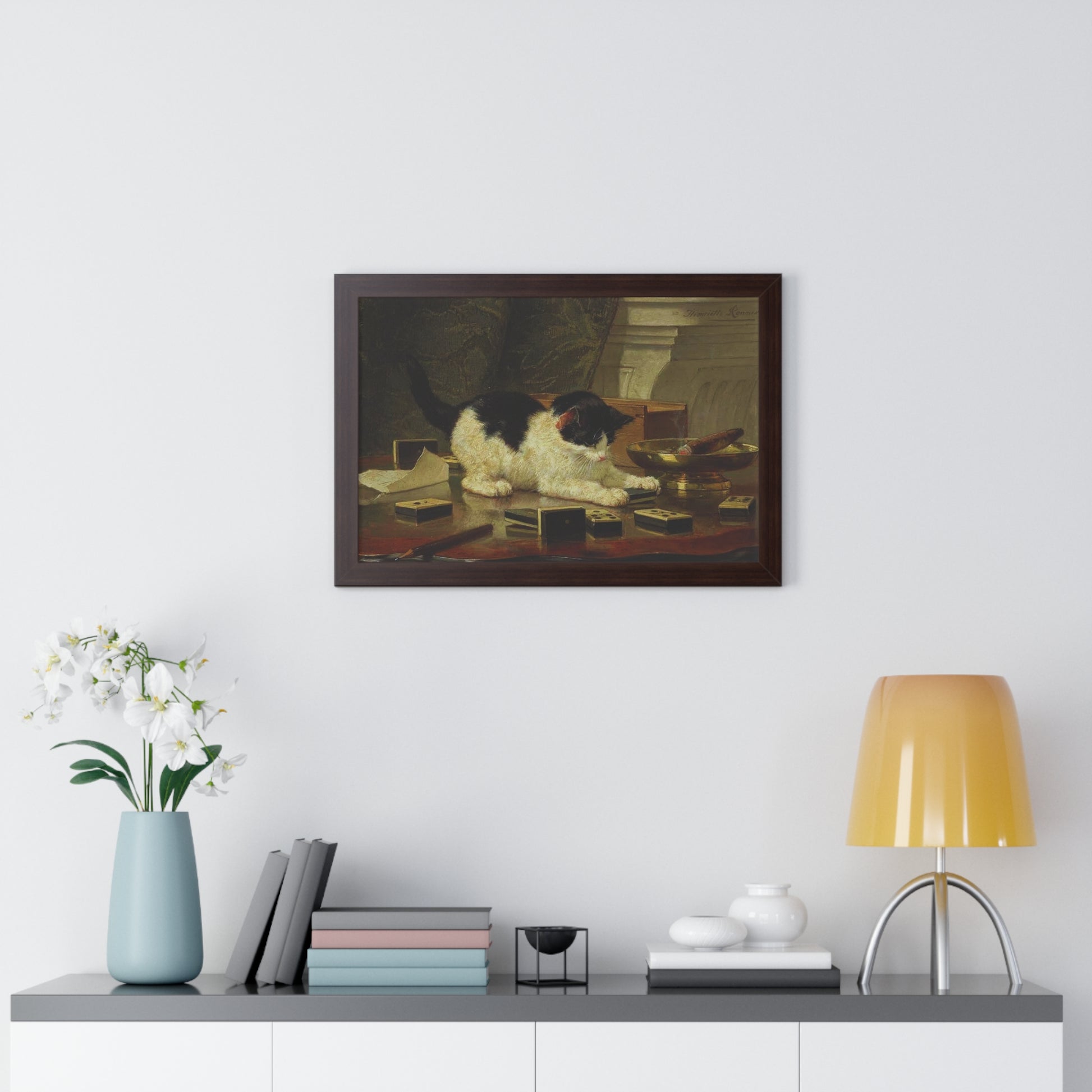 Elevate your wall decor with our Premium Framed Historical Painting titled Kitten's Game by artist Henriëtte Ronner-Knip. Available in three sophisticated colors: black, white, and walnut.
