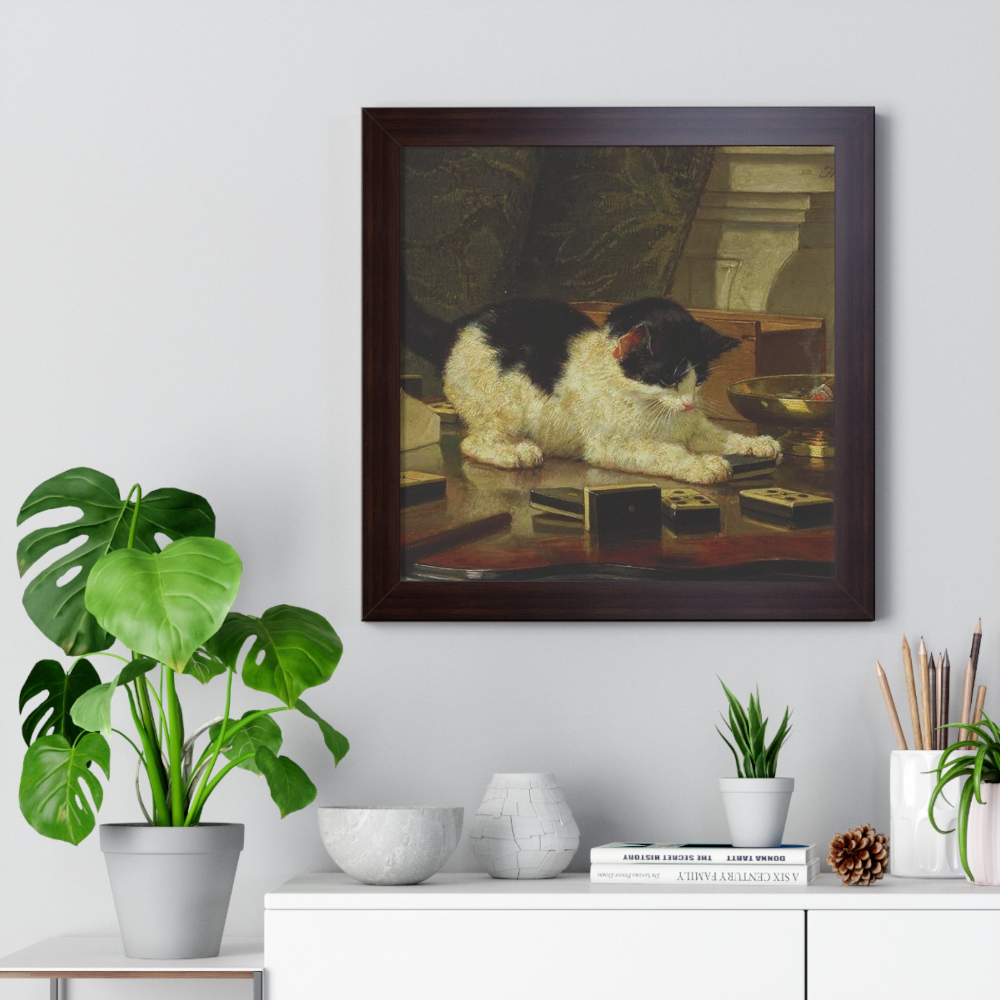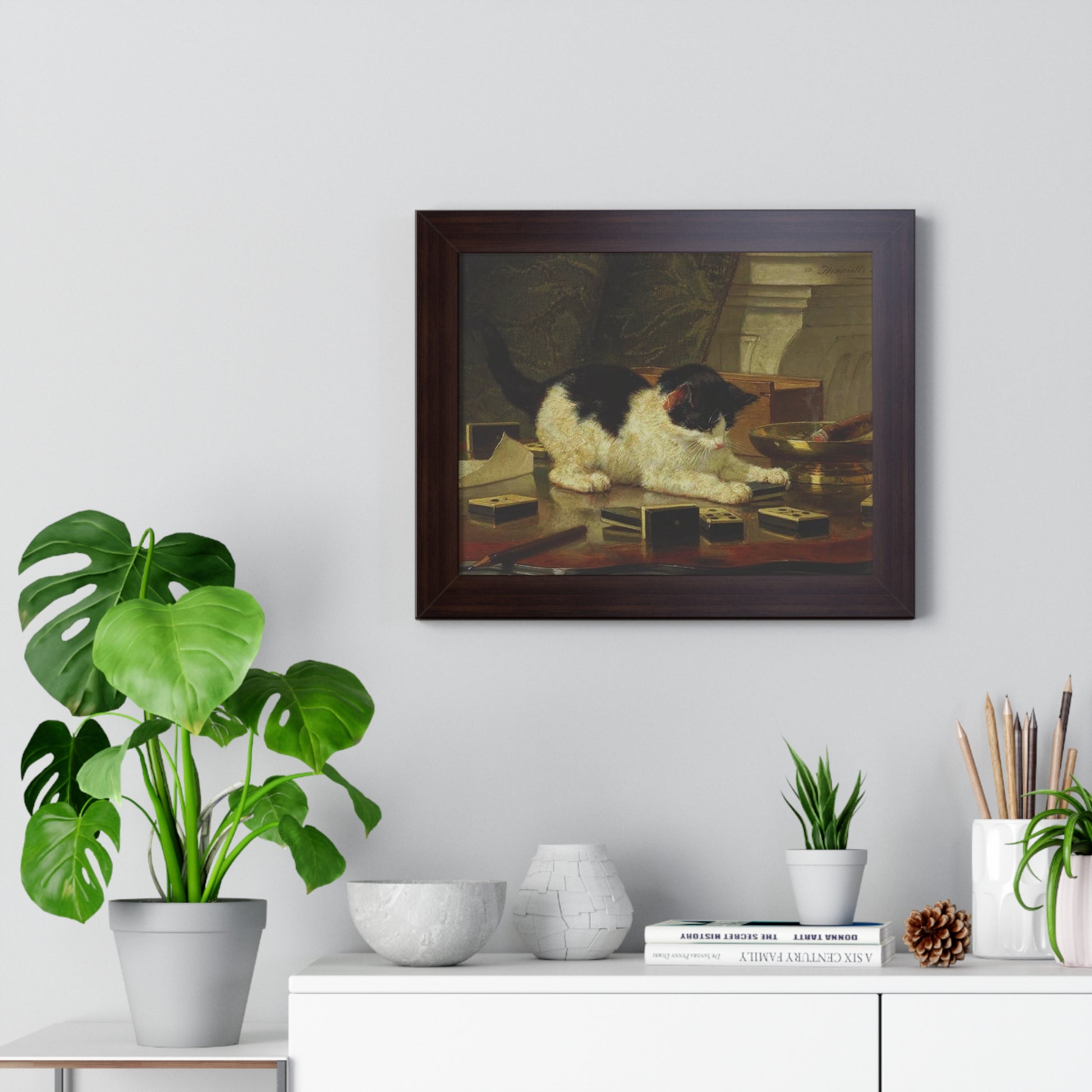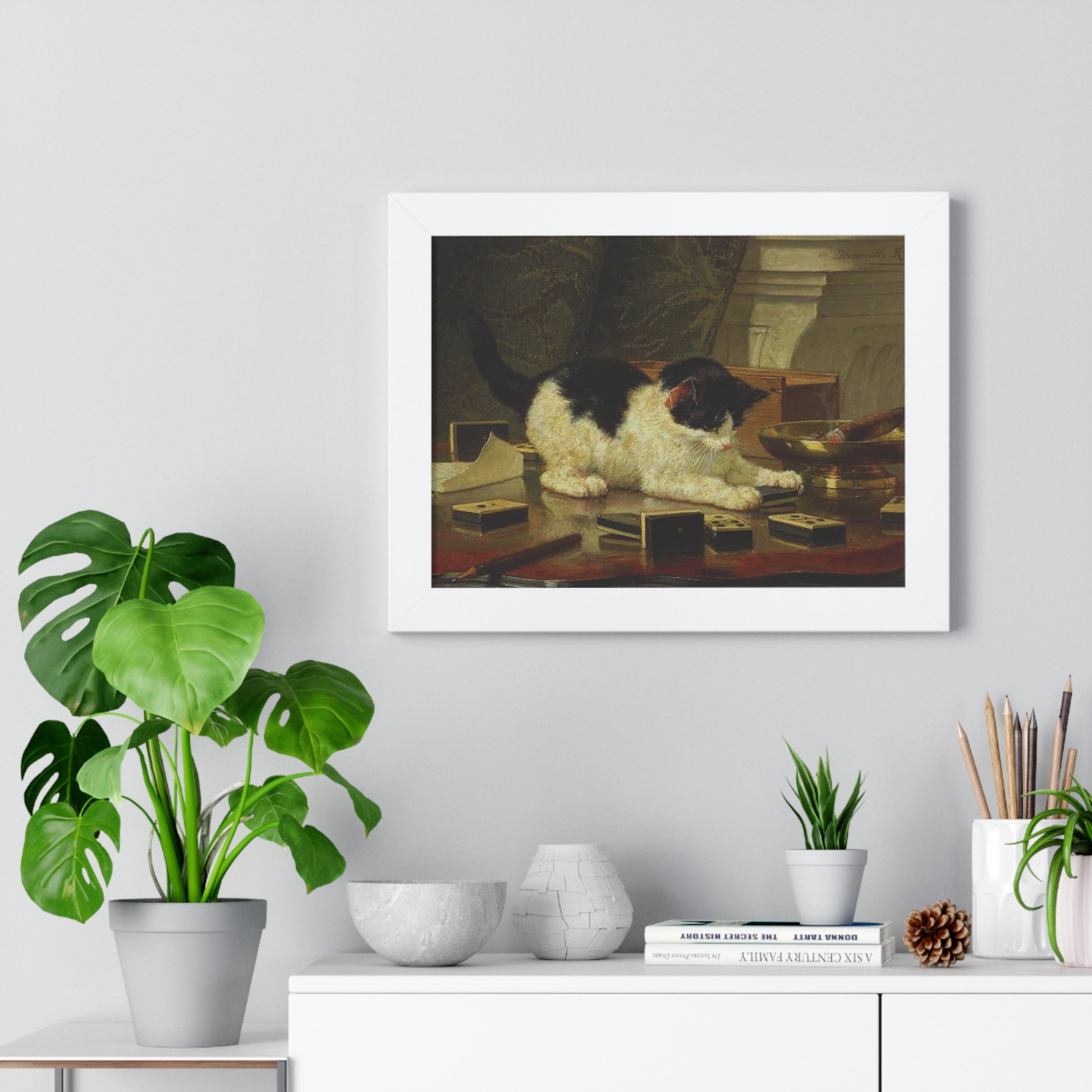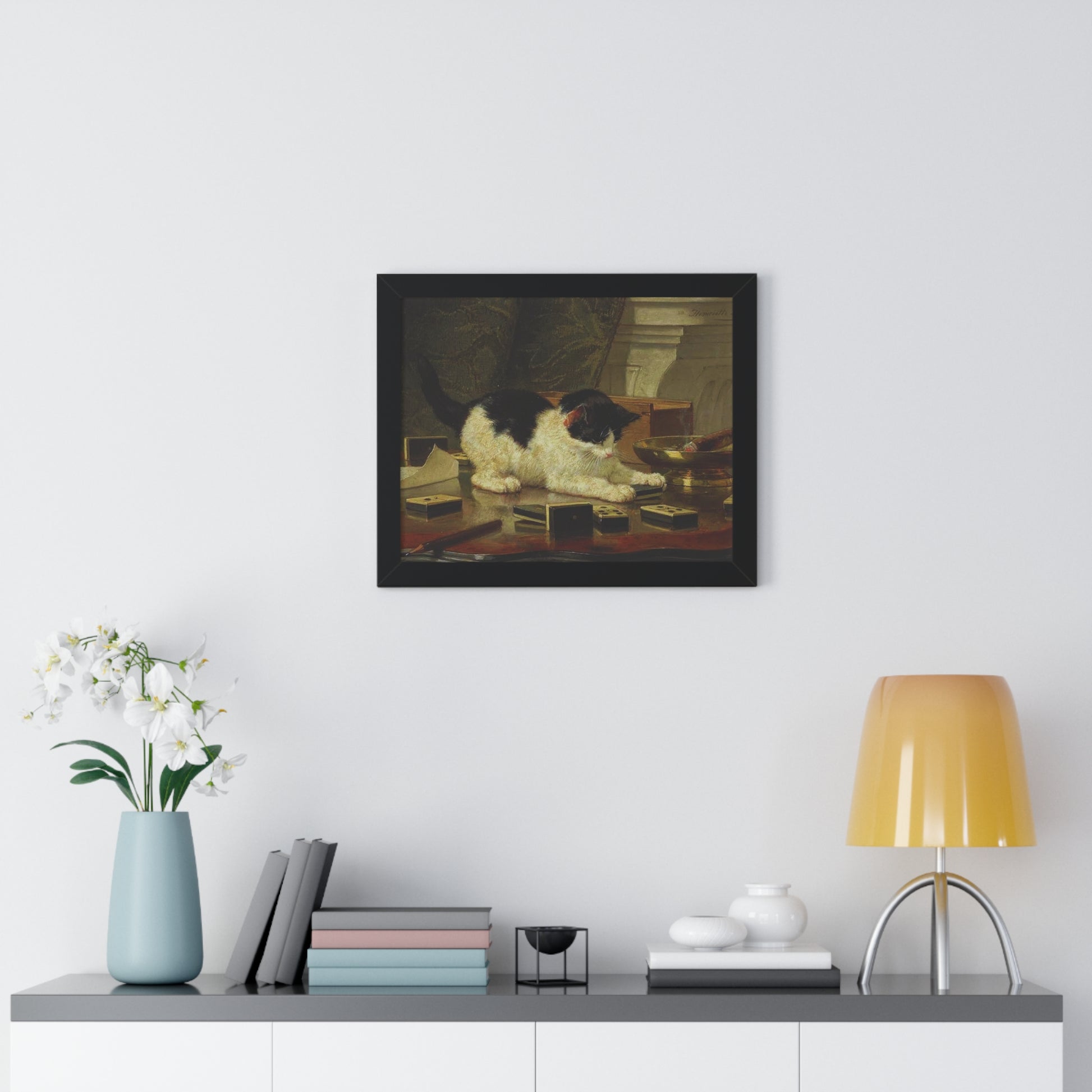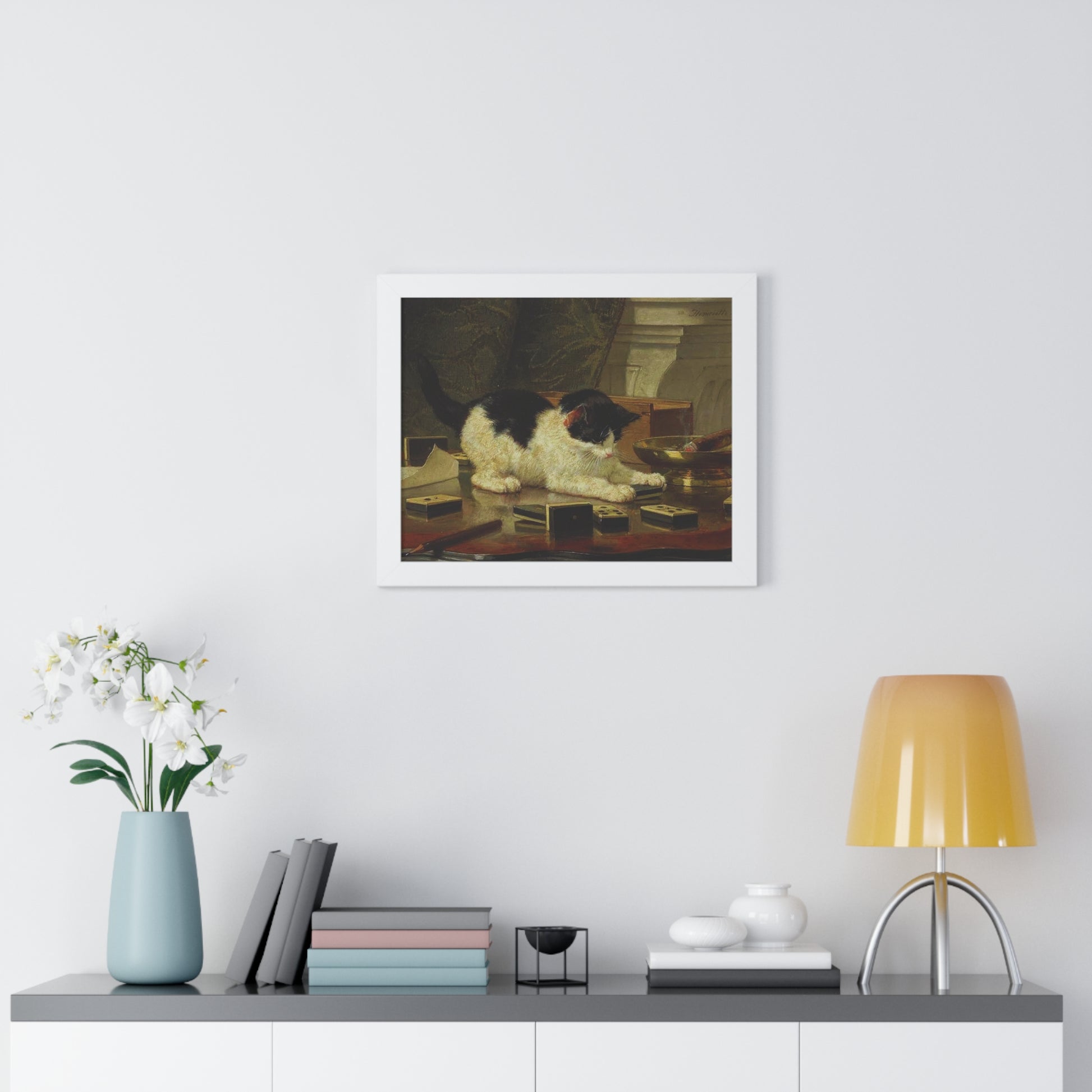 Elevate your wall decor with our Premium Framed Historical Painting titled Kitten's Game by artist Henriëtte Ronner-Knip. Available in three sophisticated colors: black, white, and walnut.