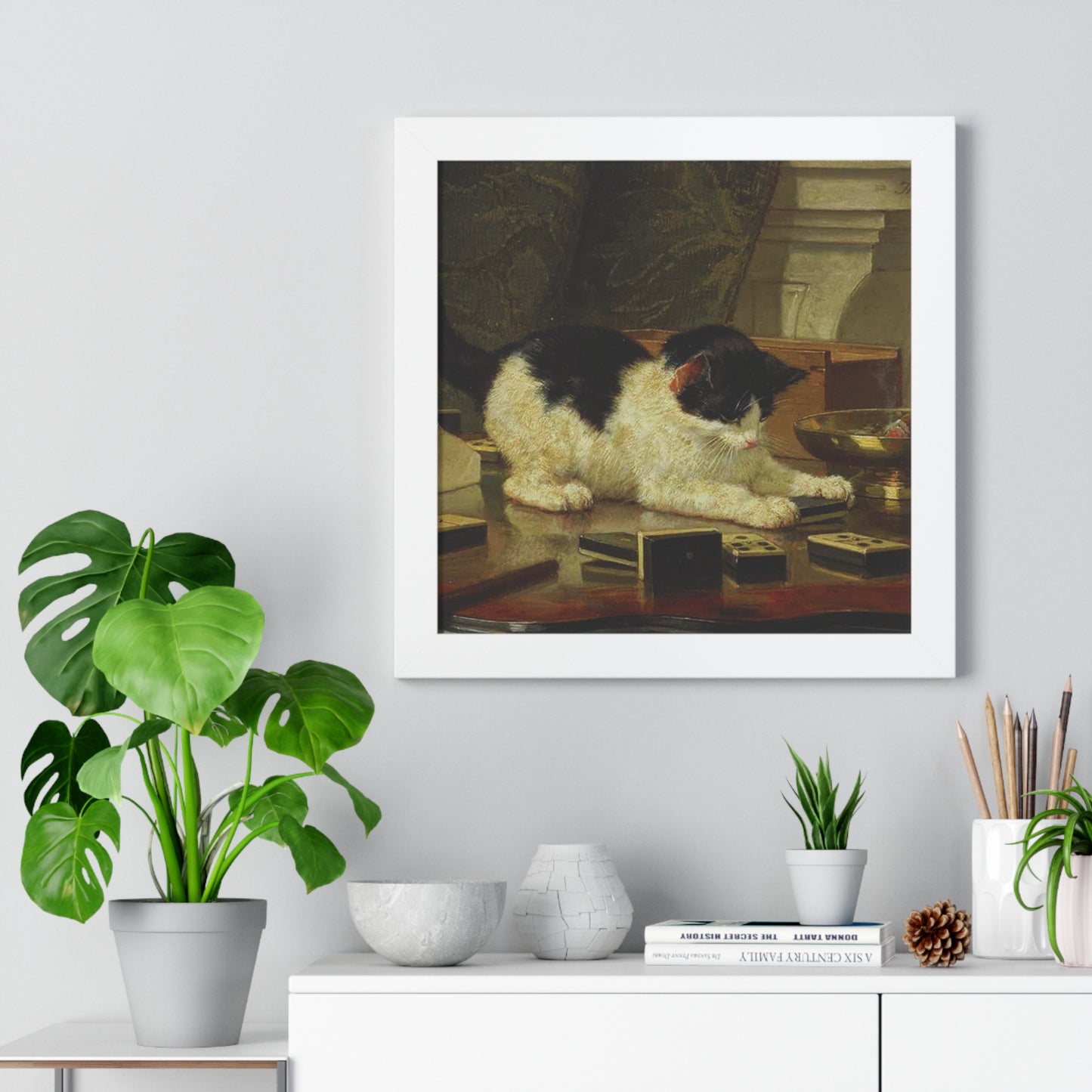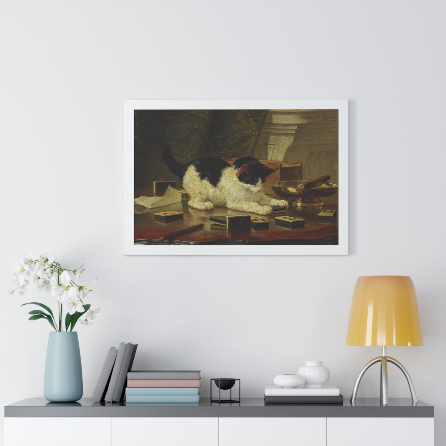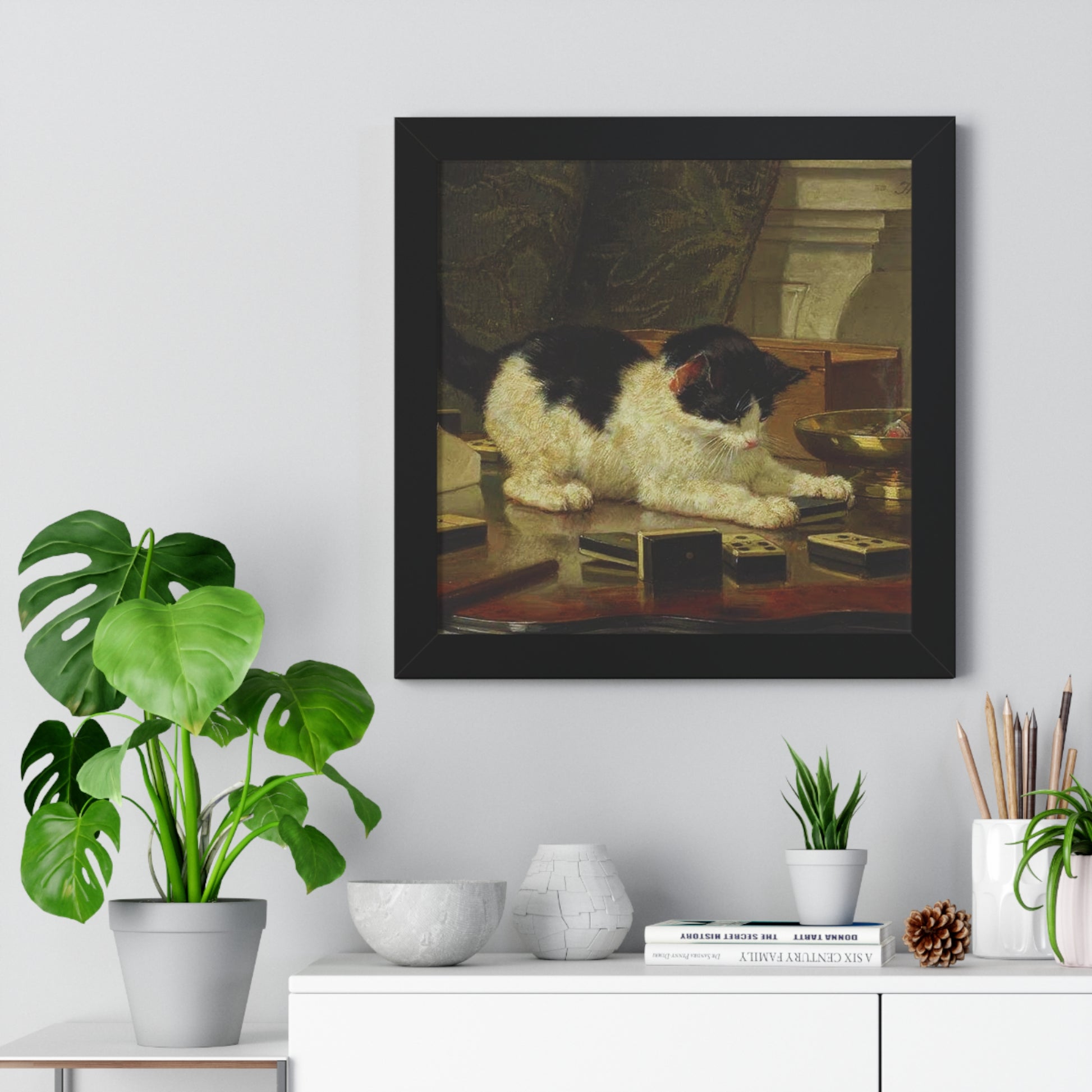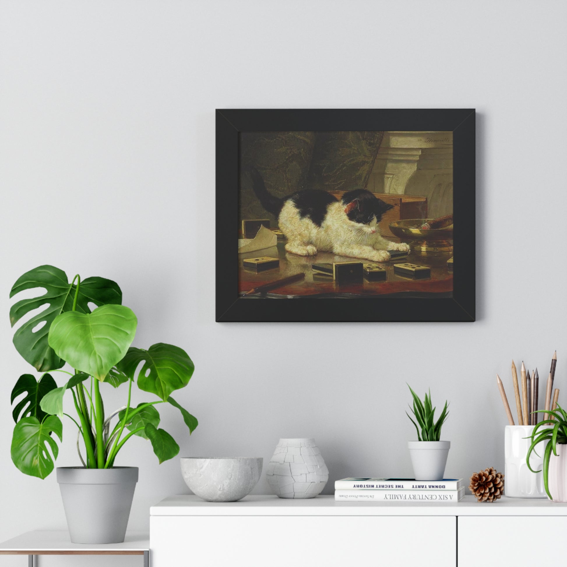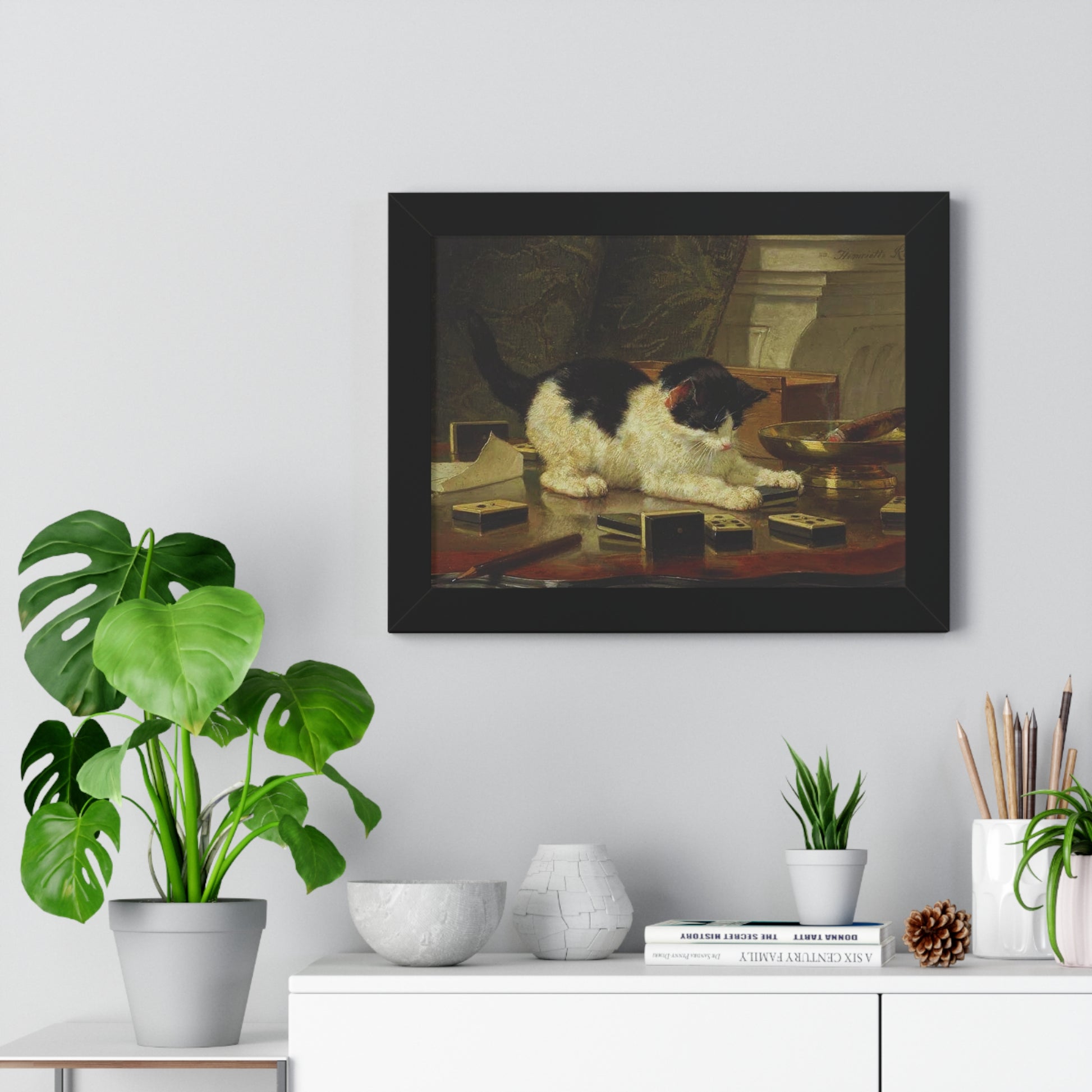 Elevate your wall decor with our Premium Framed Historical Painting titled Kitten's Game by artist Henriëtte Ronner-Knip. Available in three sophisticated colors: black, white, and walnut.