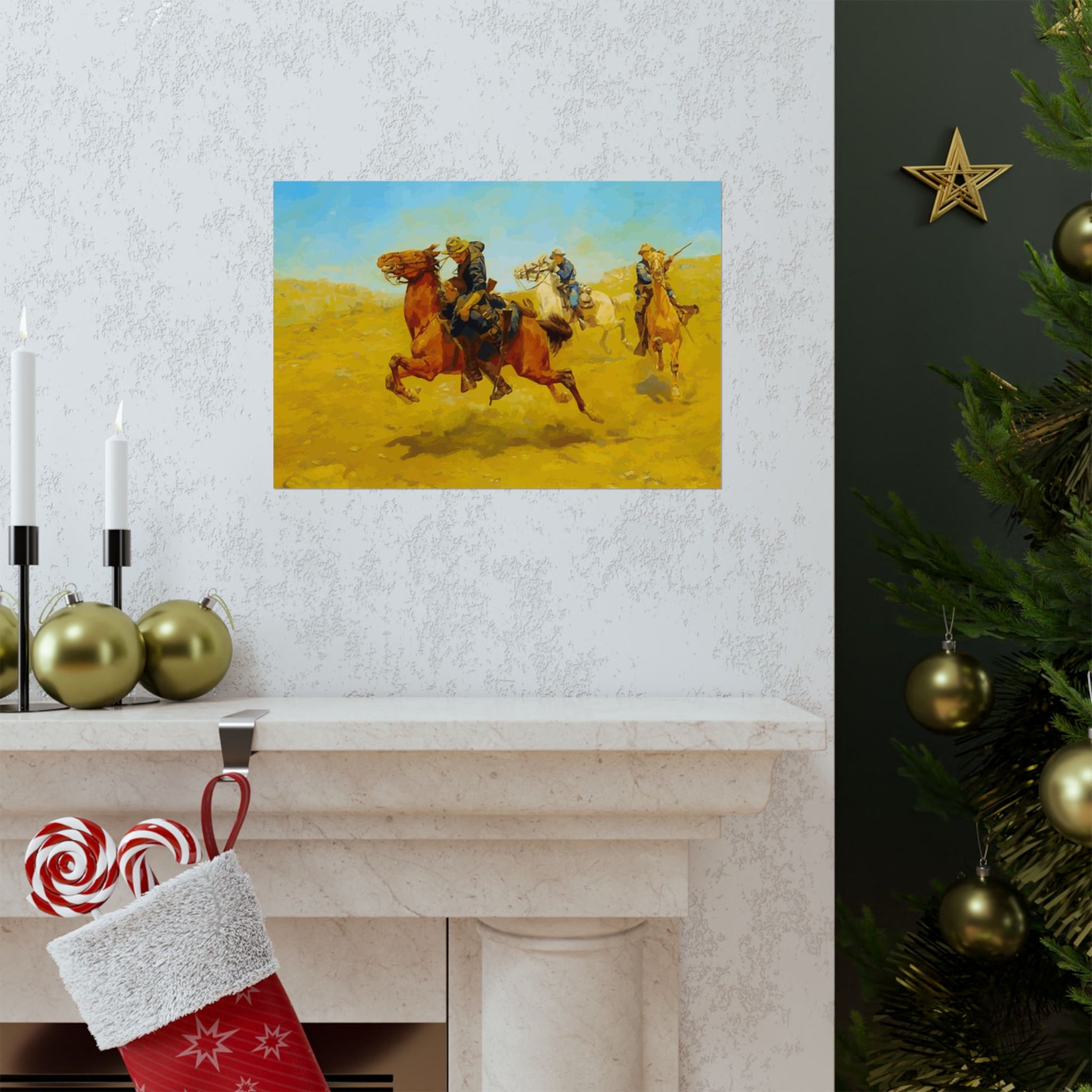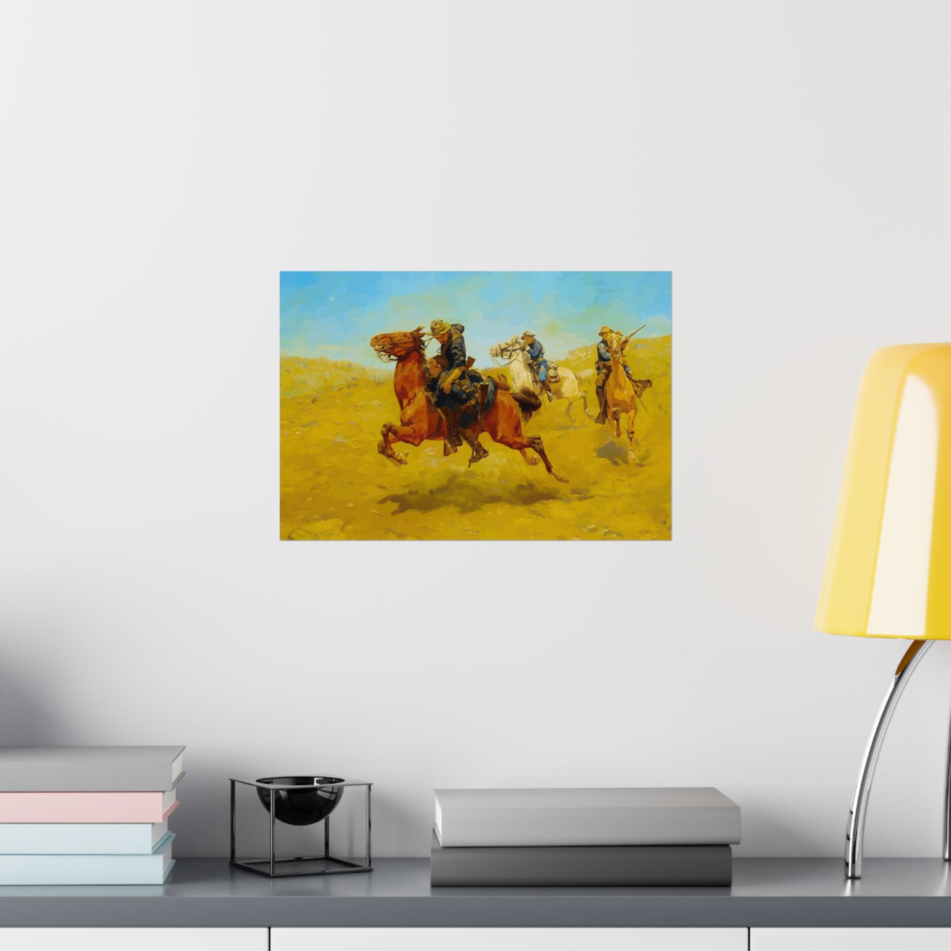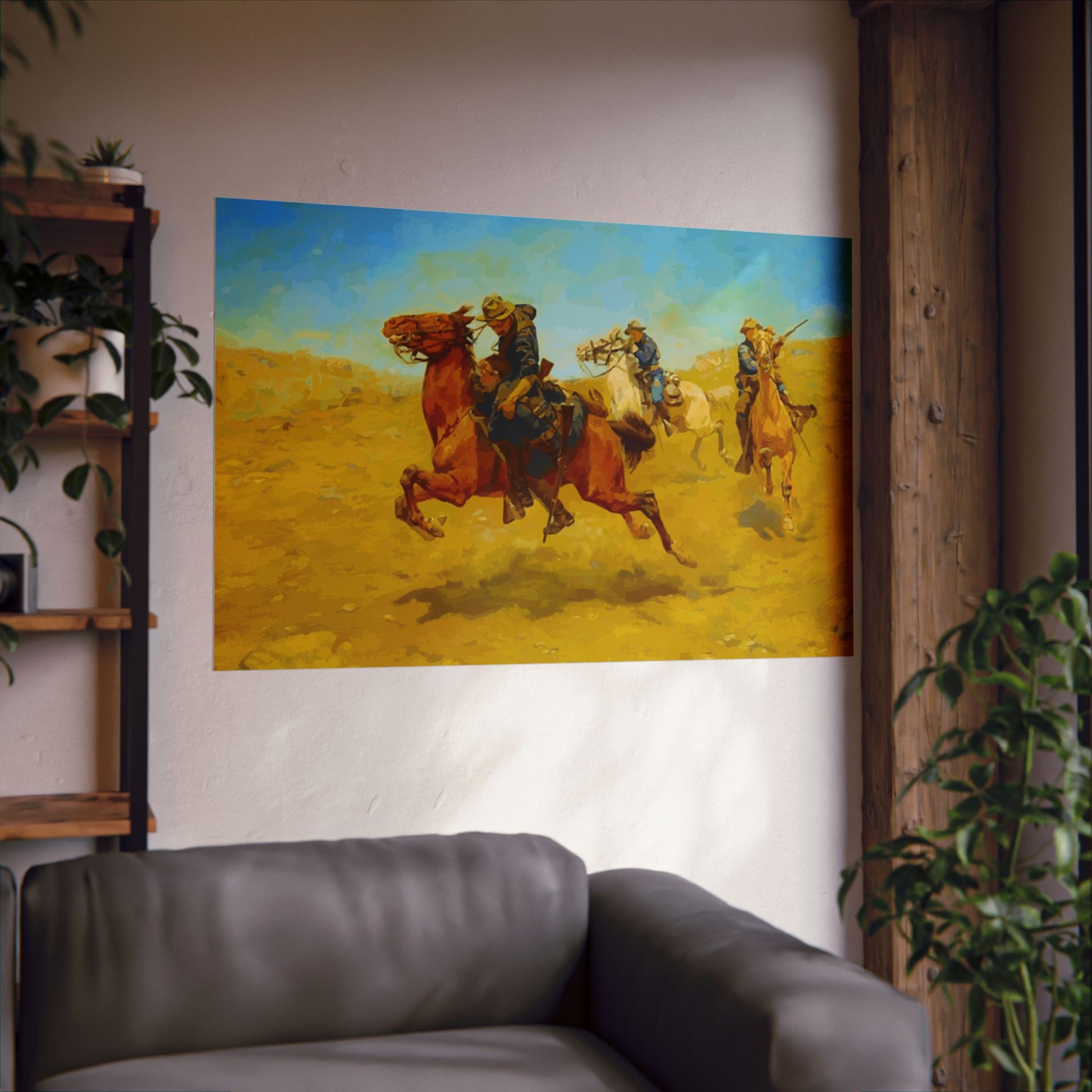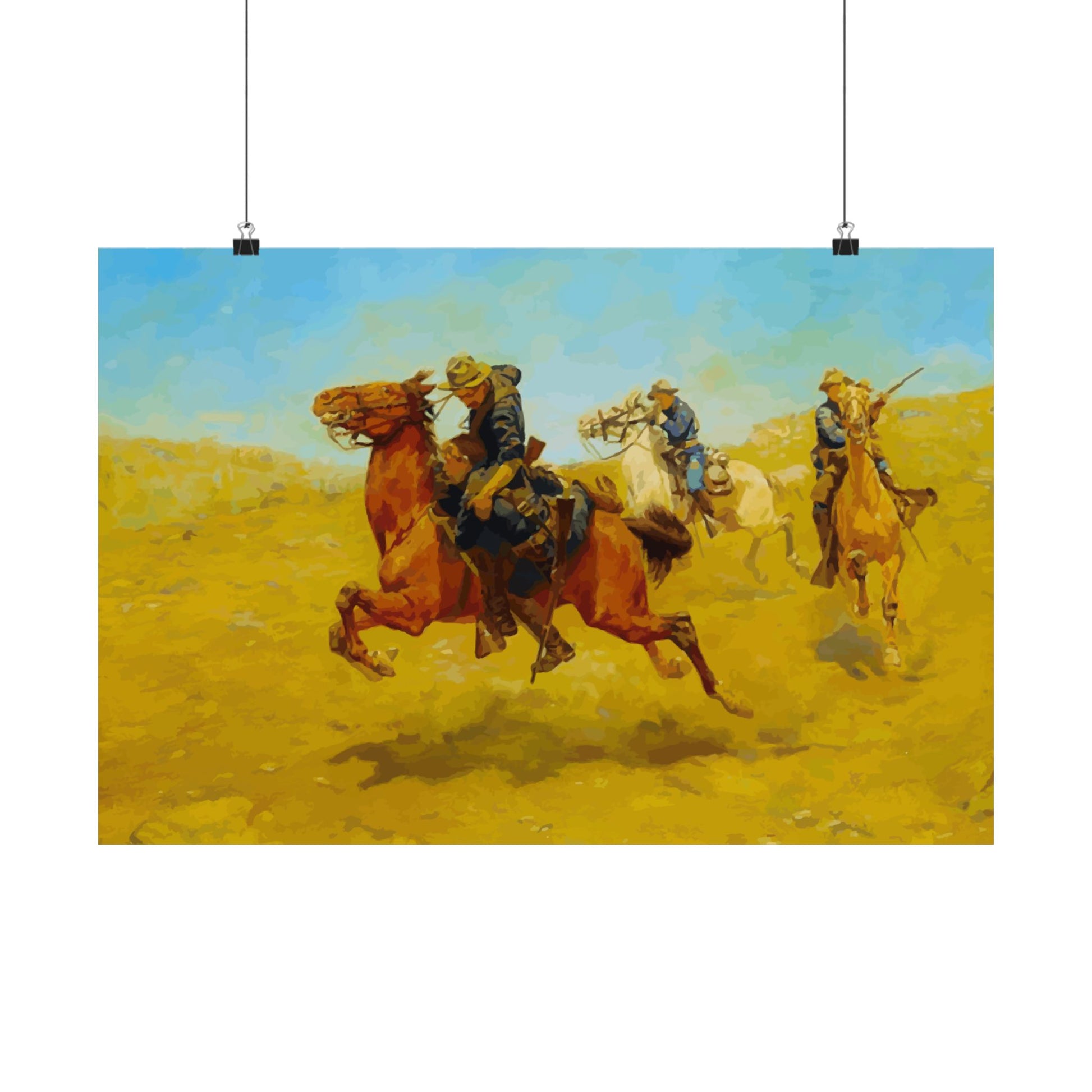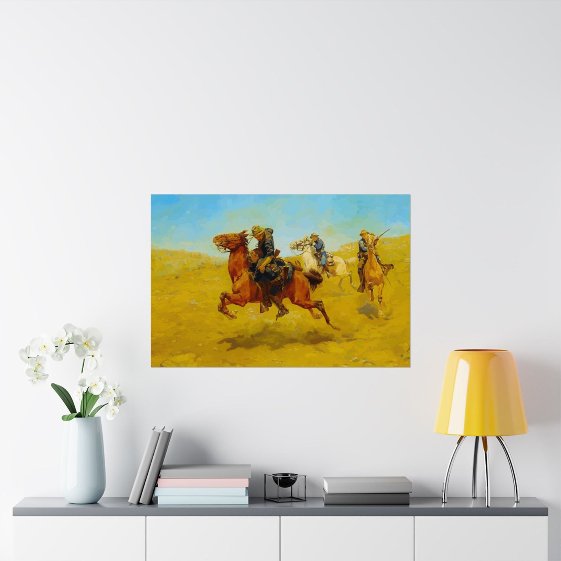 Add a little of bit of historical decoration with this Painting titled "My Bunkie" by Charles Schreyvogel depicting a U.S Cavalry unit. Perfect for history buffs, students, or anyone interested in American history. Ideal for decorating a home office, classroom, or study space.