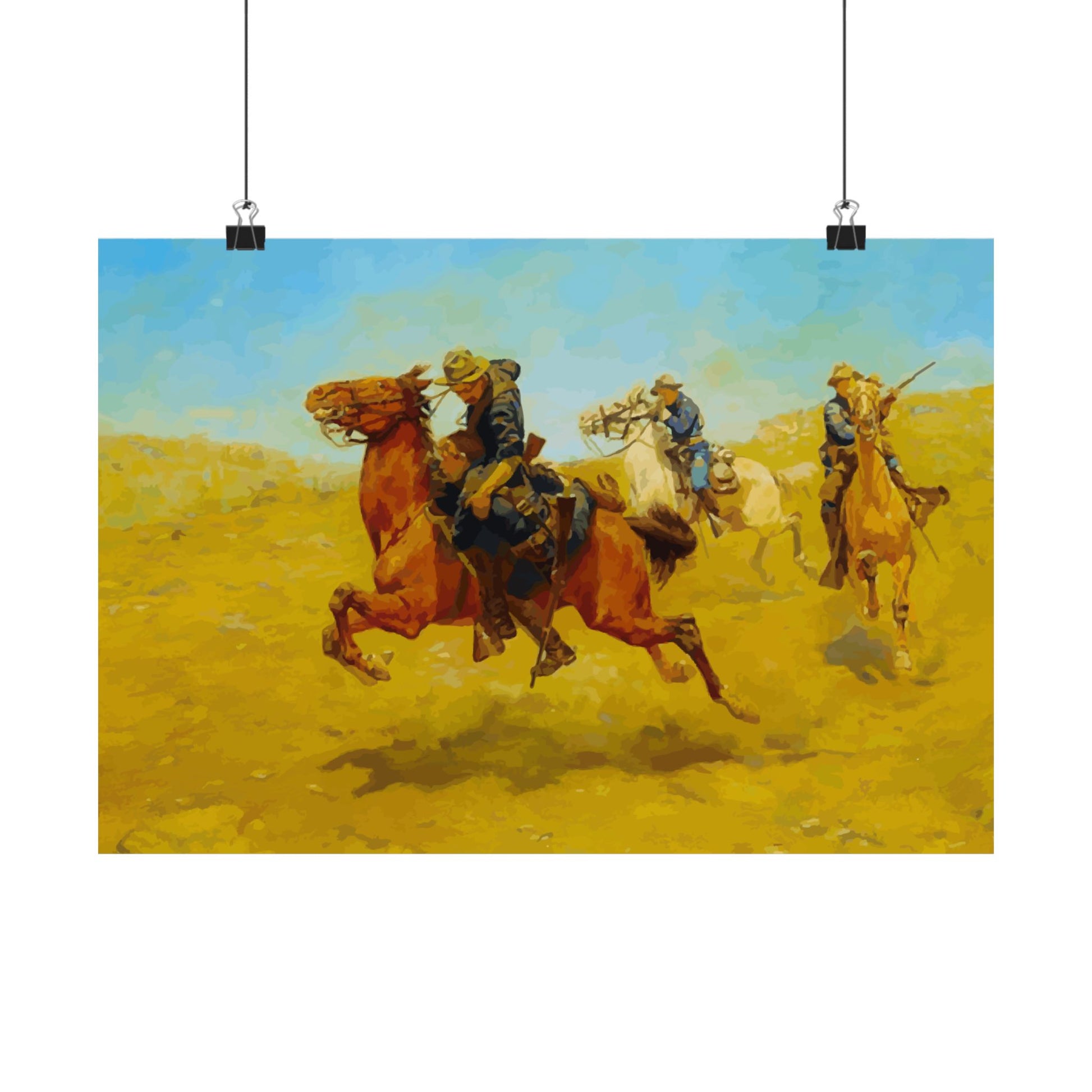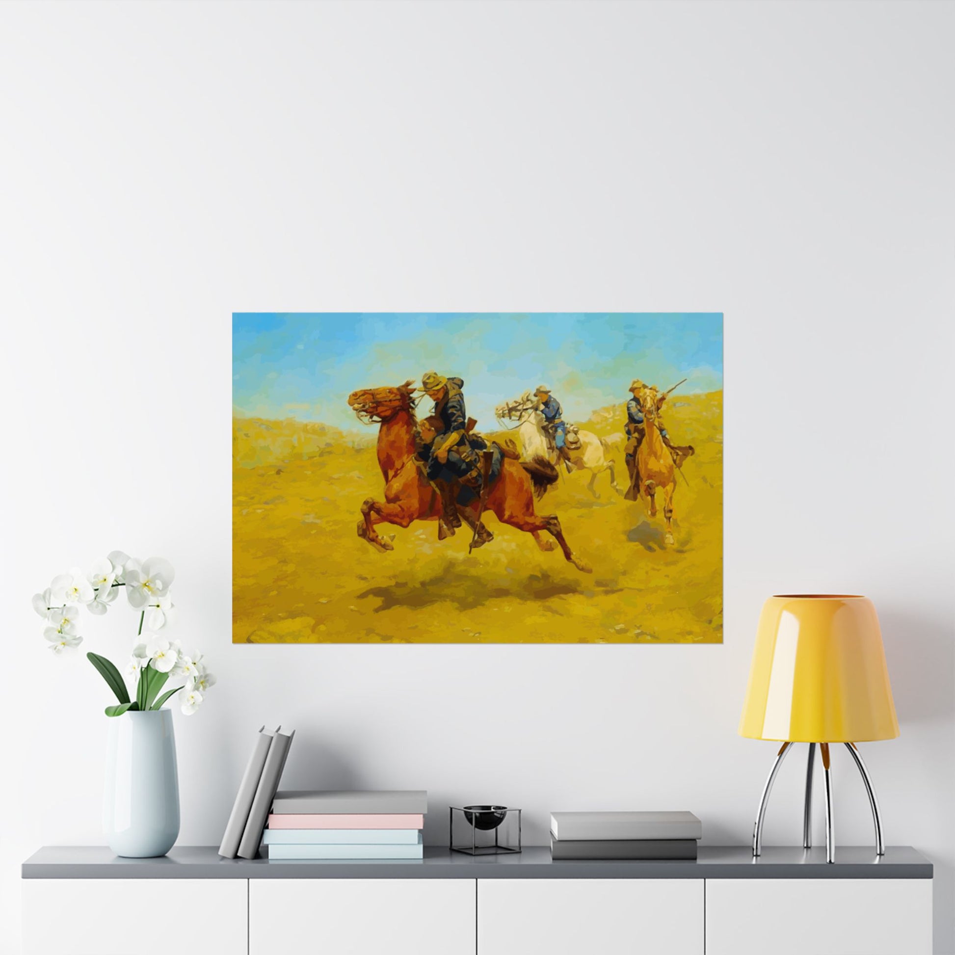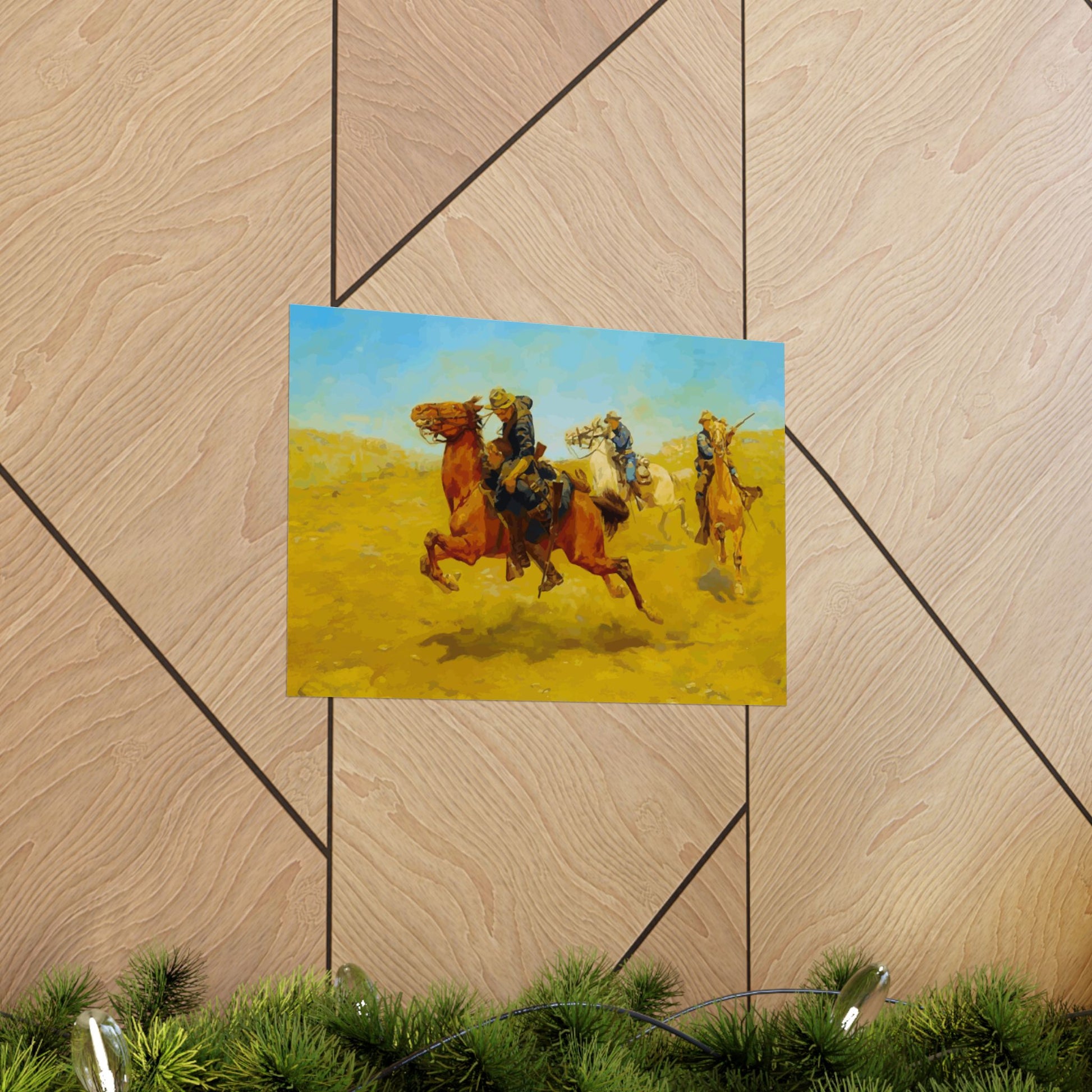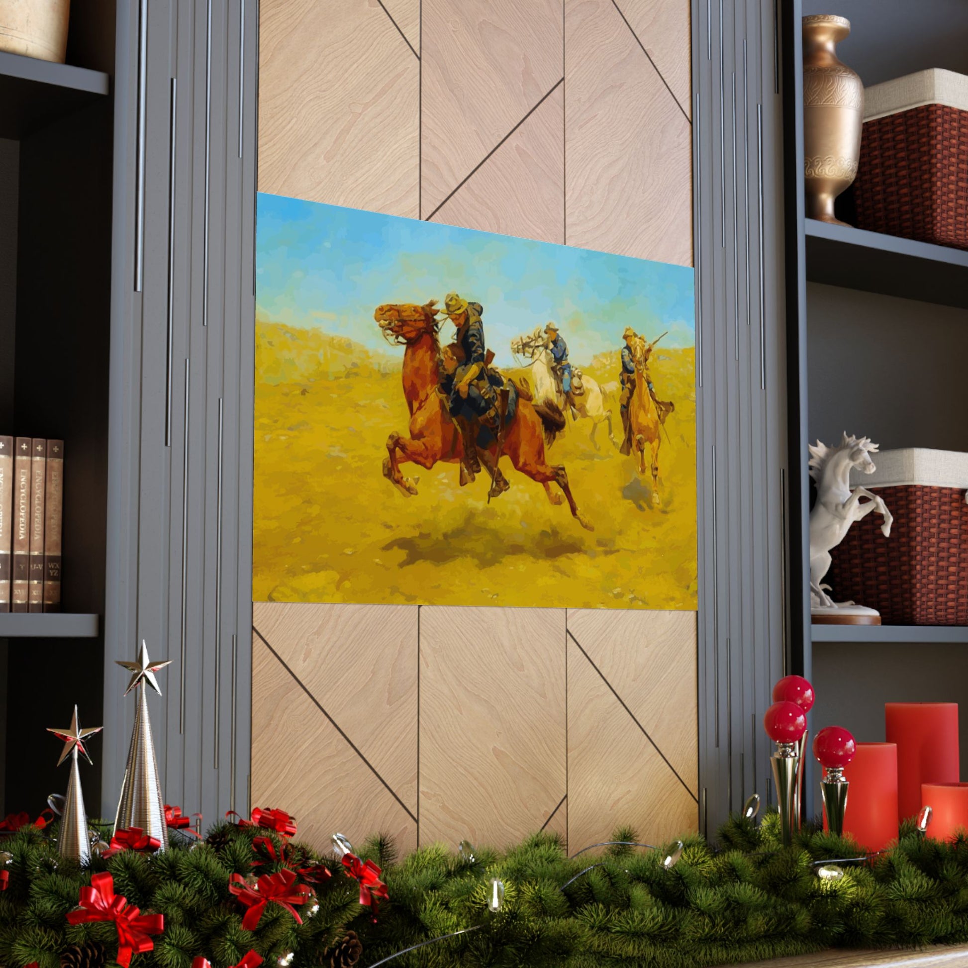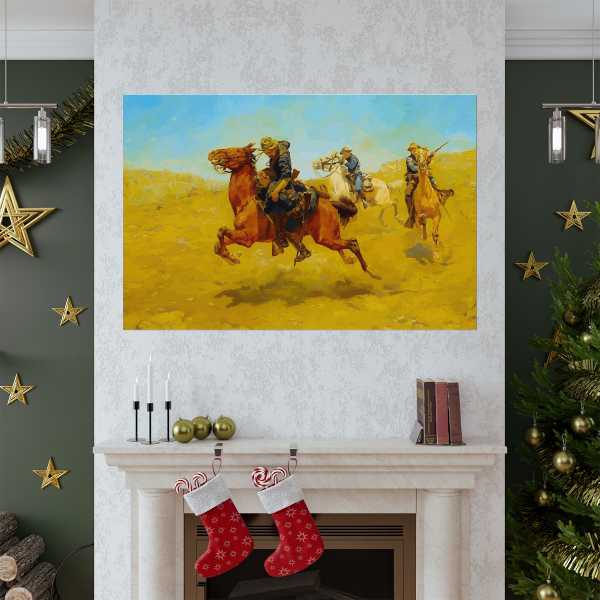 Add a little of bit of historical decoration with this Painting titled "My Bunkie" by Charles Schreyvogel depicting a U.S Cavalry unit. Perfect for history buffs, students, or anyone interested in American history. Ideal for decorating a home office, classroom, or study space.
