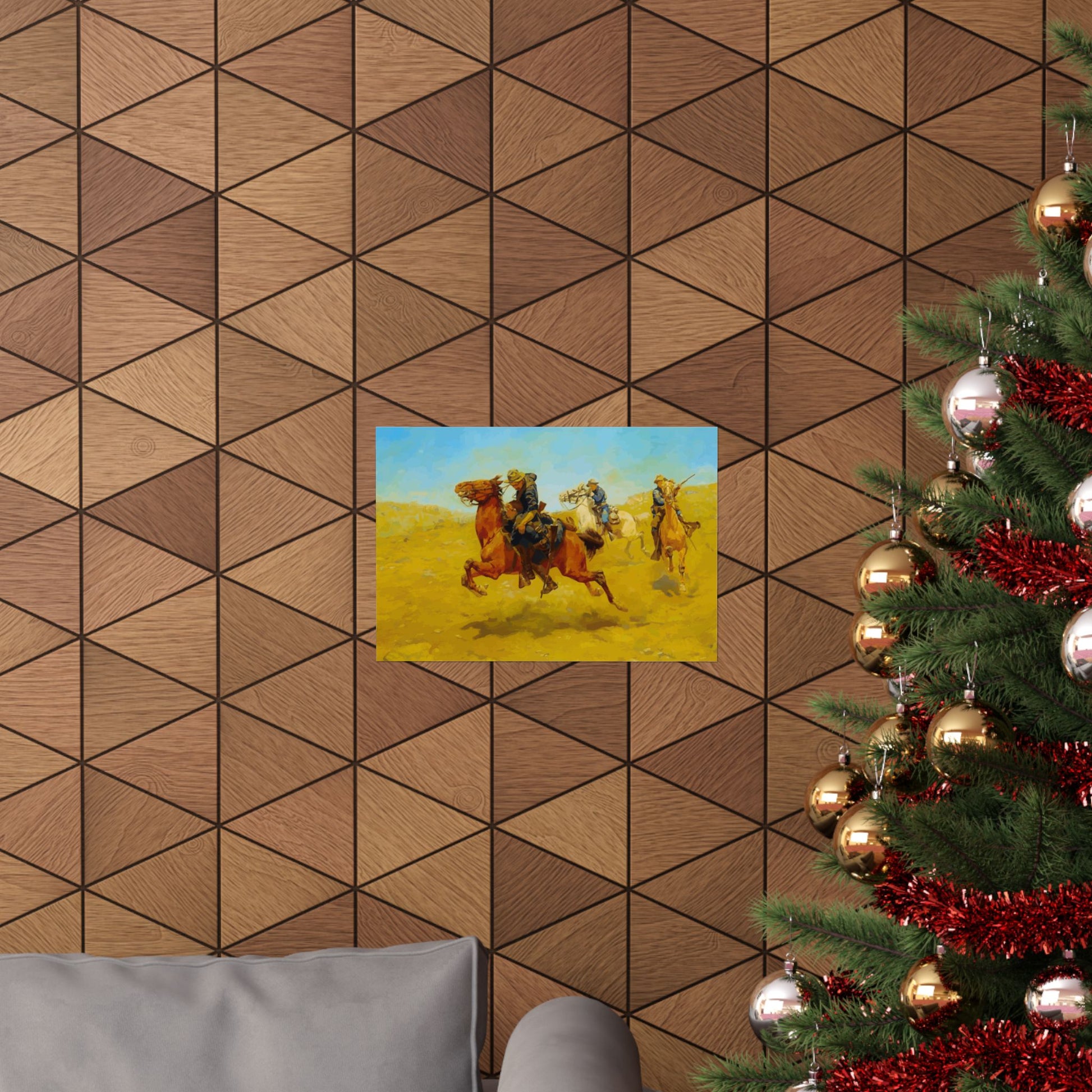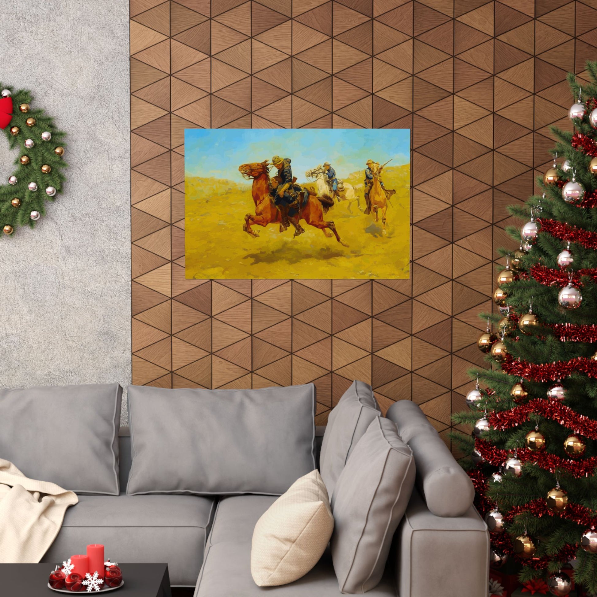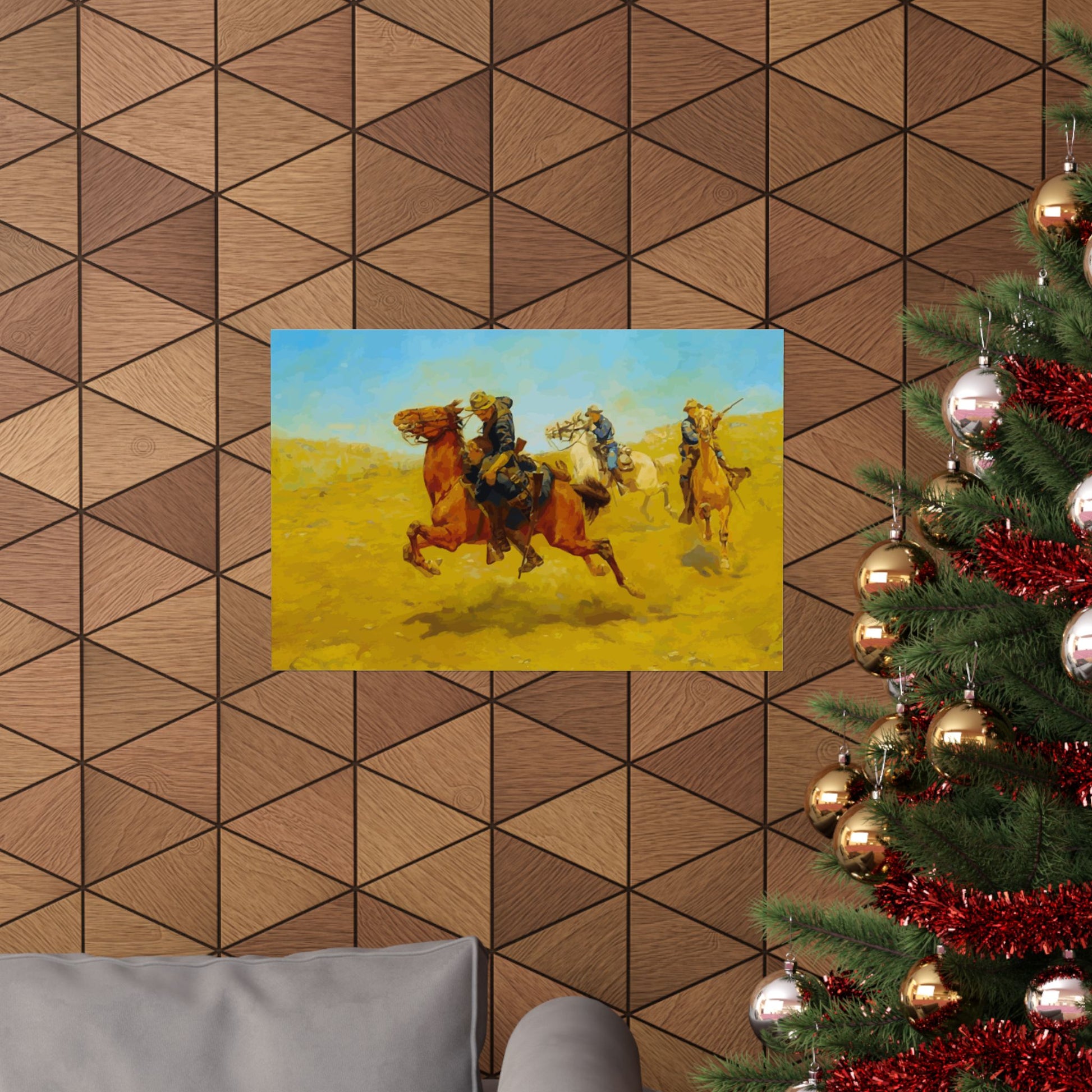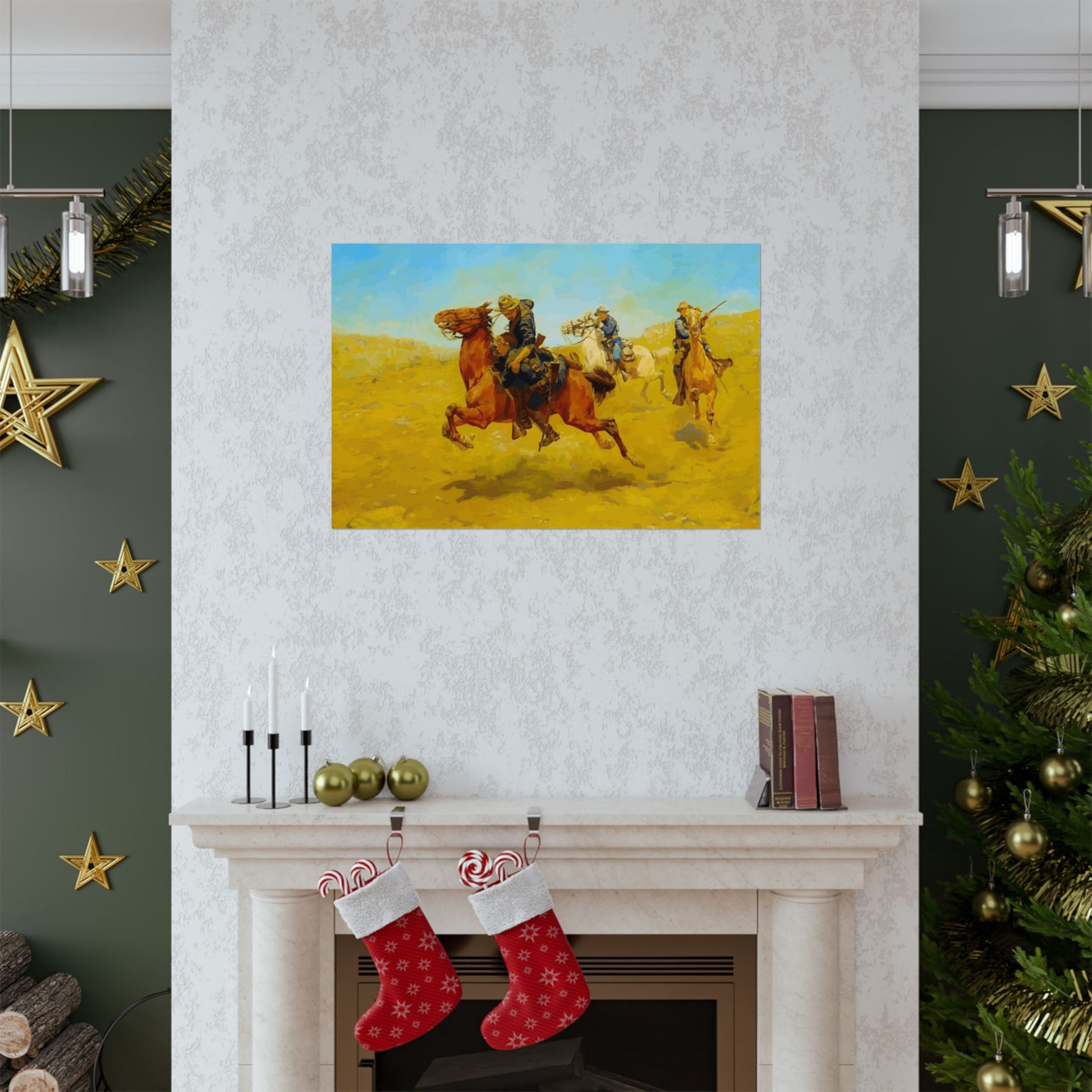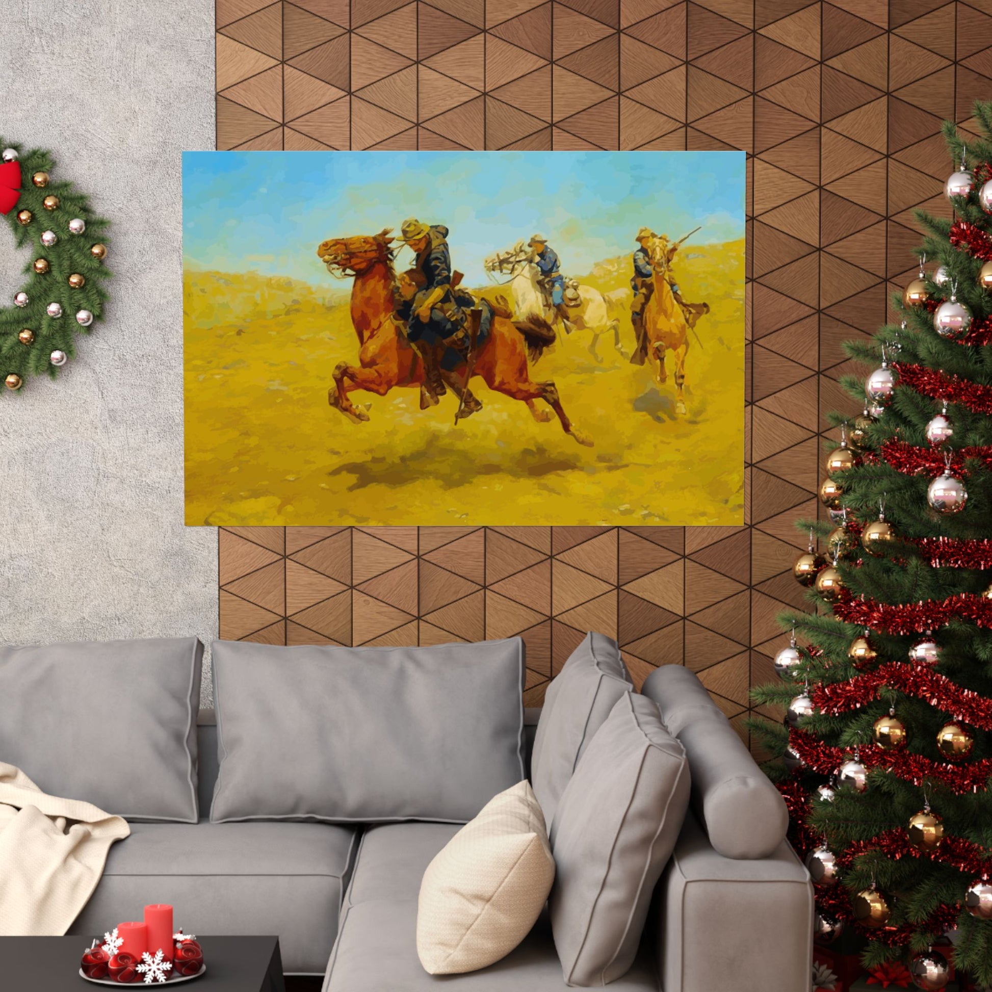 Add a little of bit of historical decoration with this Painting titled "My Bunkie" by Charles Schreyvogel depicting a U.S Cavalry unit. Perfect for history buffs, students, or anyone interested in American history. Ideal for decorating a home office, classroom, or study space.