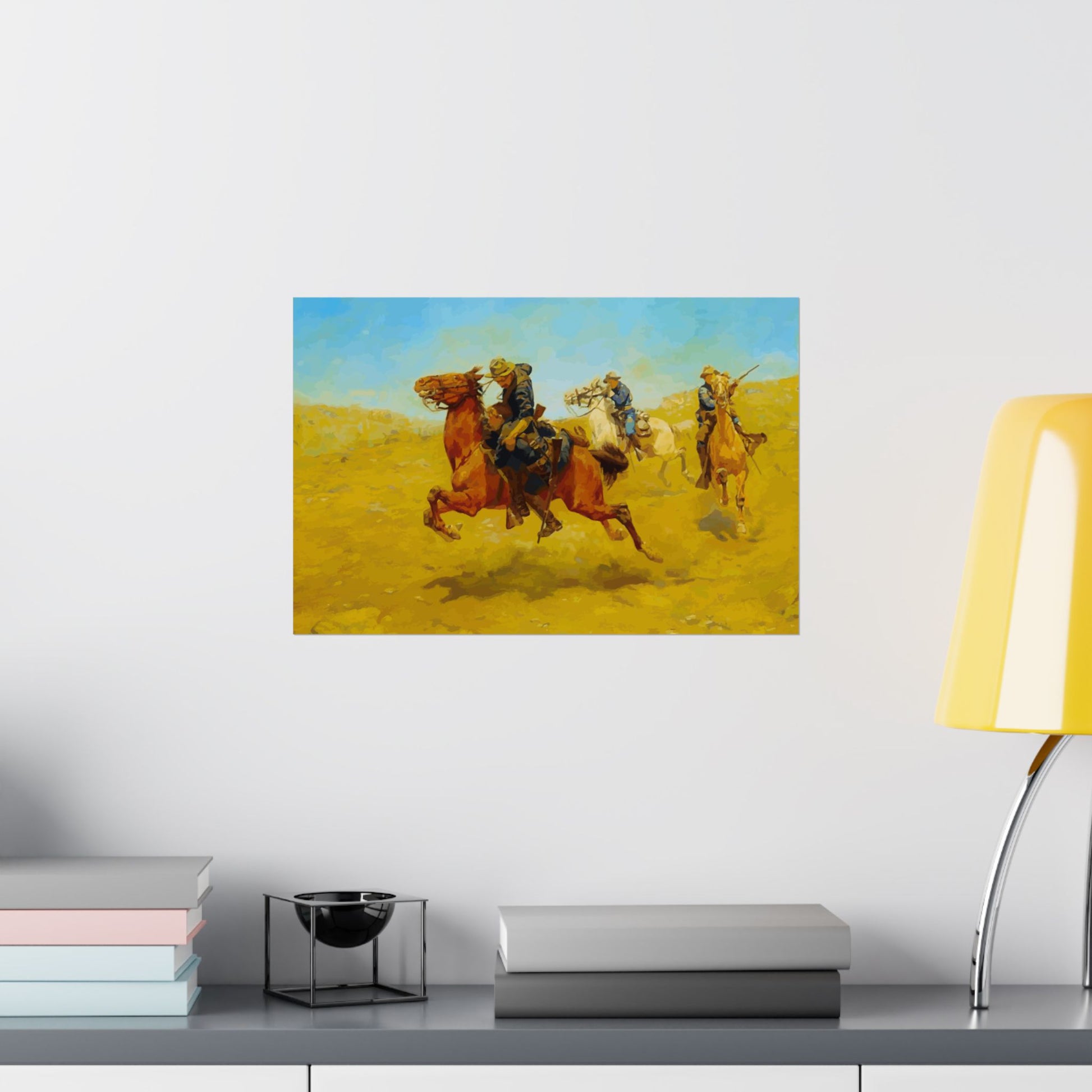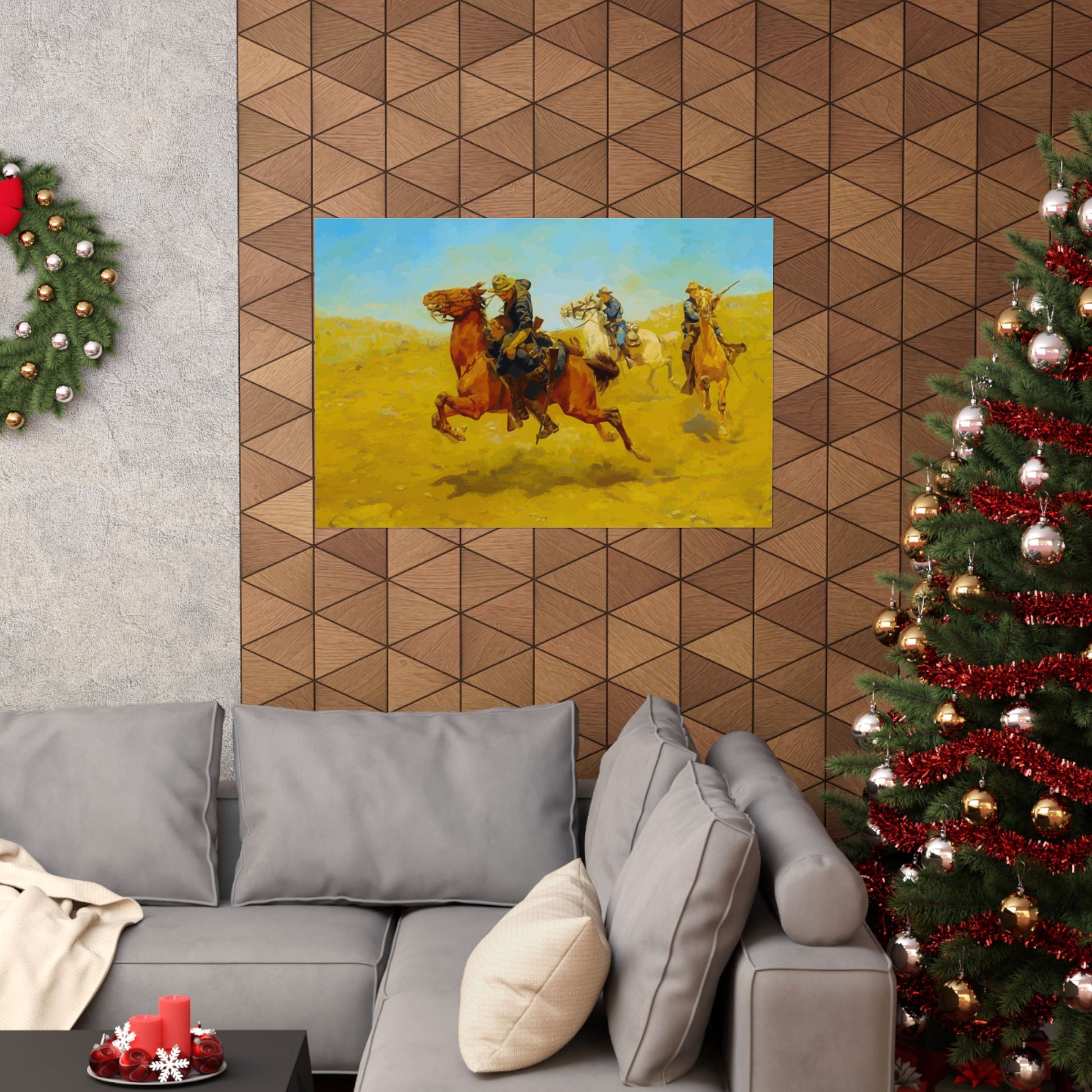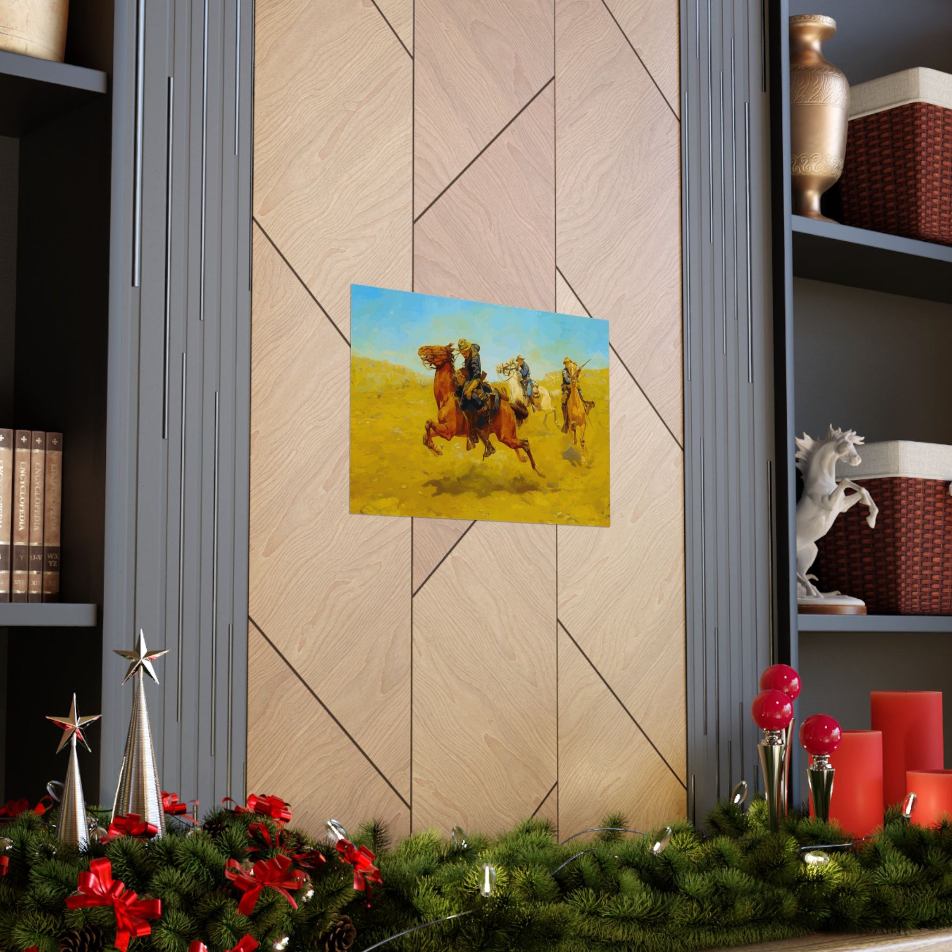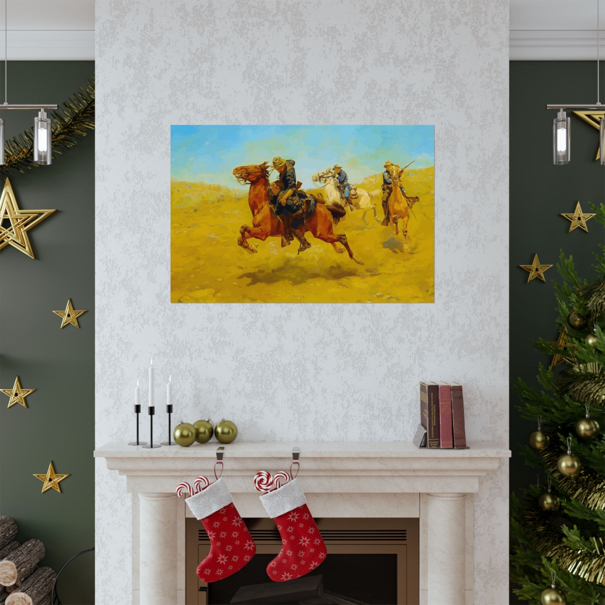 Add a little of bit of historical decoration with this Painting titled "My Bunkie" by Charles Schreyvogel depicting a U.S Cavalry unit. Perfect for history buffs, students, or anyone interested in American history. Ideal for decorating a home office, classroom, or study space.