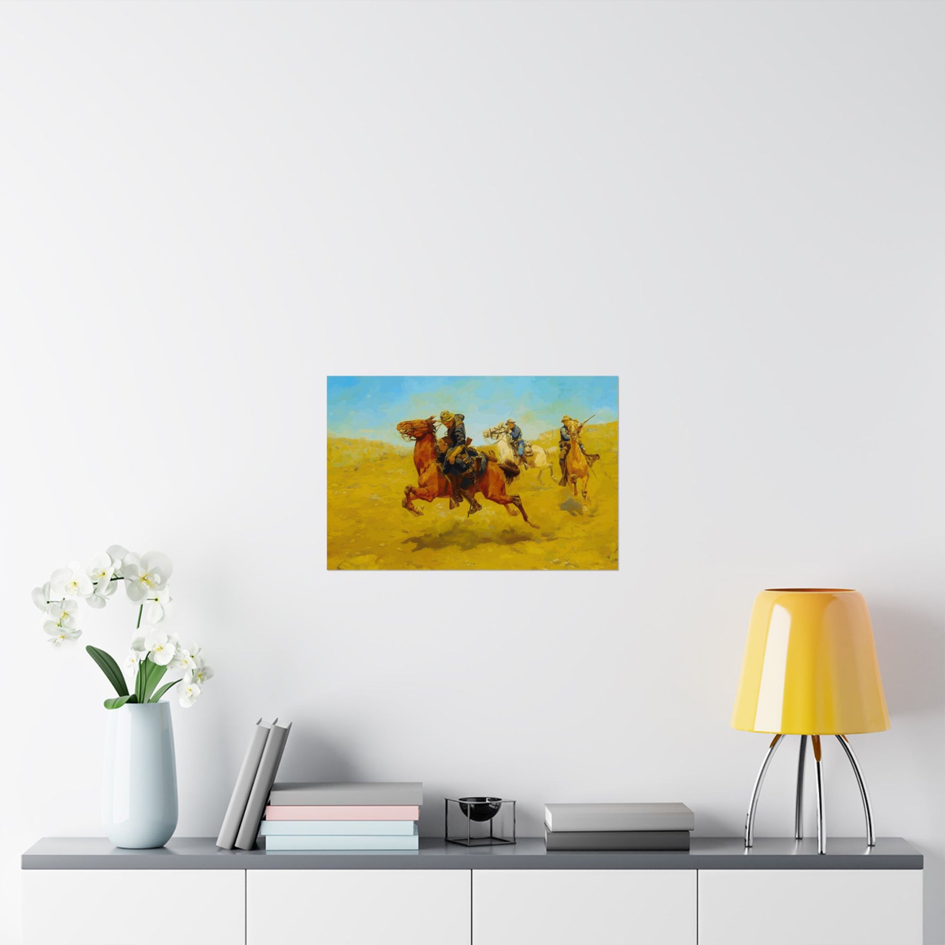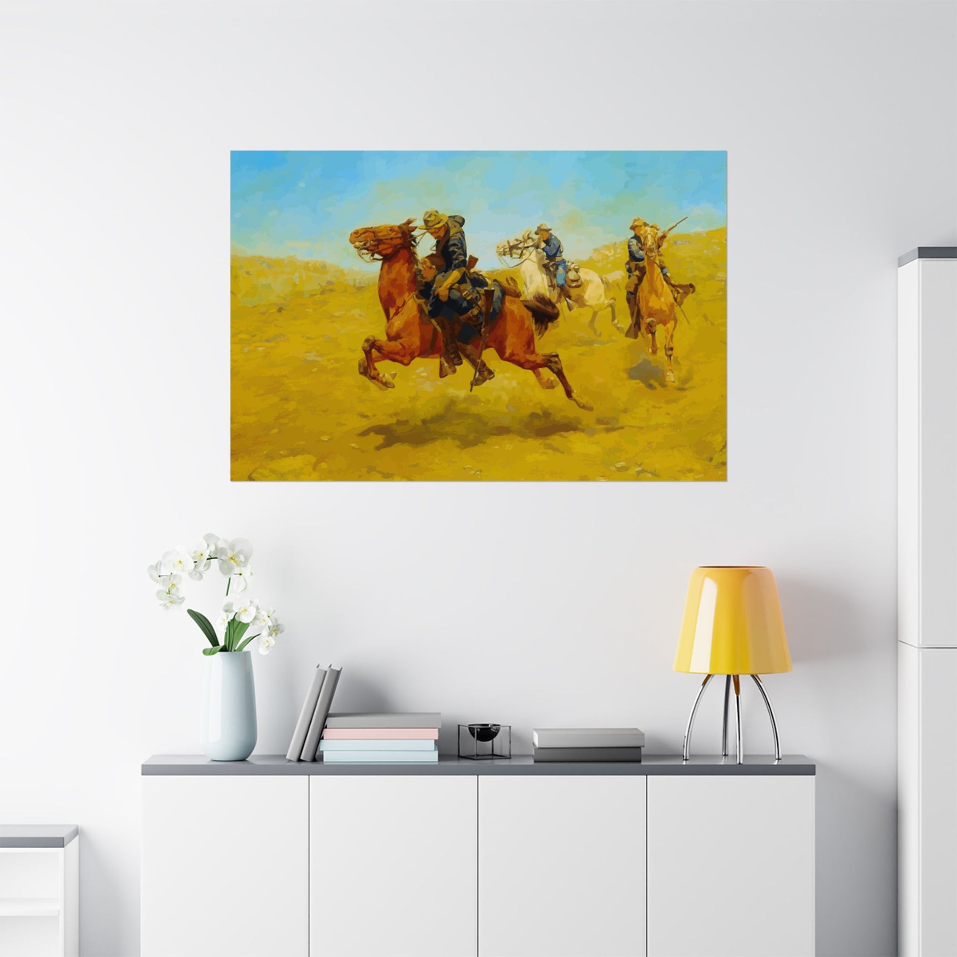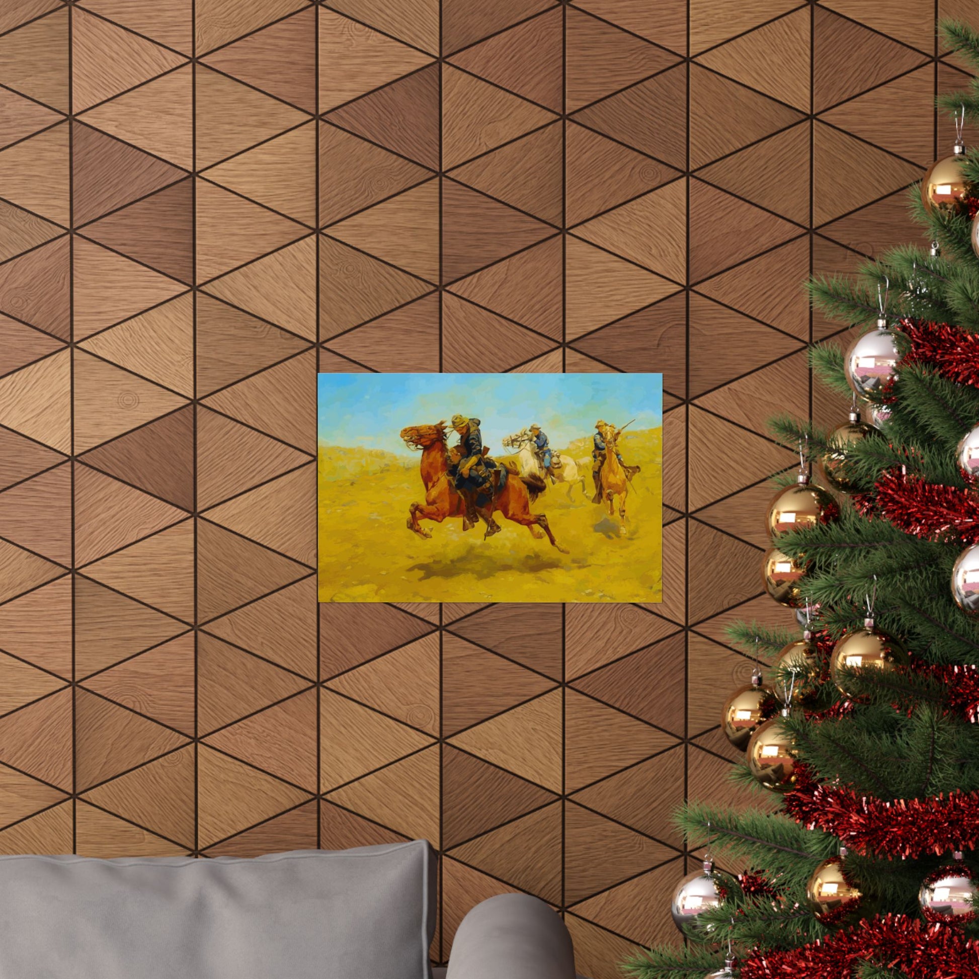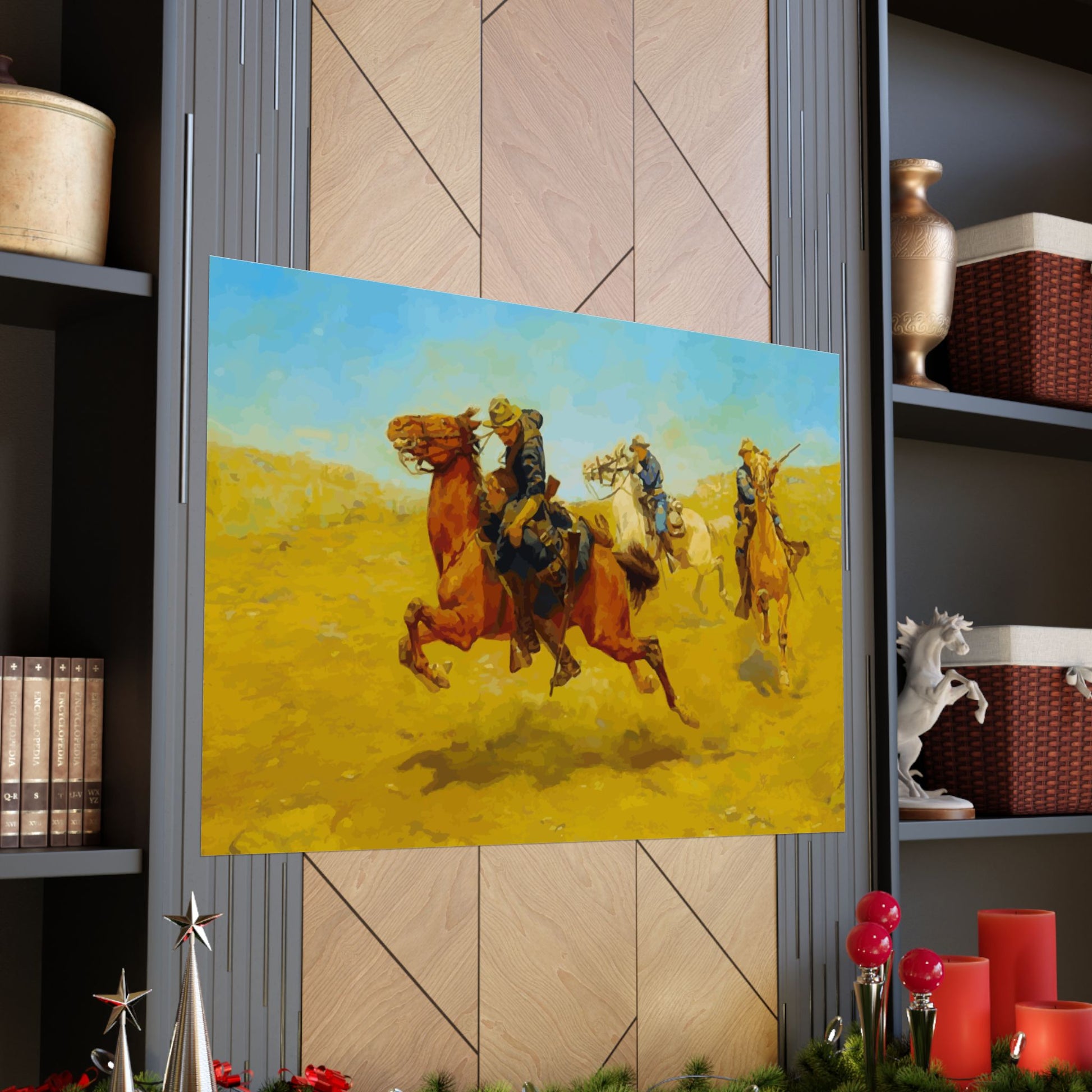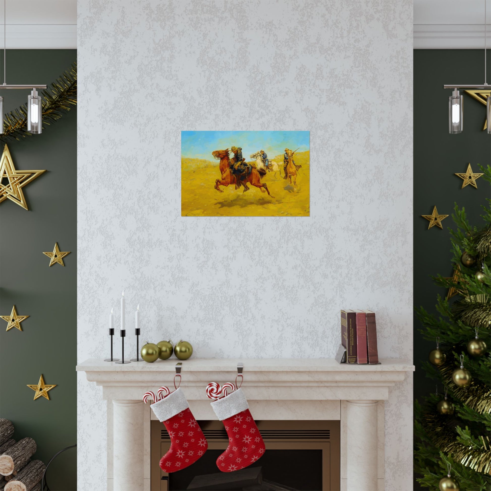 Add a little of bit of historical decoration with this Painting titled "My Bunkie" by Charles Schreyvogel depicting a U.S Cavalry unit. Perfect for history buffs, students, or anyone interested in American history. Ideal for decorating a home office, classroom, or study space.