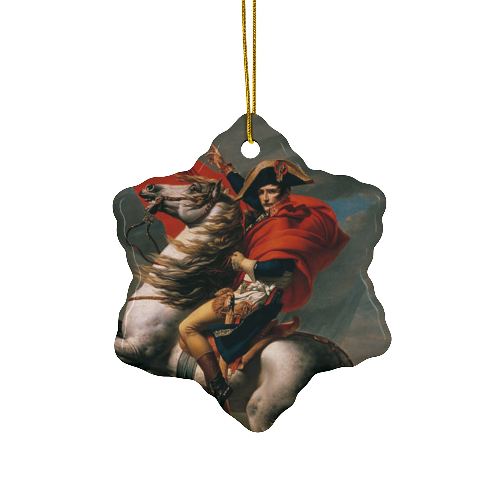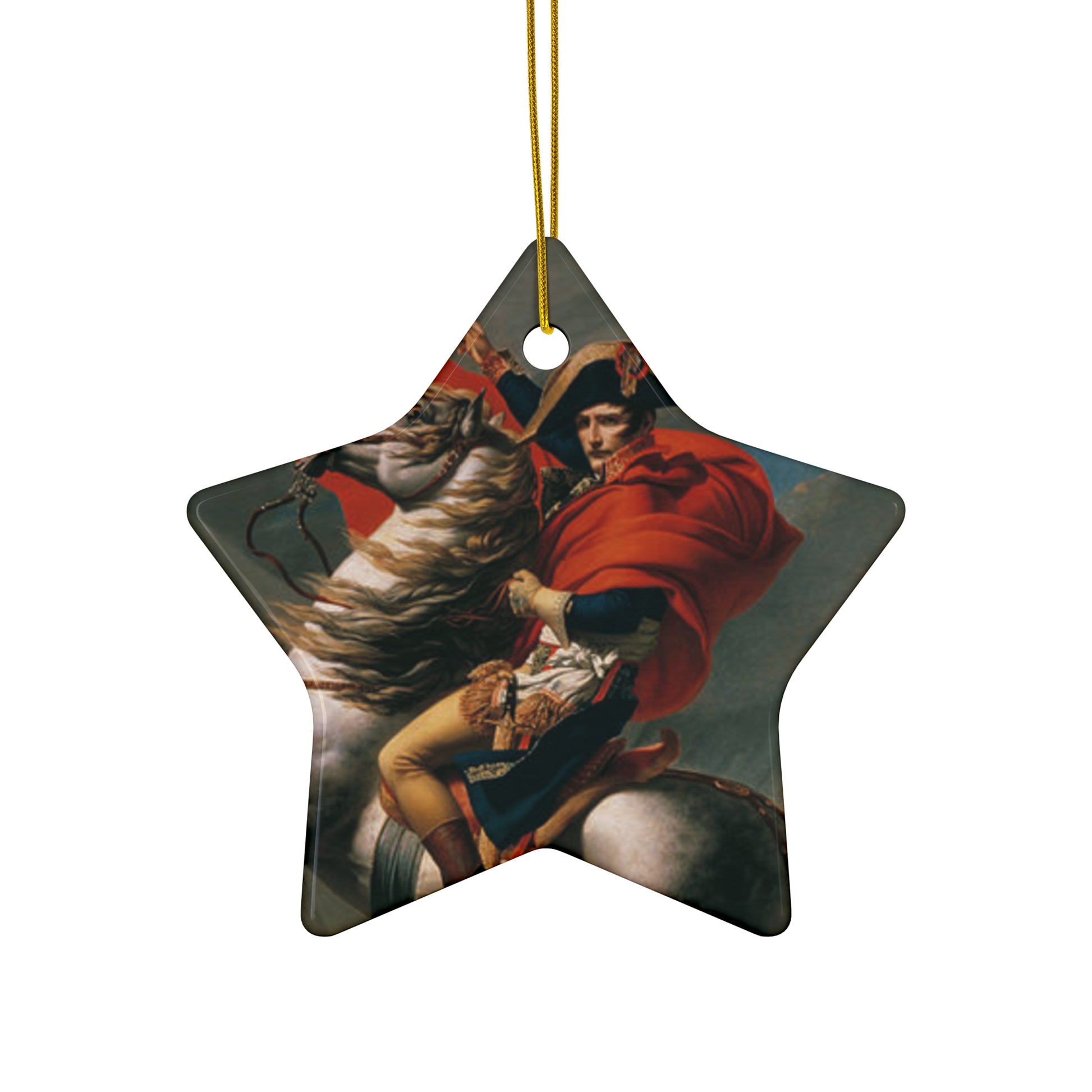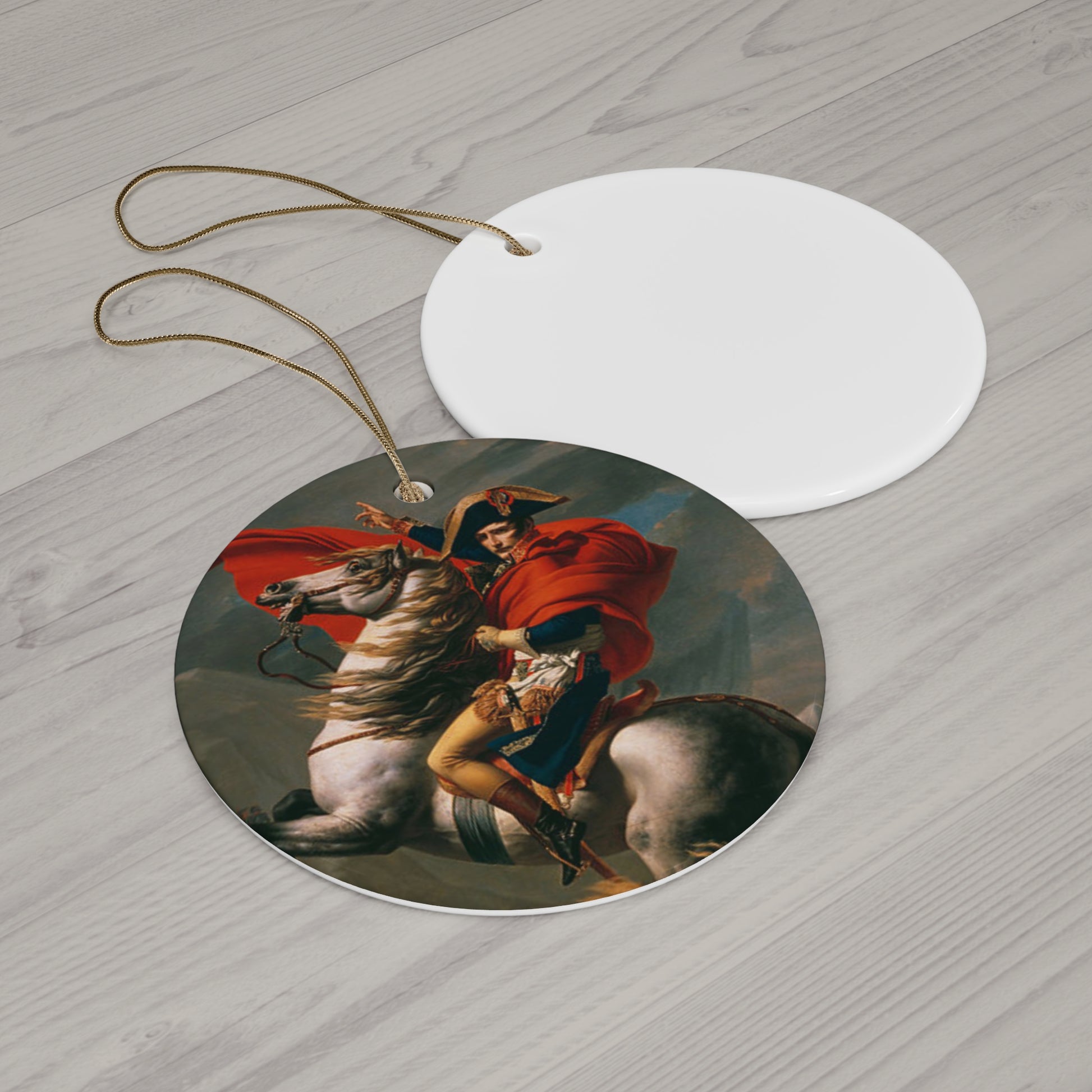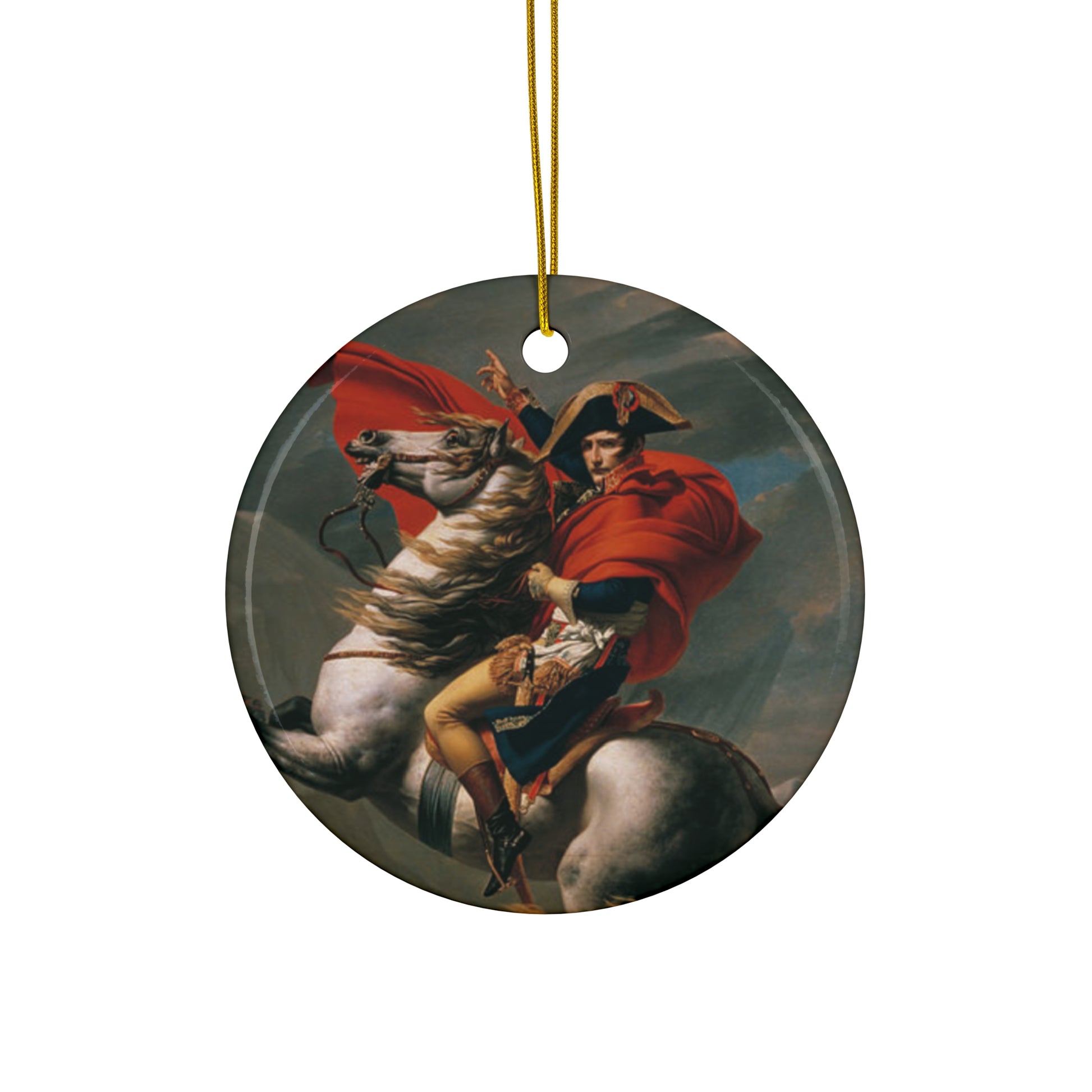 Add a bit of history to your home with our charming Napoleon Bonaparte Crossing the Alps Ceramic Ornament. Crafted from high-quality ceramic, these ornaments bring a touch of elegance and cheer to your home. With vibrant colors and a glossy finish, each piece captures attention and adds personality to your  decor.