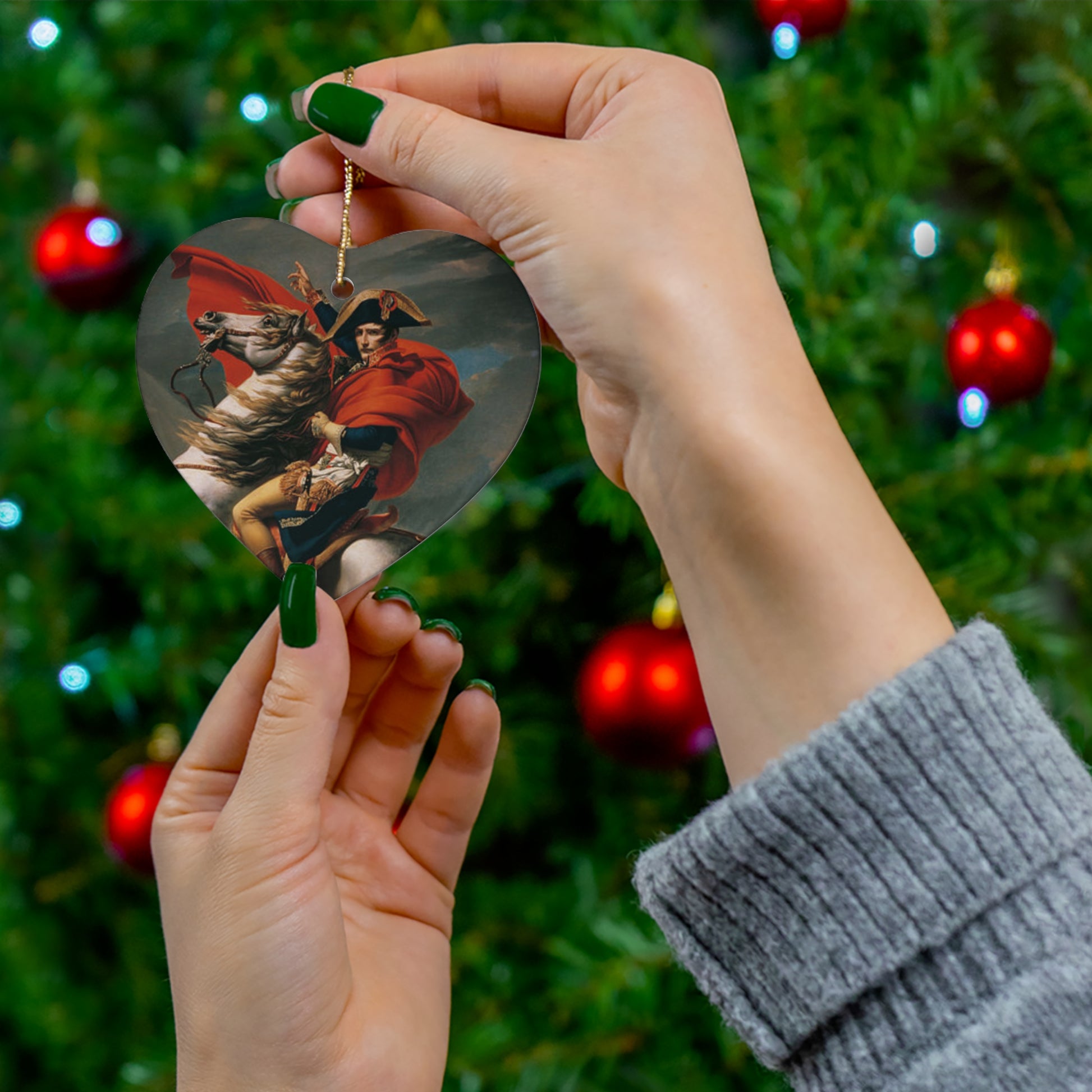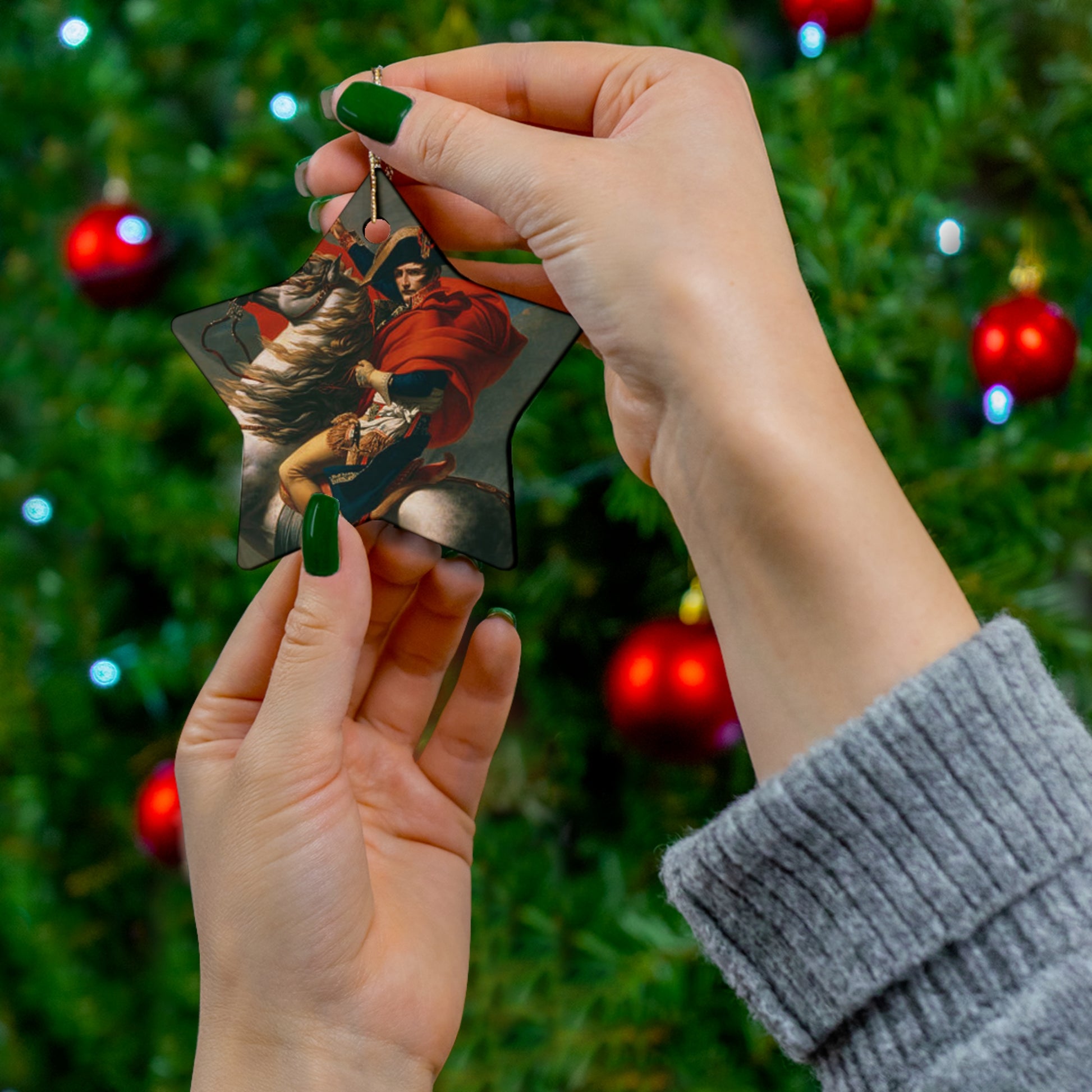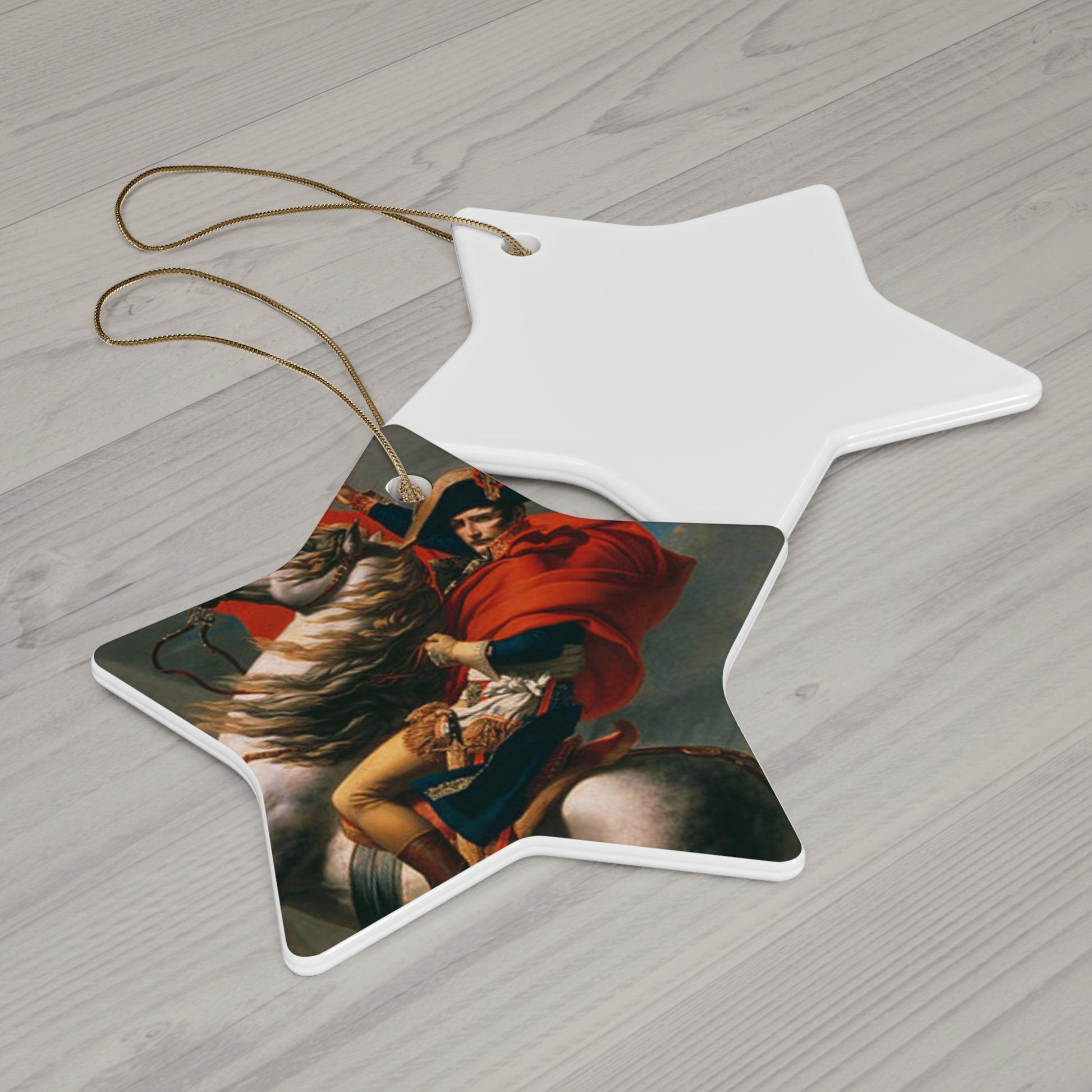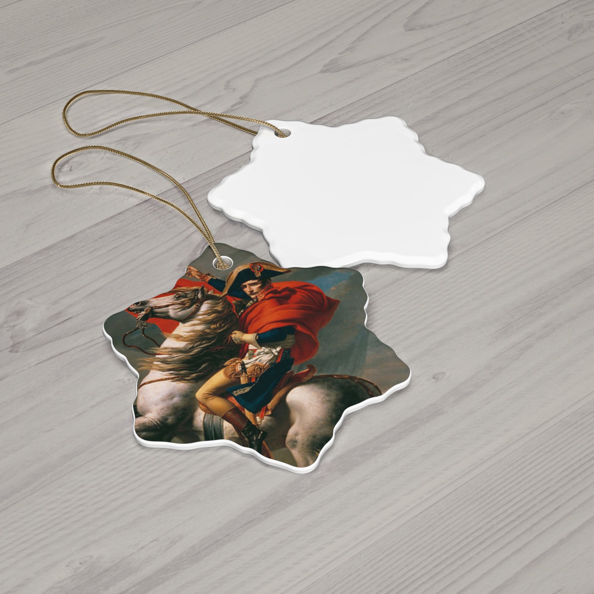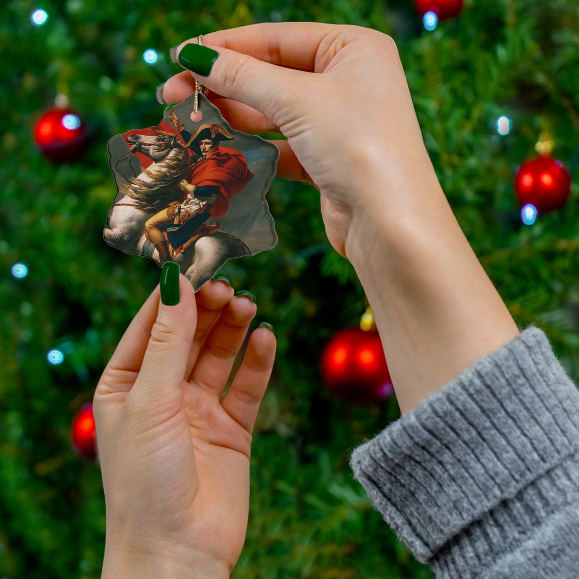 Add a bit of history to your home with our charming Napoleon Bonaparte Crossing the Alps Ceramic Ornament. Crafted from high-quality ceramic, these ornaments bring a touch of elegance and cheer to your home. With vibrant colors and a glossy finish, each piece captures attention and adds personality to your  decor.