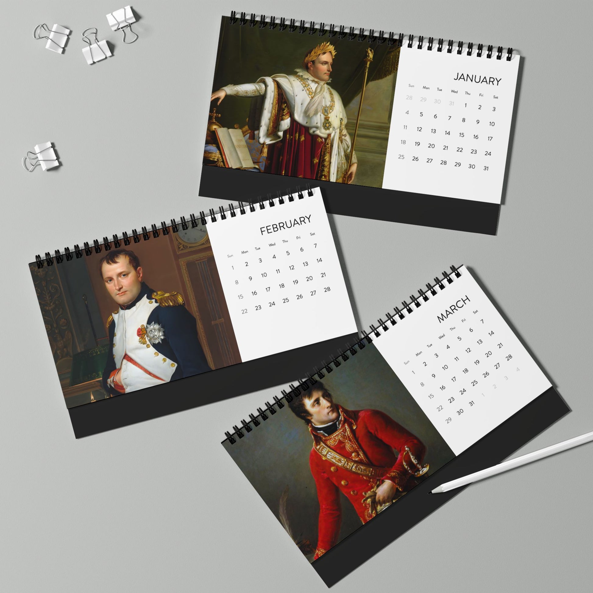 Add a little bit of Napoleon Bonaparte History to your year with this 2026 historic Napoleon Calendar. Each month showcases a historical portrait painting of Napoleon Bonaparte. More than just a date-keeping tool, this calendar showcases some of the most amazing European paintings, which are listed below.