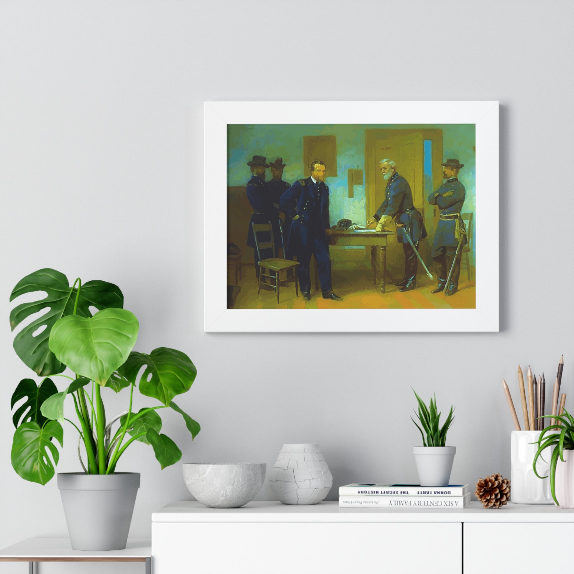 Robert E. Lee Surrenders at Appomattox to General Grant Framed Painting Poster