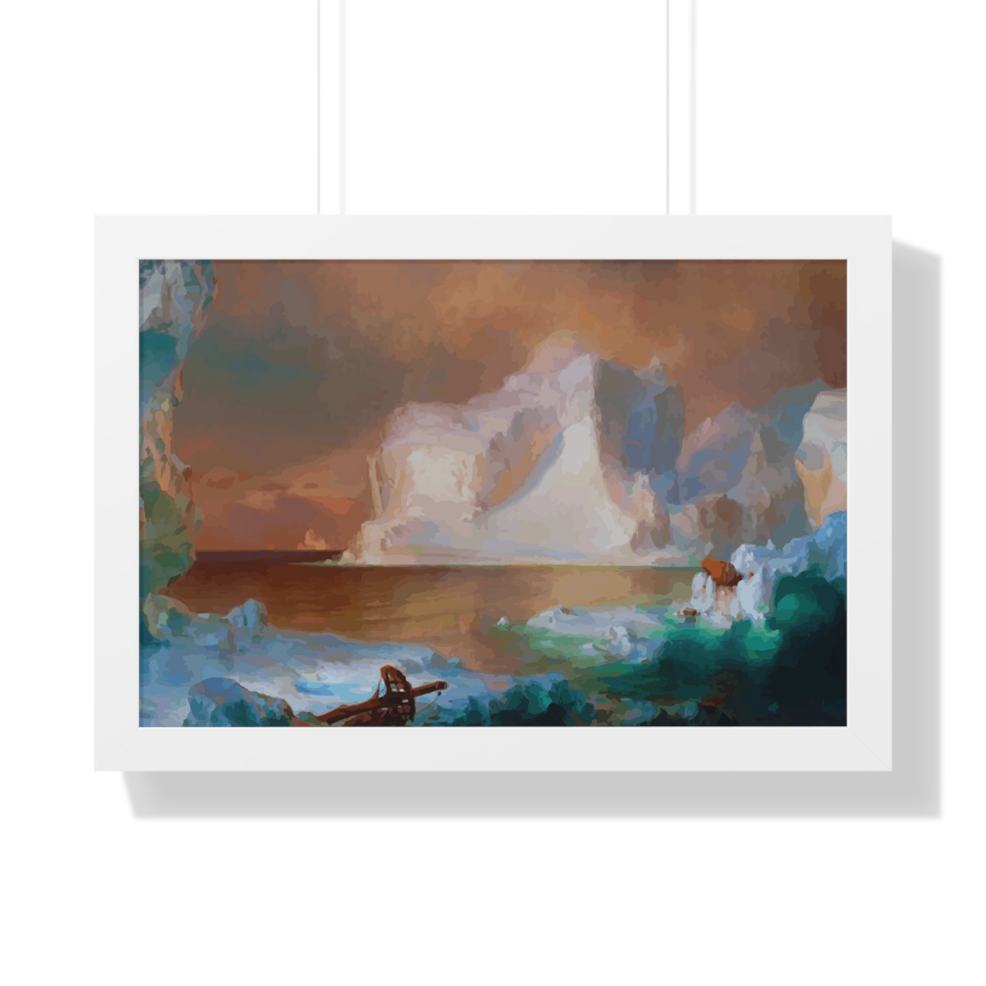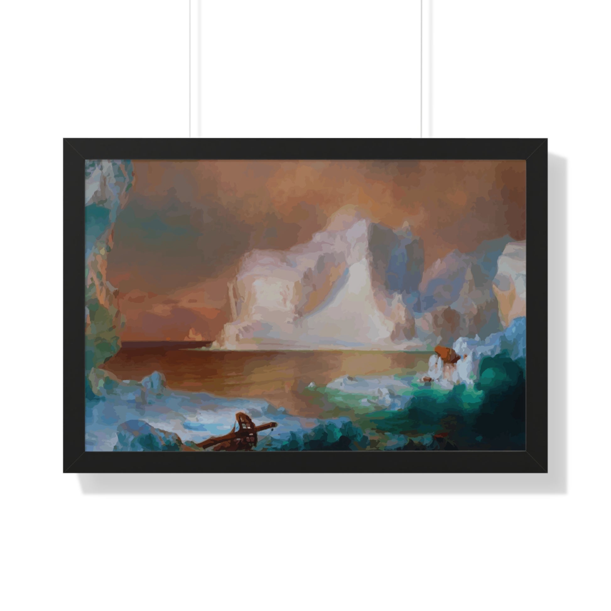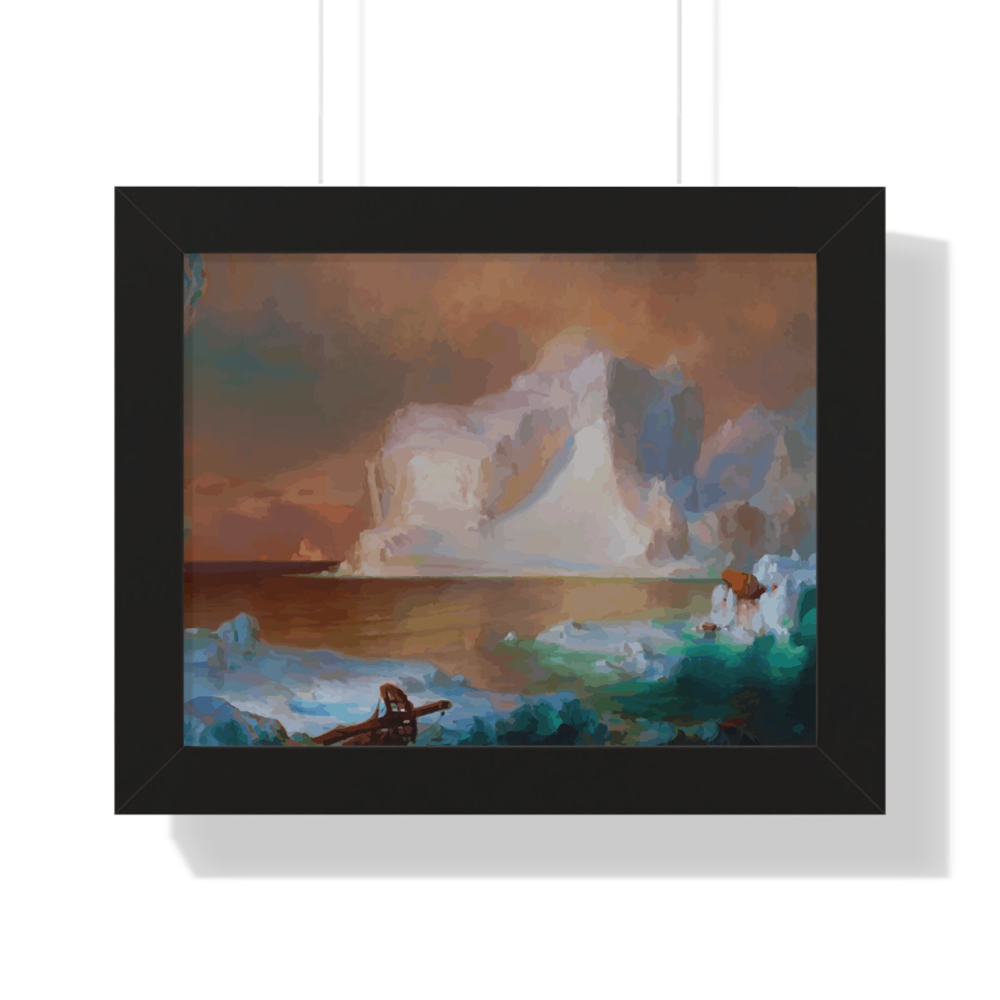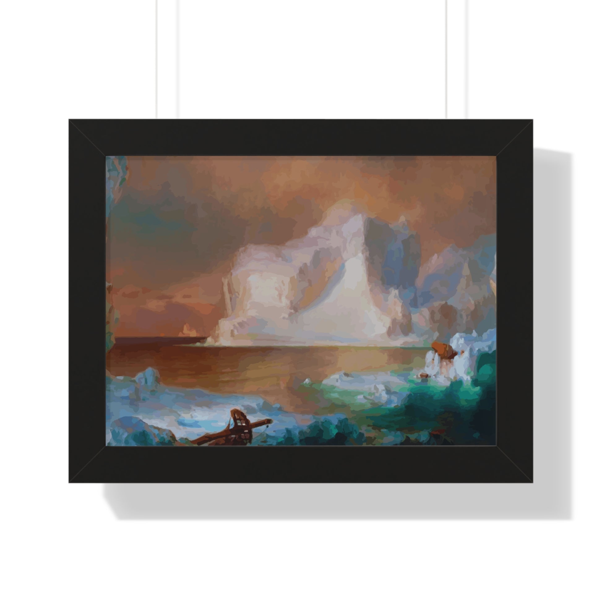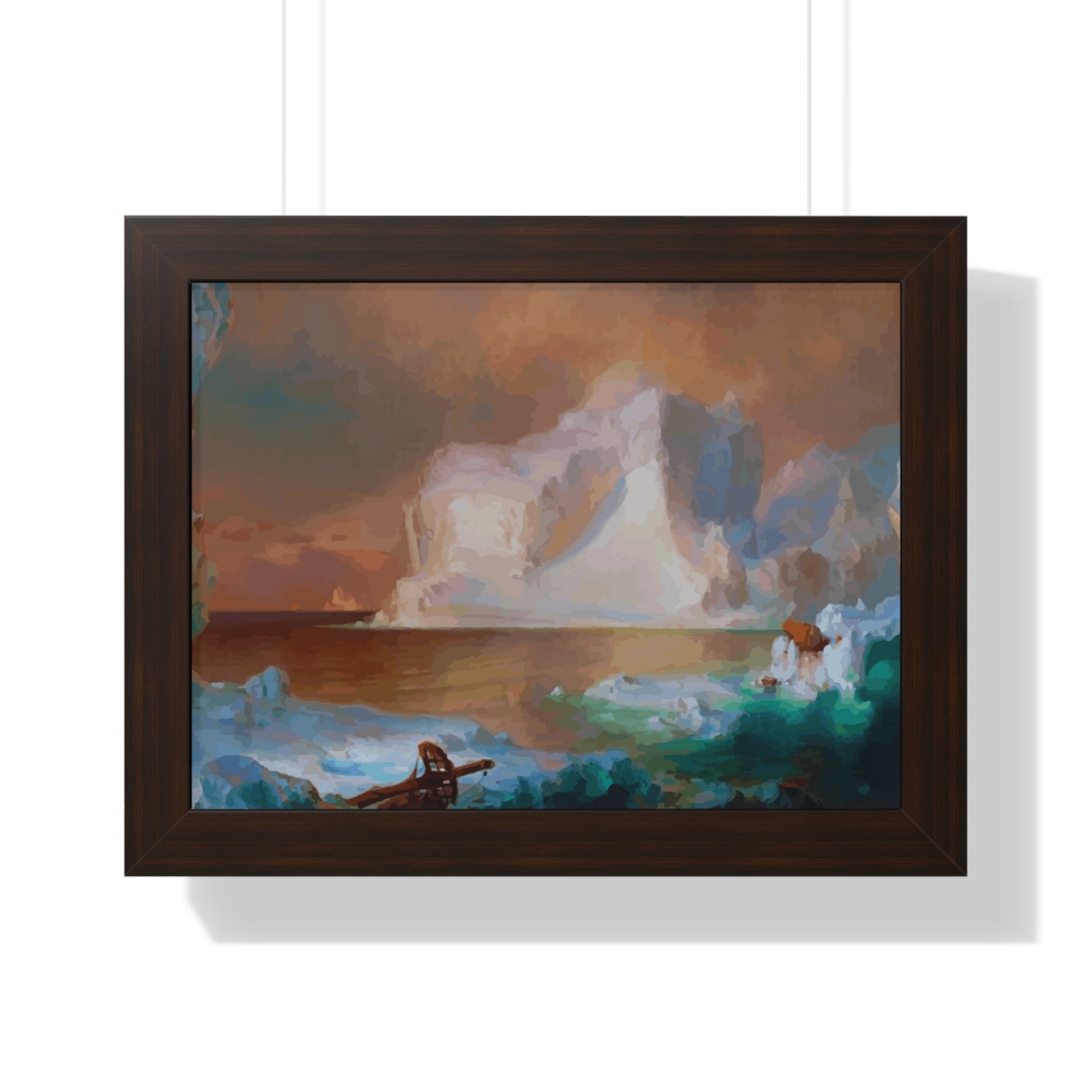Elevate your wall decor with our Premium Framed Historical Painting titled "The Icebergs", painted by American painter Frederic Edwin Church in 1861. Available in three sophisticated colors: black, white, and walnut.