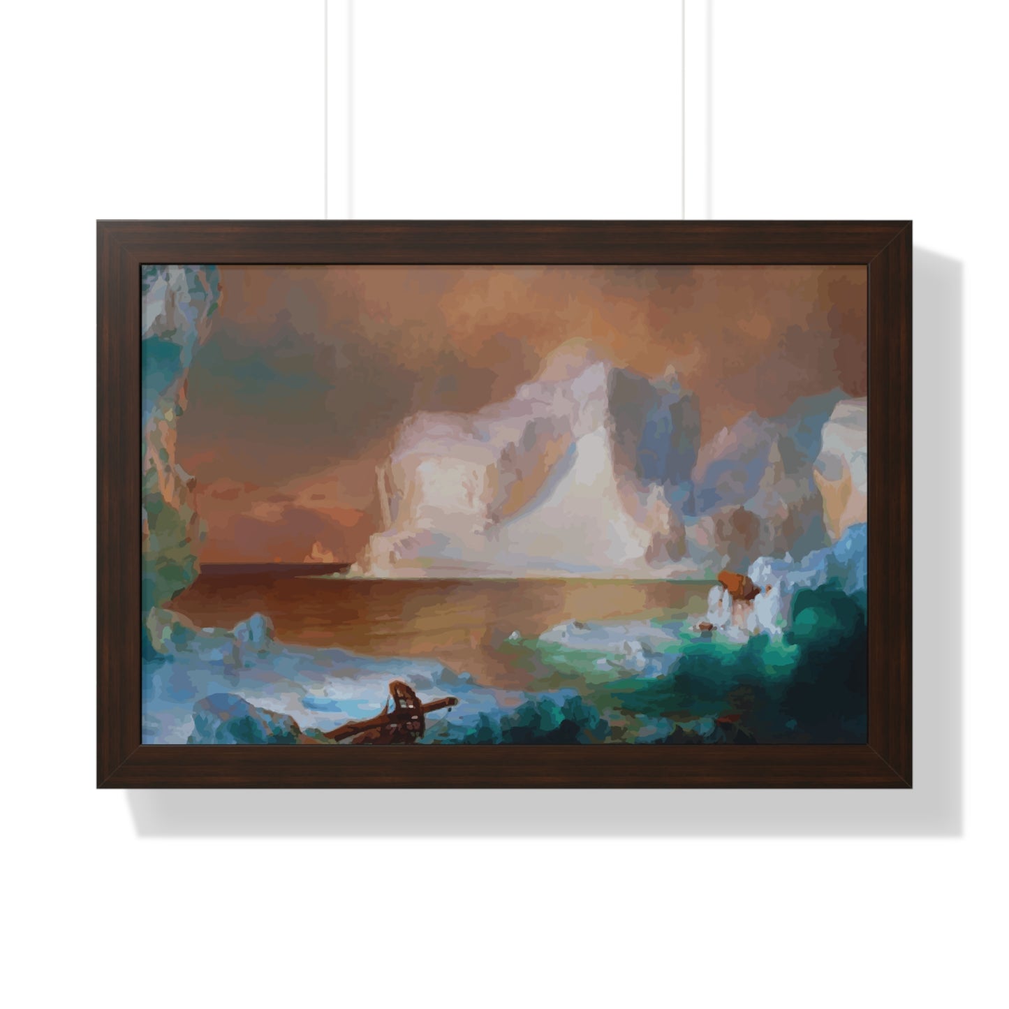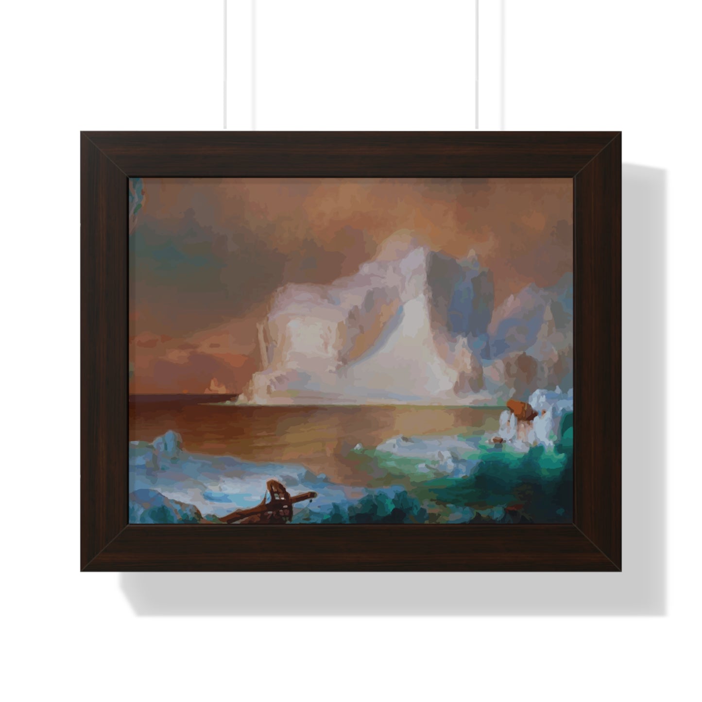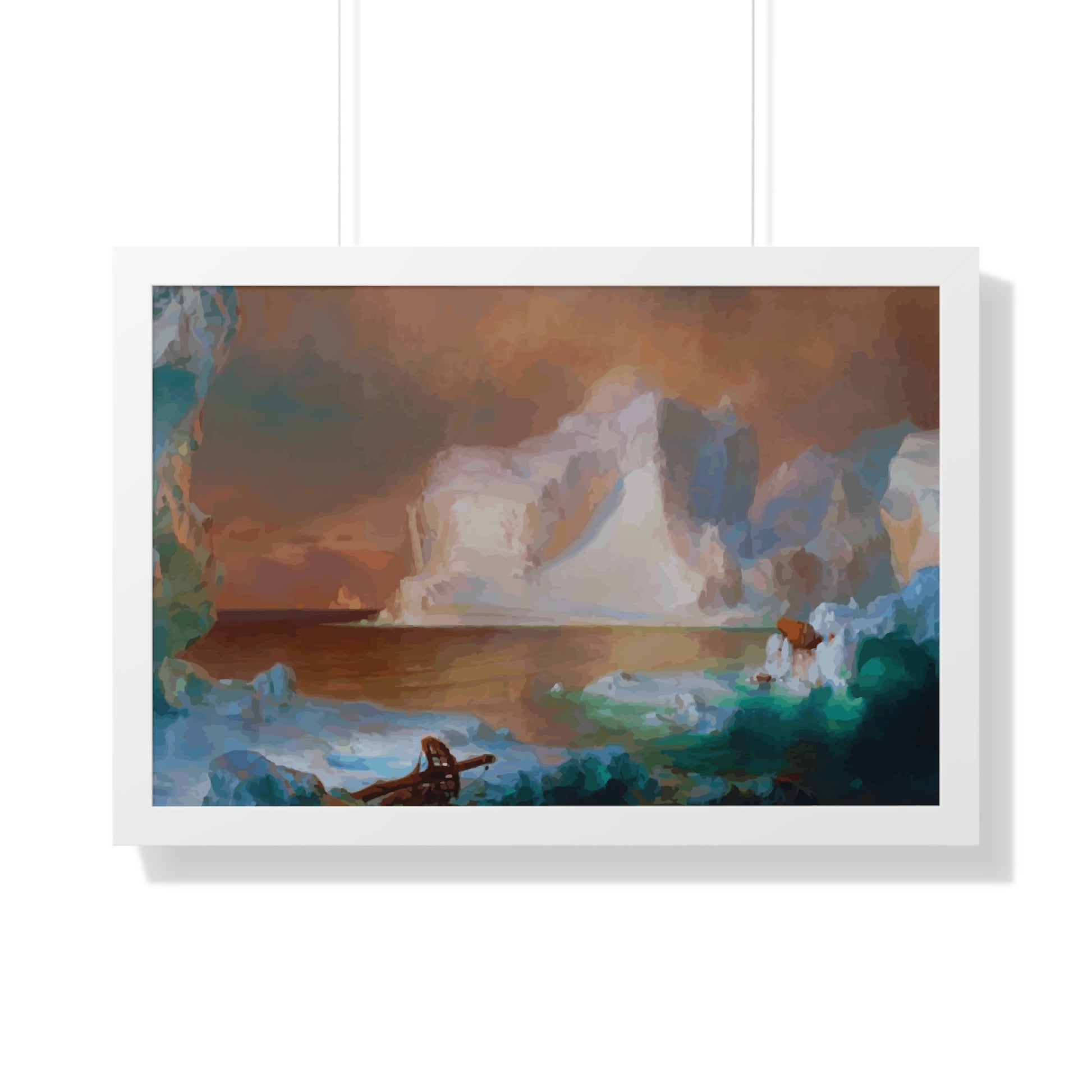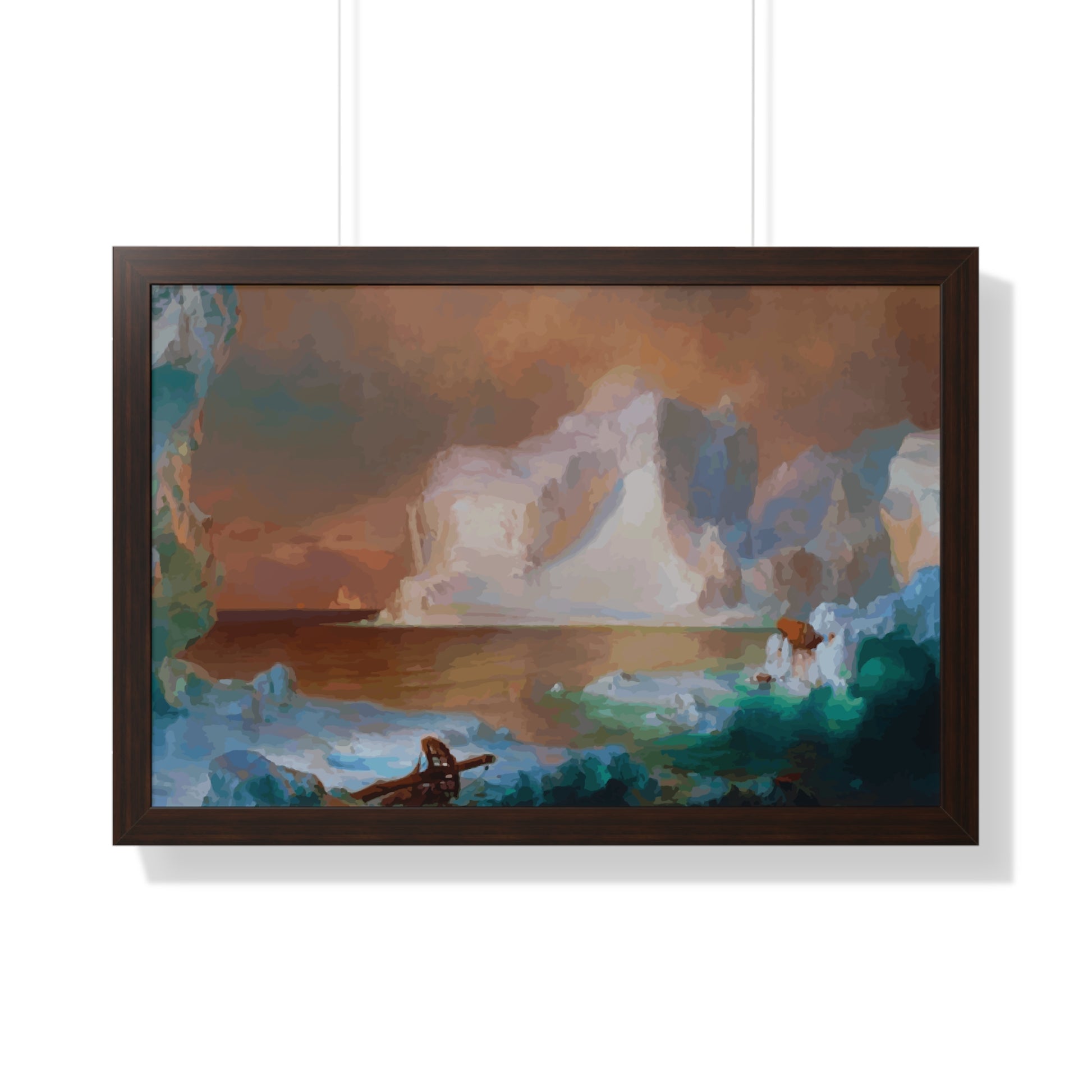Elevate your wall decor with our Premium Framed Historical Painting titled "The Icebergs", painted by American painter Frederic Edwin Church in 1861. Available in three sophisticated colors: black, white, and walnut.