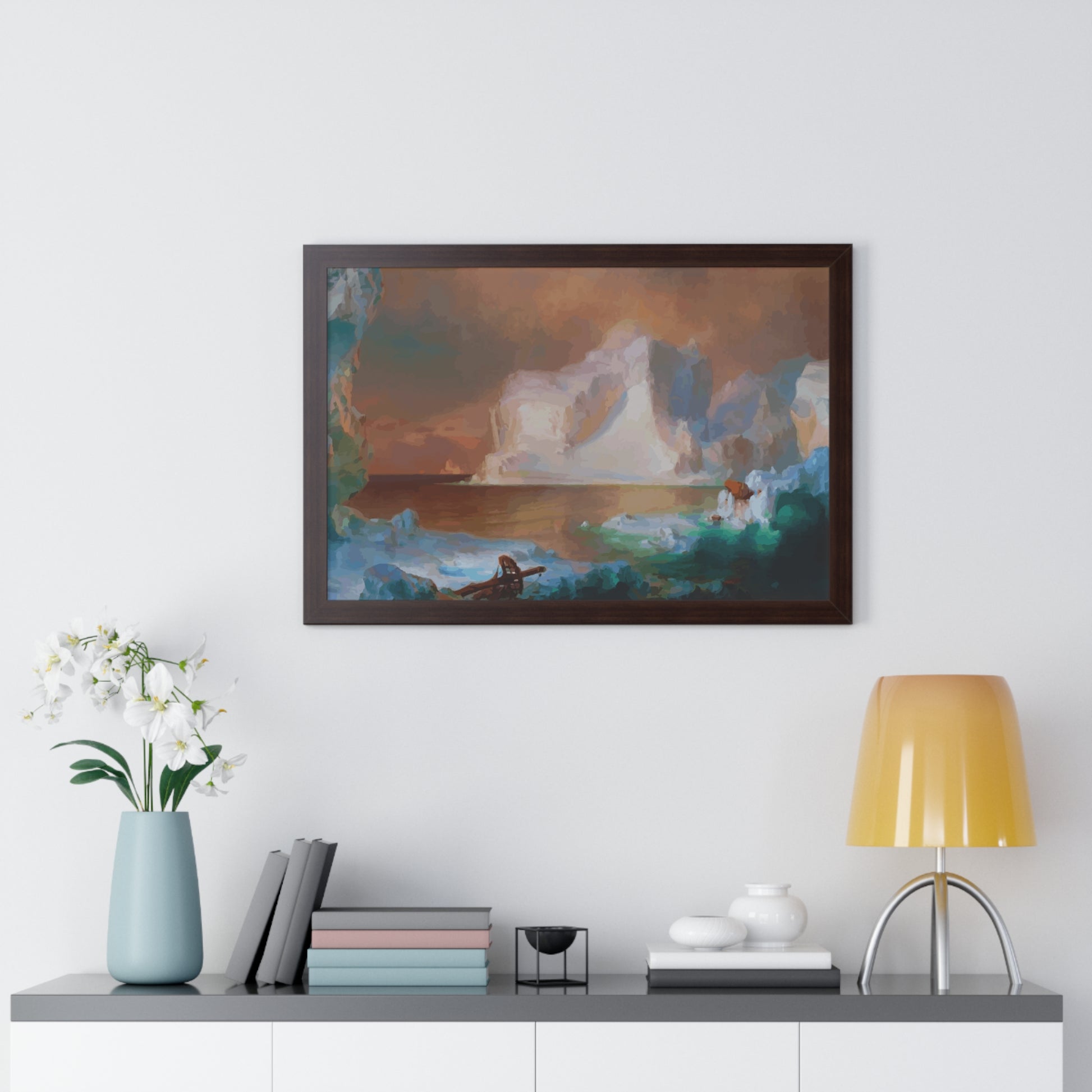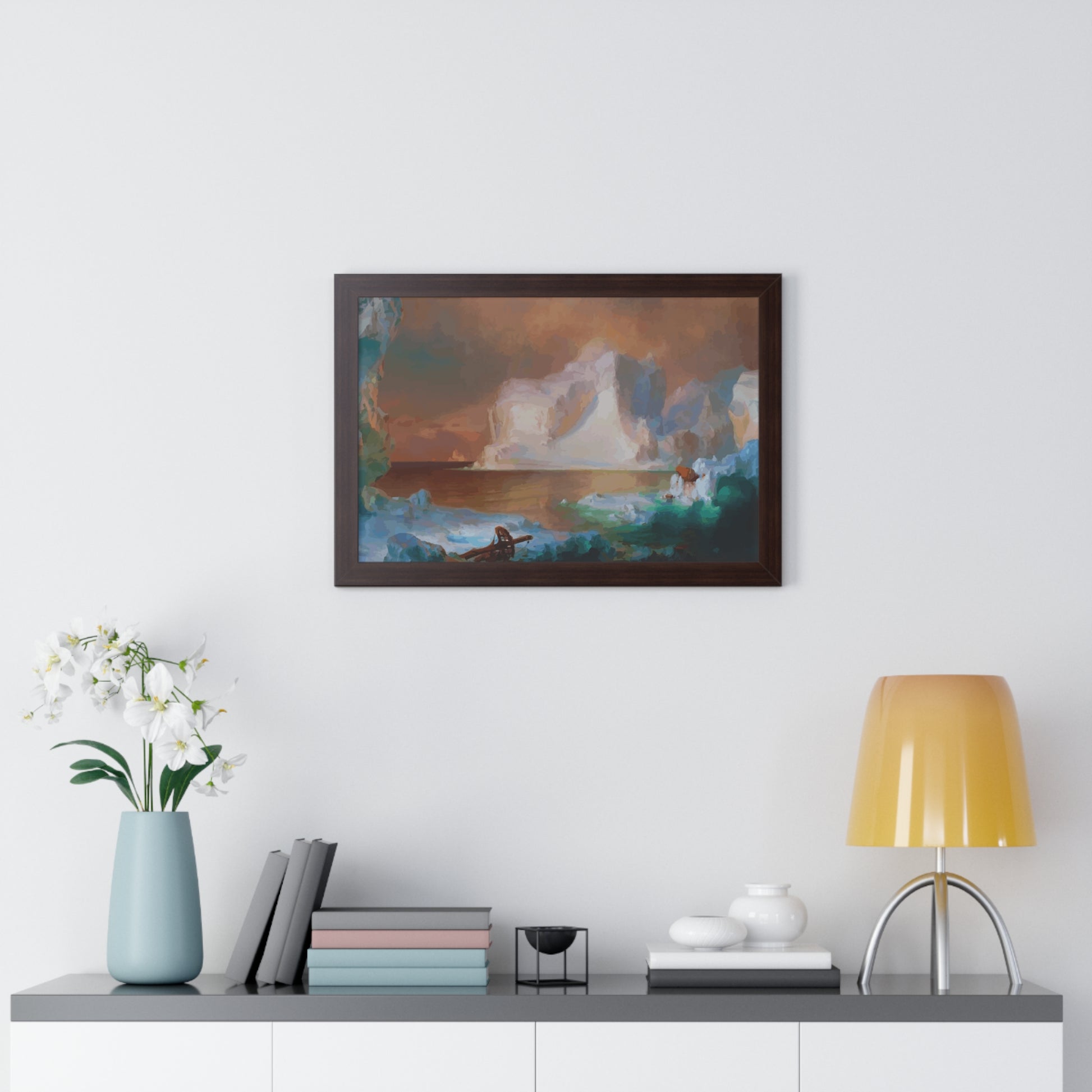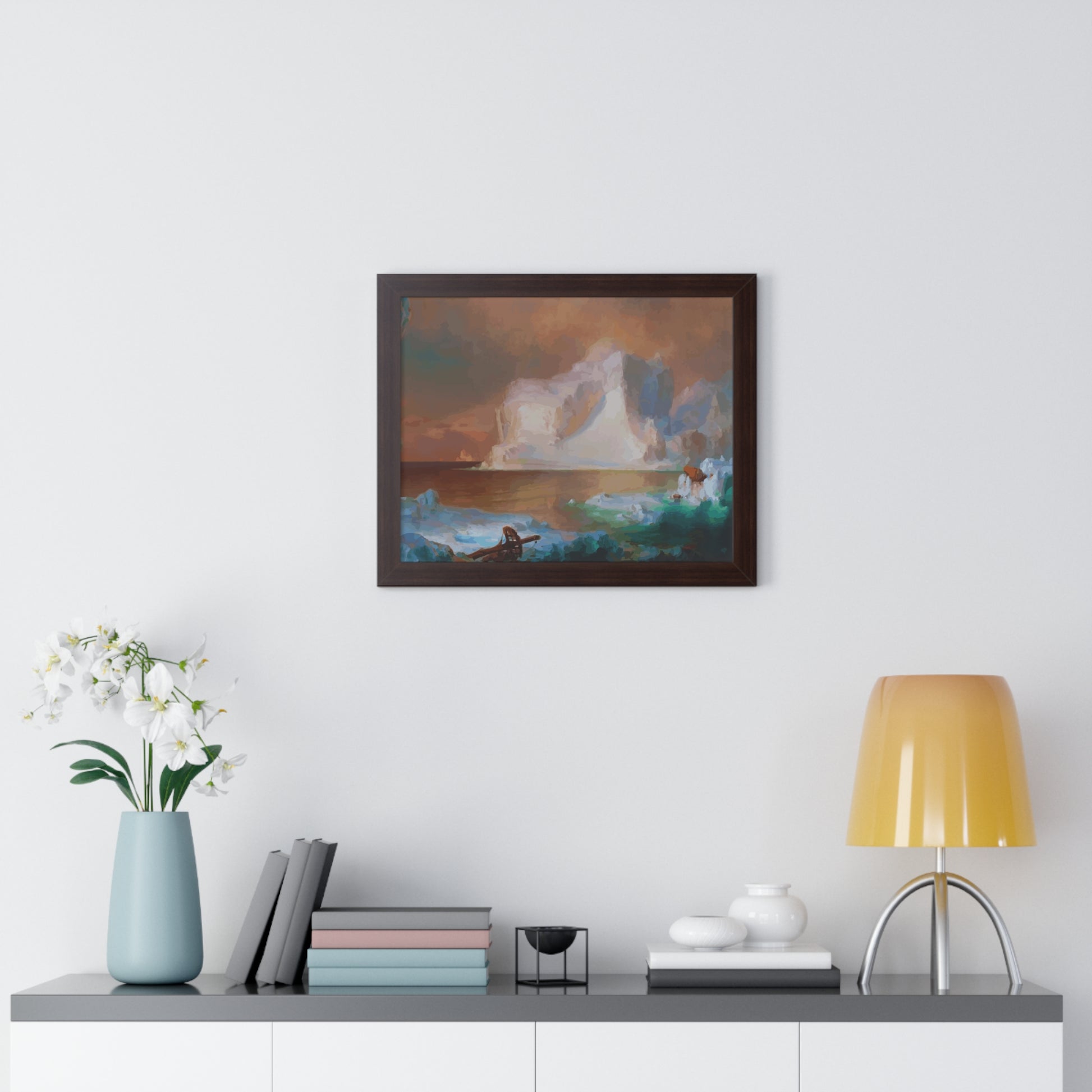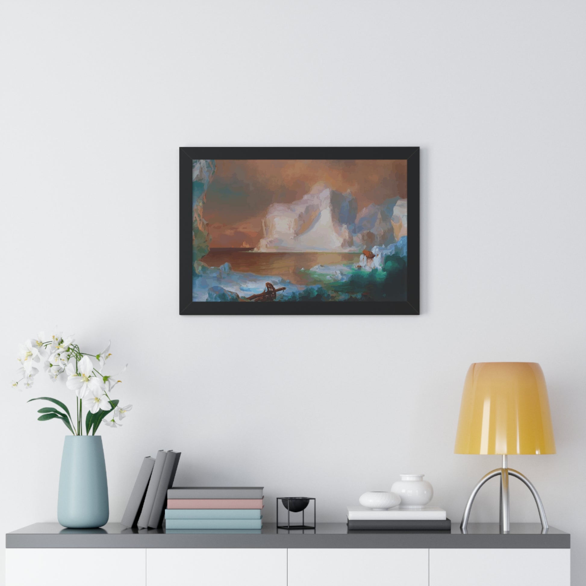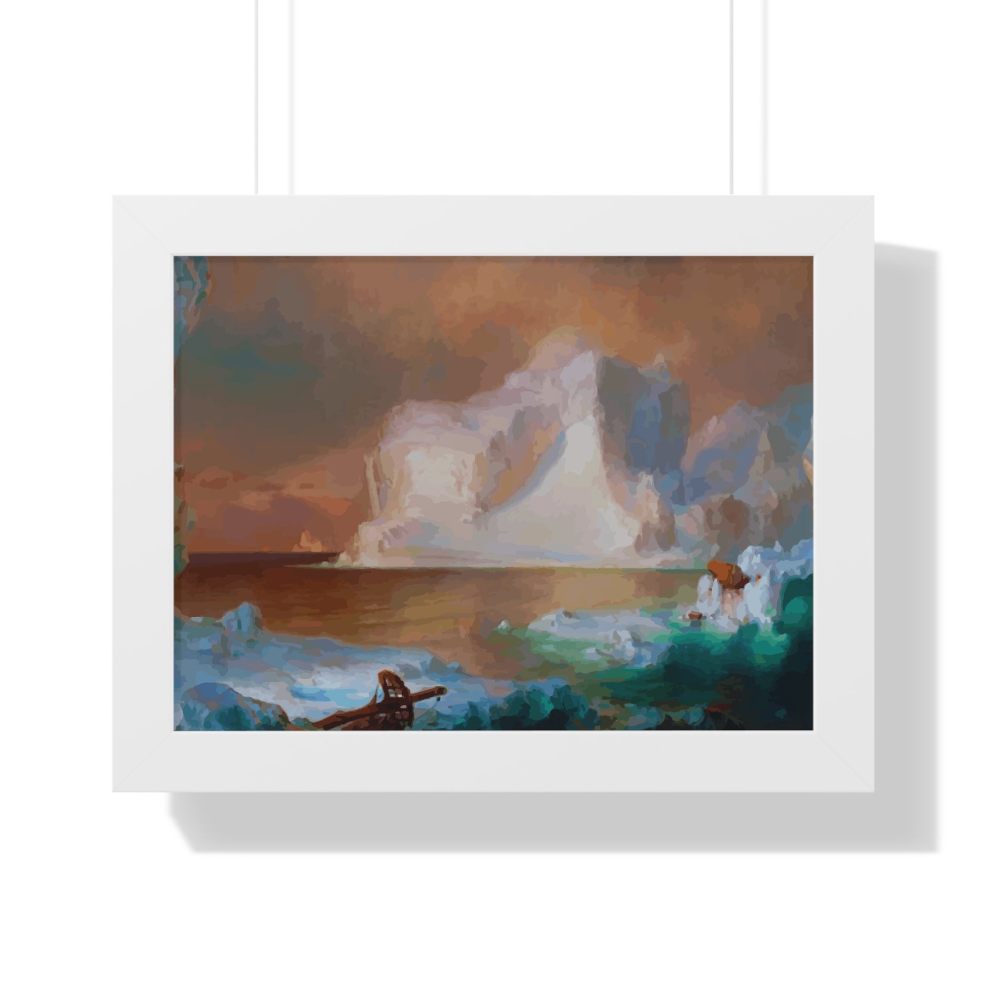 Elevate your wall decor with our Premium Framed Historical Painting titled "The Icebergs", painted by American painter Frederic Edwin Church in 1861. Available in three sophisticated colors: black, white, and walnut.