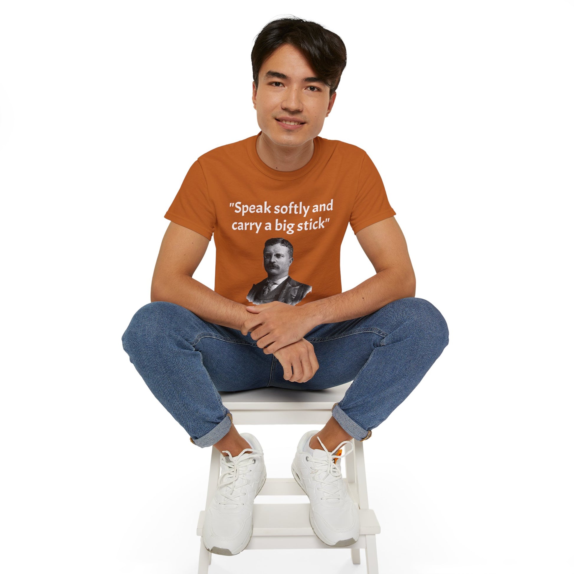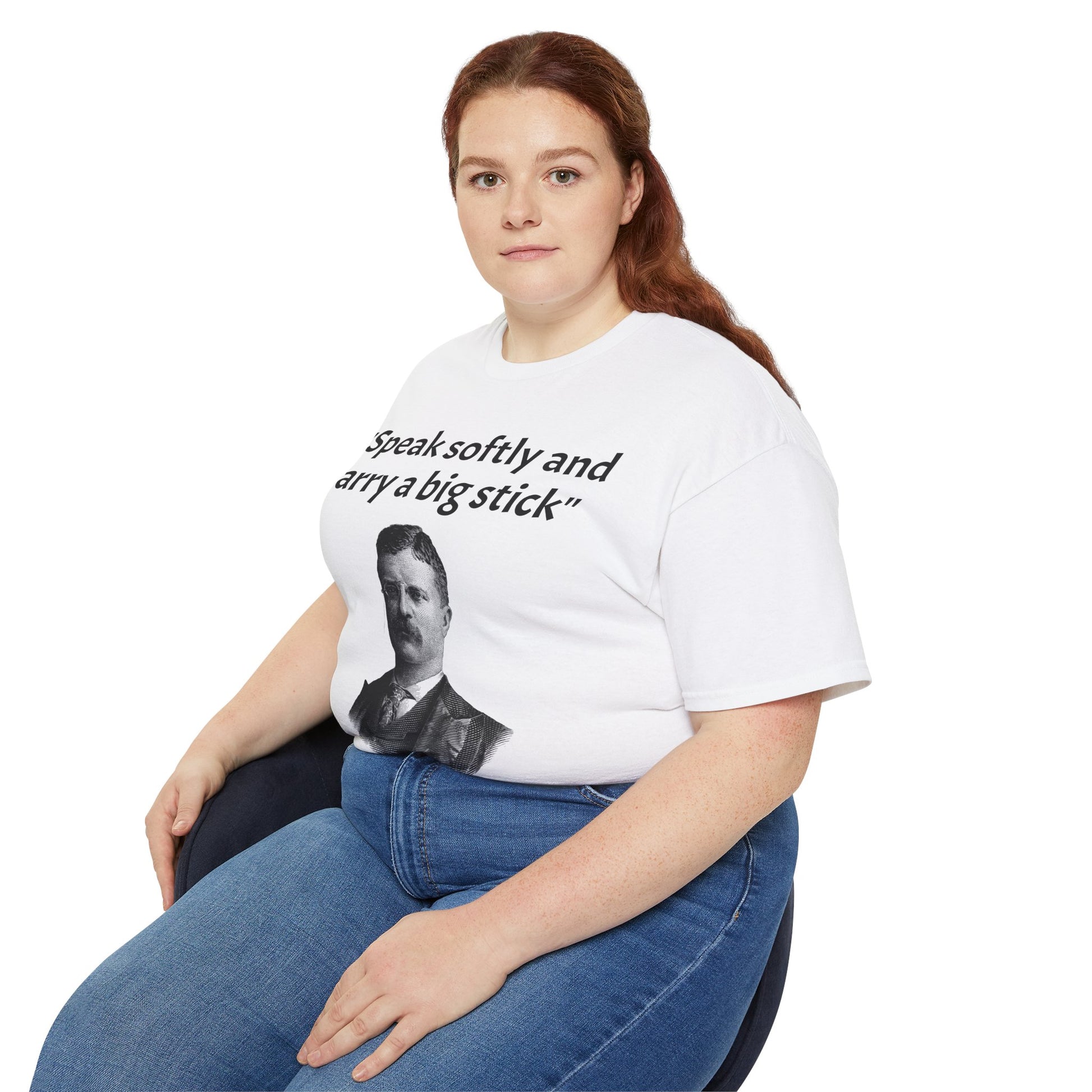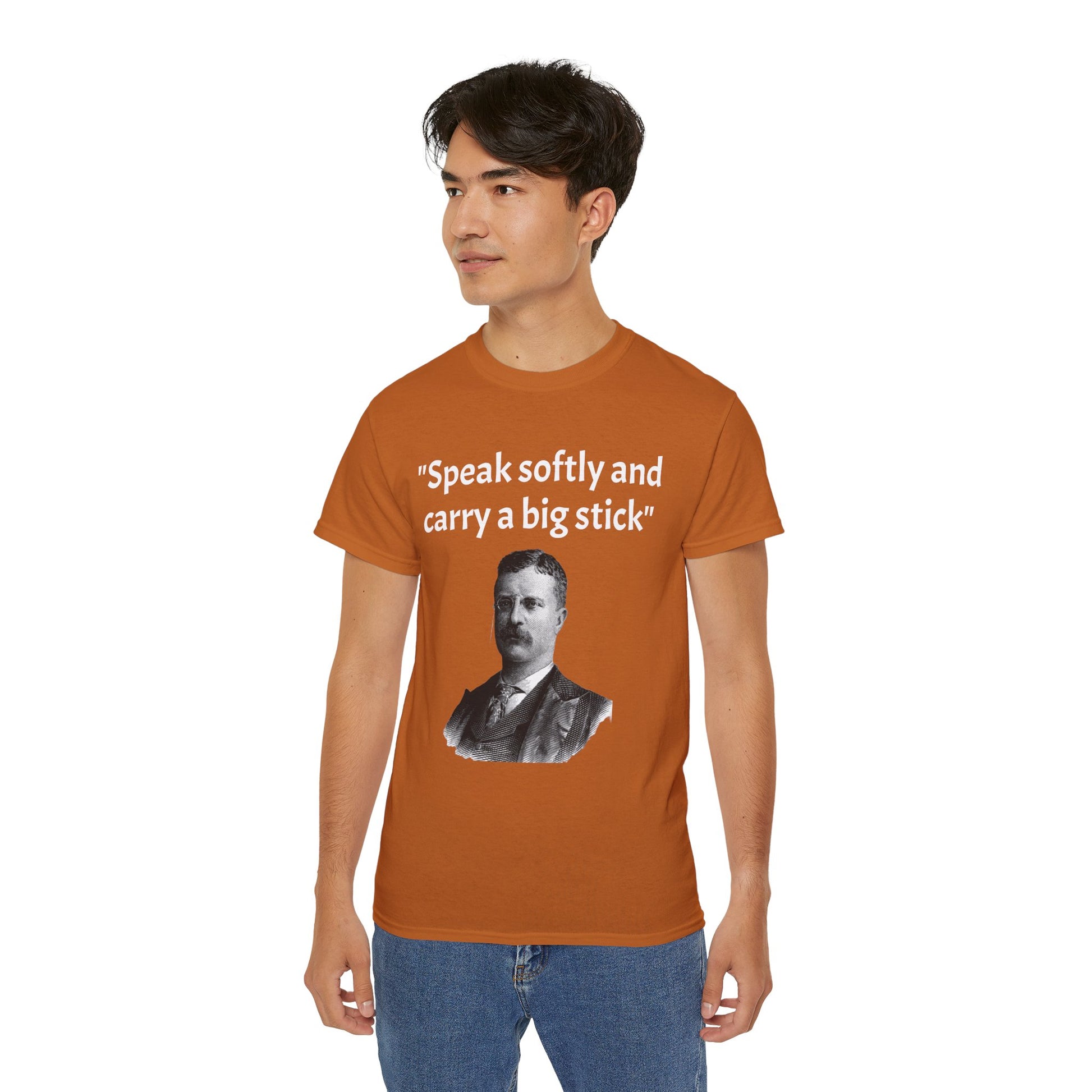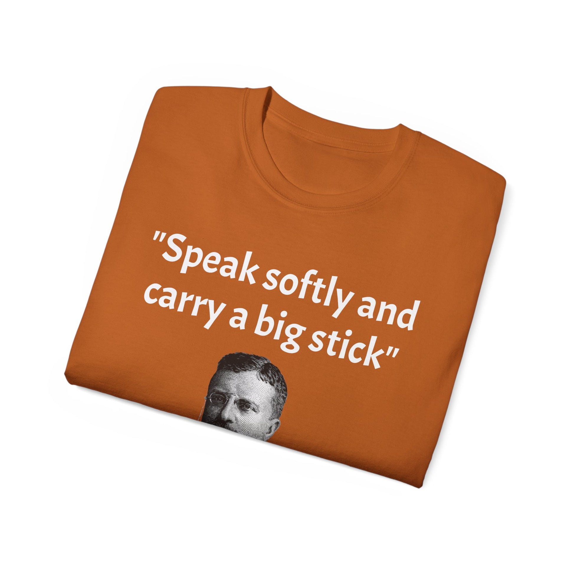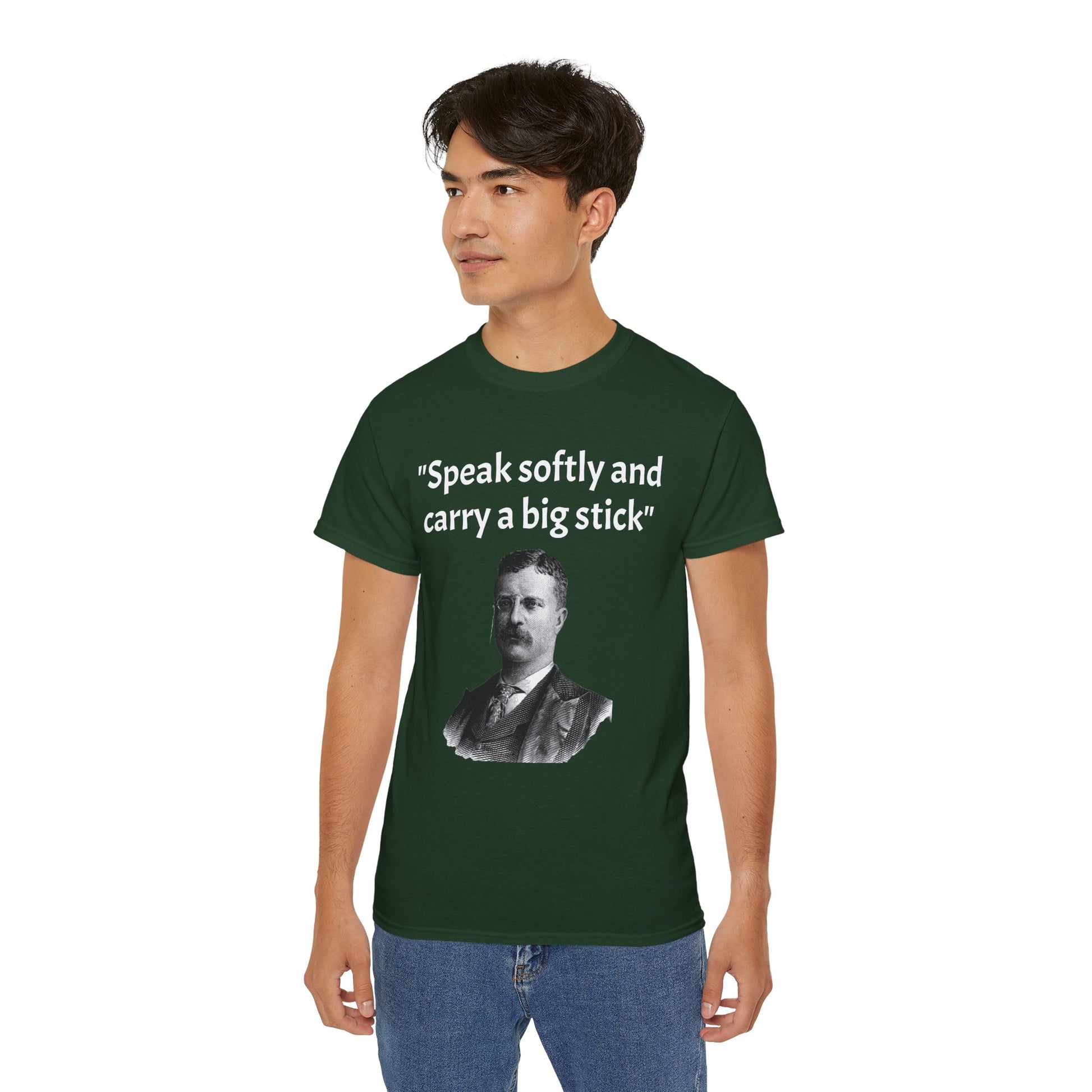 Show off your historical knowledge and enthusiasm with this Historic Theodore Roosevelt Quote "Speak Softly and Carry a Big Stick" Unisex Ultra Cotton T-Shirt. The perfect blend of comfort, durability, and sustainability.