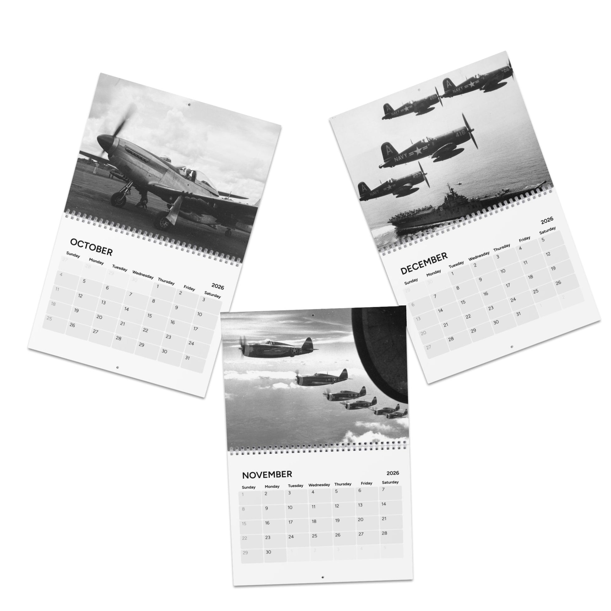 Add a little bit of Aviation History to your year with this 2026 historic World War 2 Aircraft Calendar. Each month showcases a historical photo of aircraft used in World War 2. More than just a date-keeping tool, this calendar teaches you aviation history.